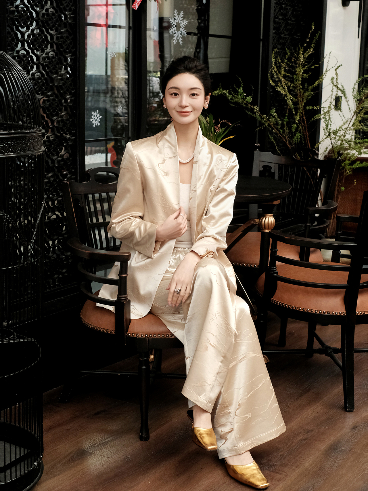 盛唐婧 |真丝宋锦钱币纹对襟马甲