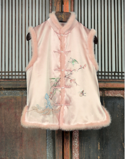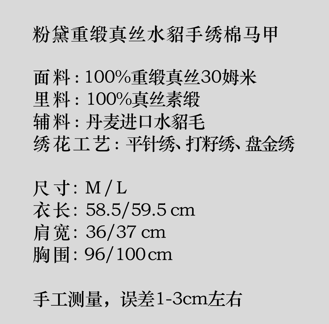 盛唐牡丹大师系列-卢梅红 | 粉黛重缎真丝水貂手绣棉马甲