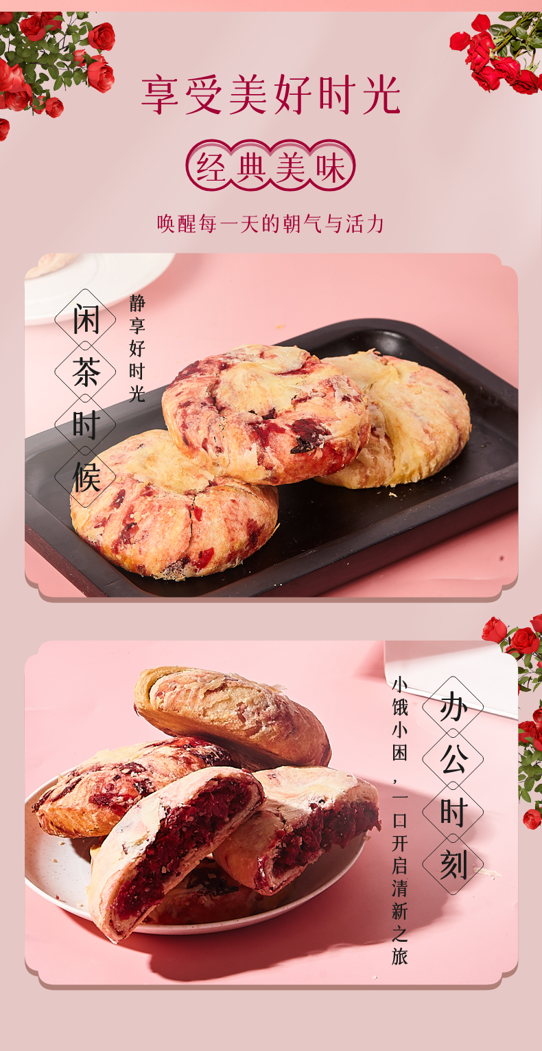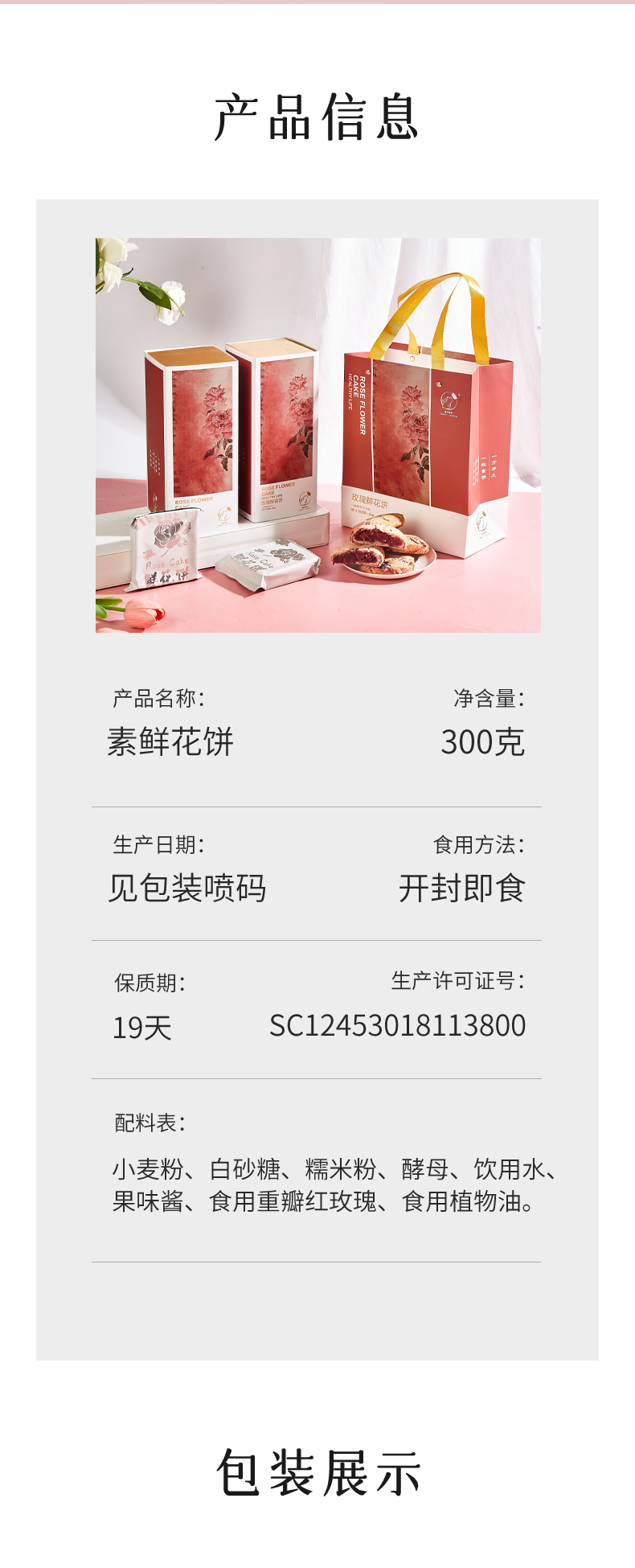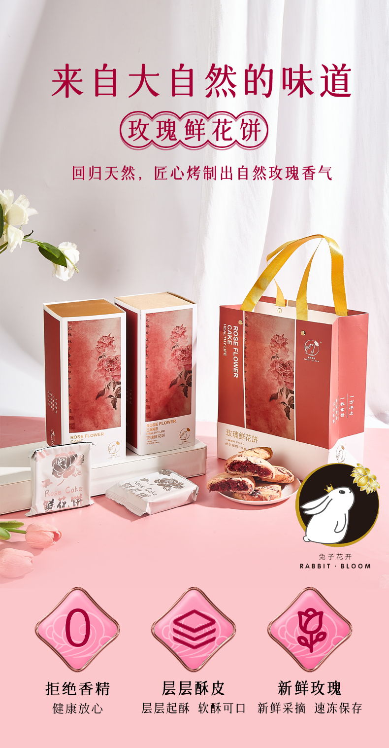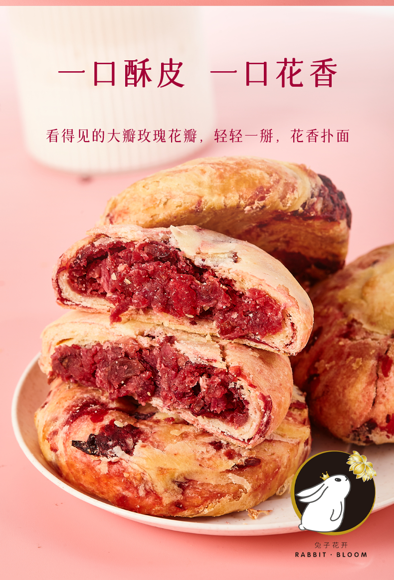 兔子花开 现烤重瓣红玫瑰素鲜花饼 手提礼袋装 300g*2盒(12块)