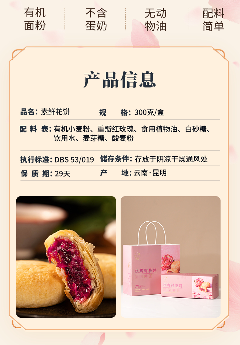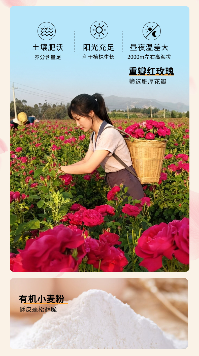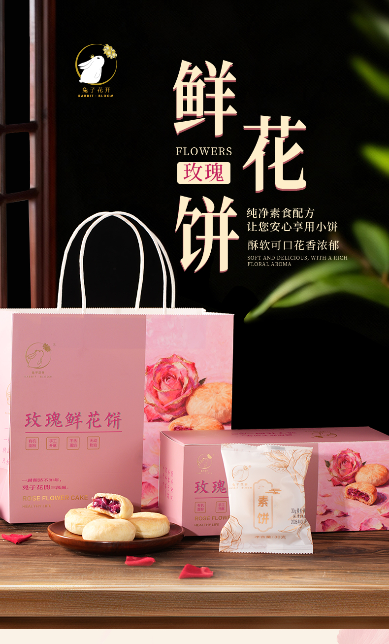 兔子花开 重瓣红玫瑰素鲜花饼 300g*2盒