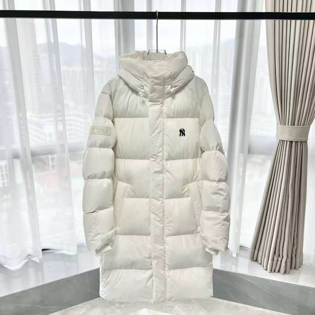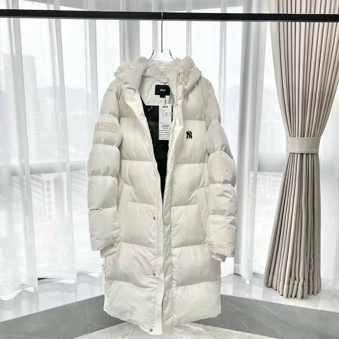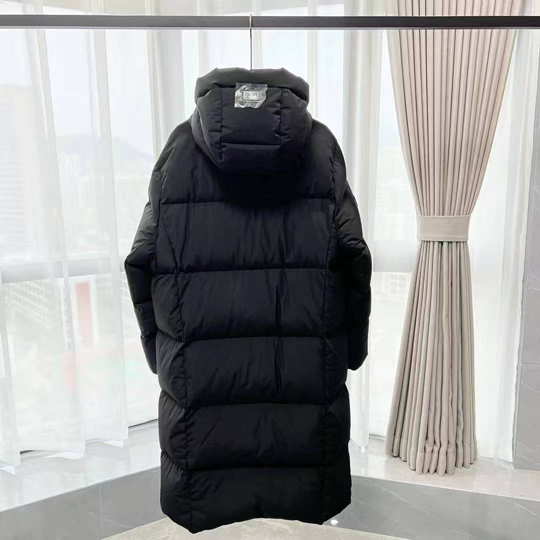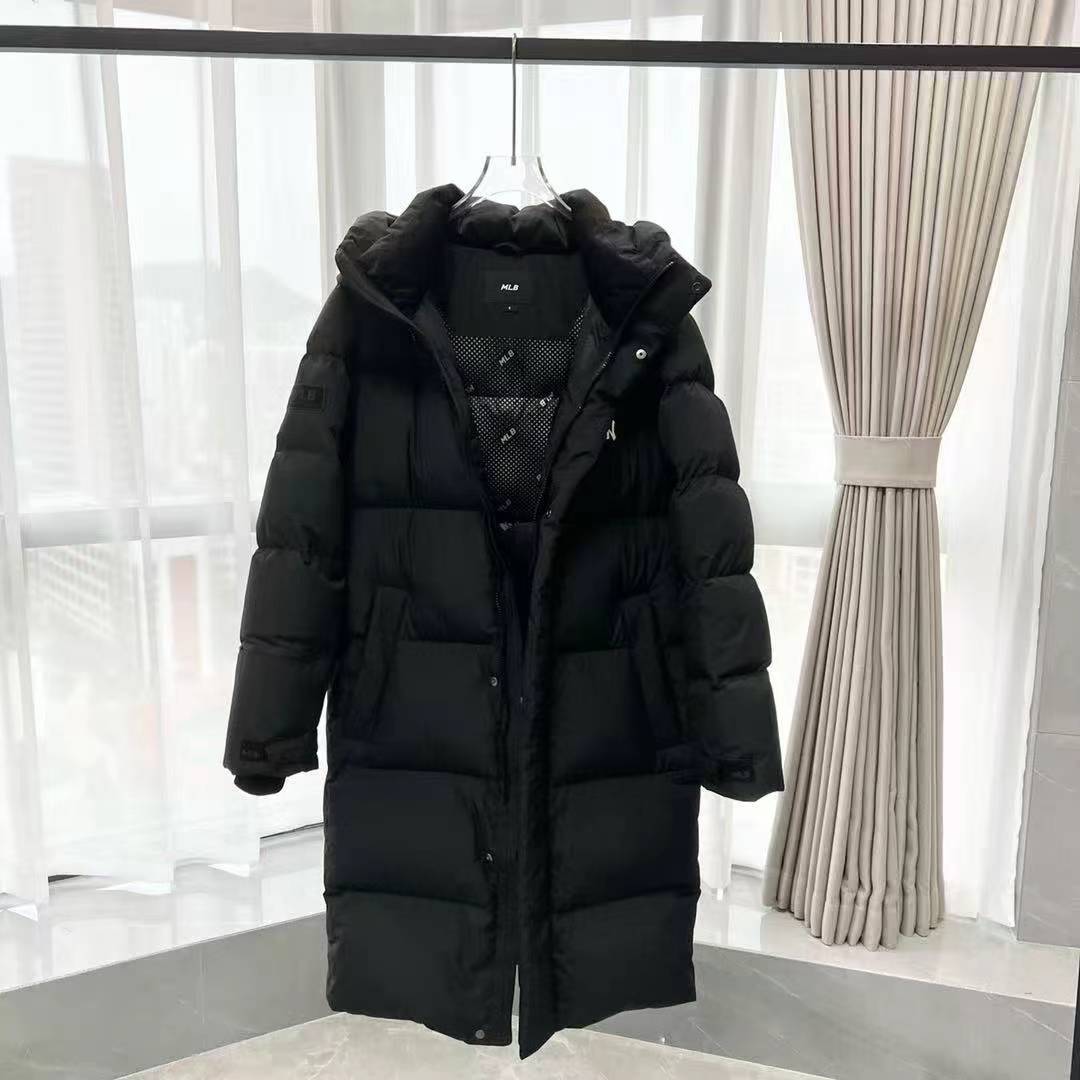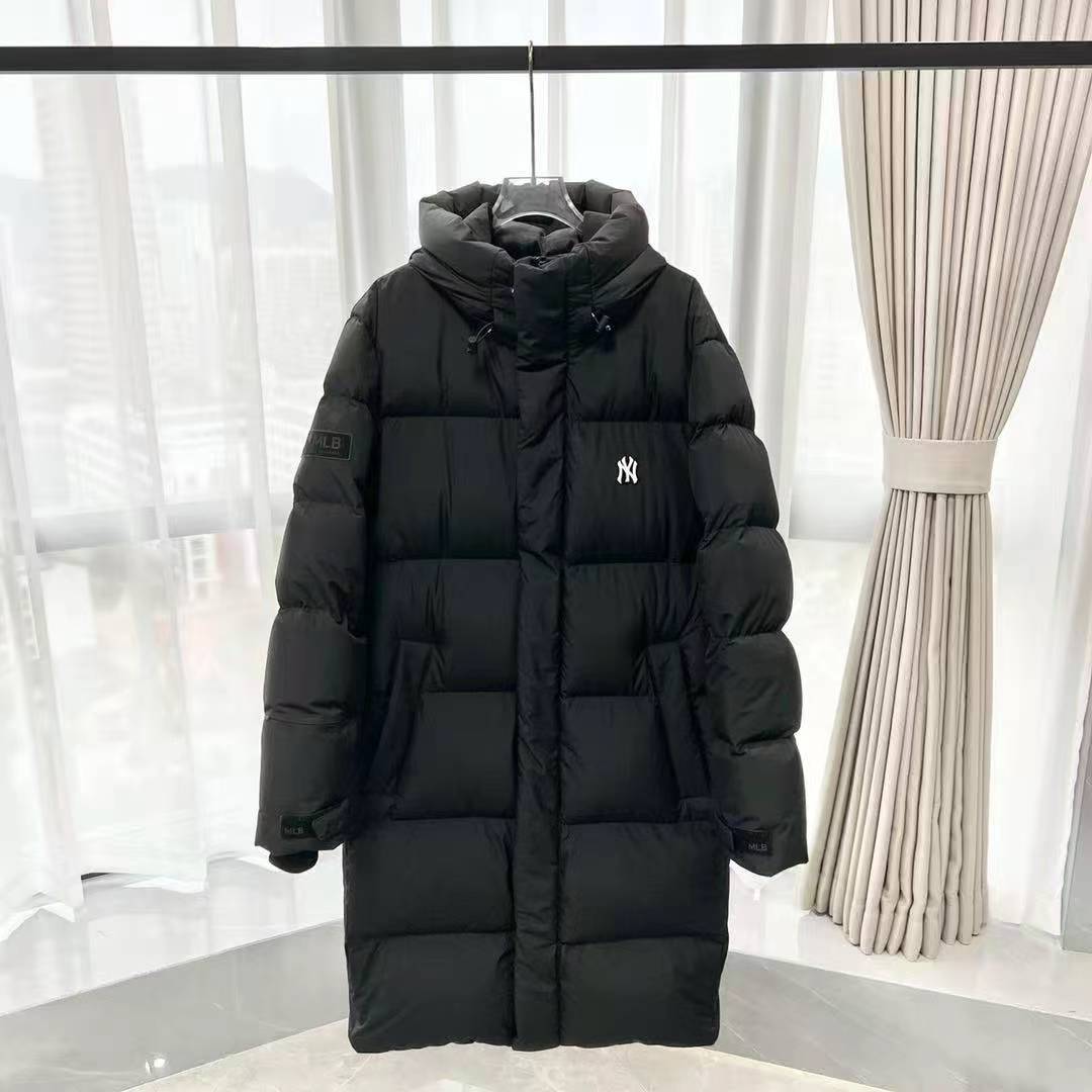 D110930纽扣小标刺绣LOGO/长款加厚羽绒服男女款