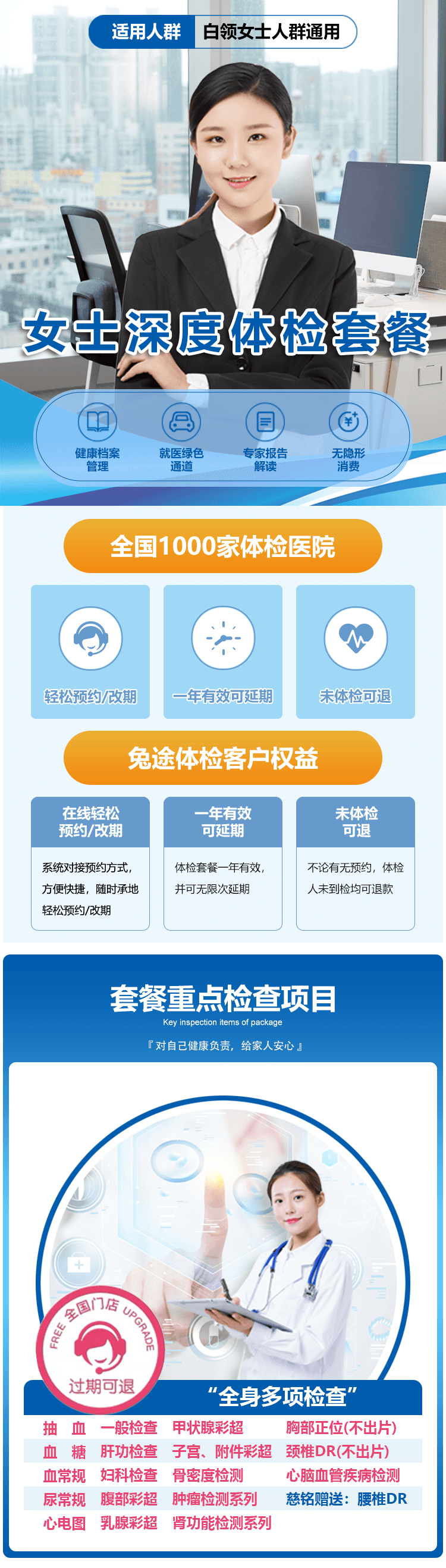 兔途 肩颈腰椎女性深度综合体检套餐-女深度