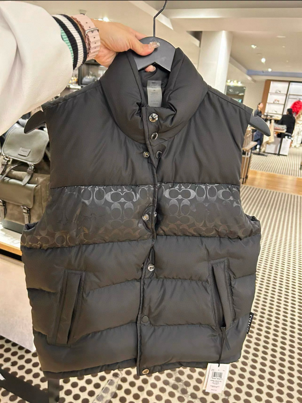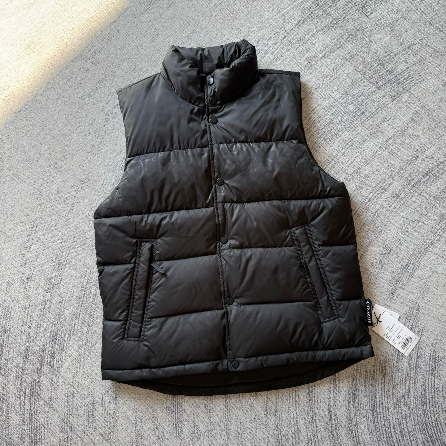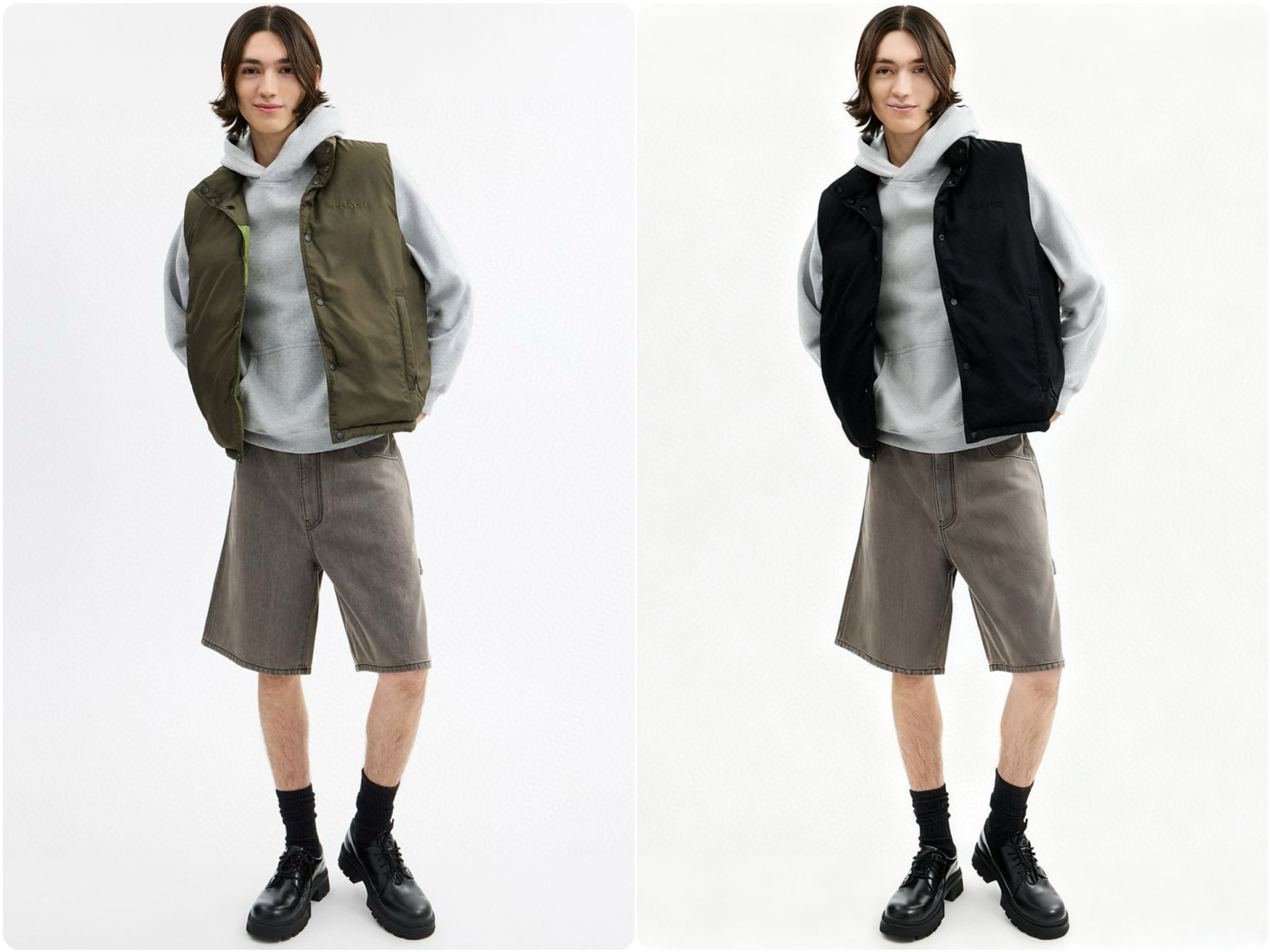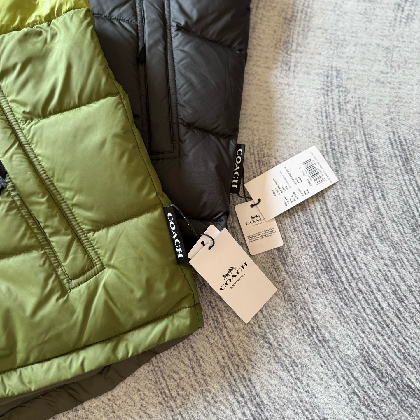 男士双面拼色立领羽绒背心休闲叠穿保暖!面料100 聚酯纤维 里料100 聚酯纤维 填充物 1:90%白鸭绒 10% 白鸭毛 填充物 2:100 聚酯纤维 不包括装饰部分 纽扣开合 拉链袋,立领设计,填充高品质羽绒,保暖力满分!外层防撕裂尼龙,耐用又抗风,秋冬穿超合适器。军绿色+芥末绿撞色,简约又有层次感休闲通勤都能轻松驾驭。正面拉链口袋,收纳方便实用又时髦!高领的版型,不用围围巾也能很好的为脖子保暖。胆布升级,高标准的400弹力胆布,8号金针绗绒,针眼扎下去能快速回弹,牢牢的锁住羽绒,不会出现钻绒跑绒的问题。内里填充90白鸭绒,240克高克重的充绒量。大朵鸭绒蓬松保暖。化身小暖炉守护兄弟们的温暖。进口滴油四合扣,一扣一拉之间清脆好扣,内里纯色面的一面有独特的字母绣花,穿起来更实穿。