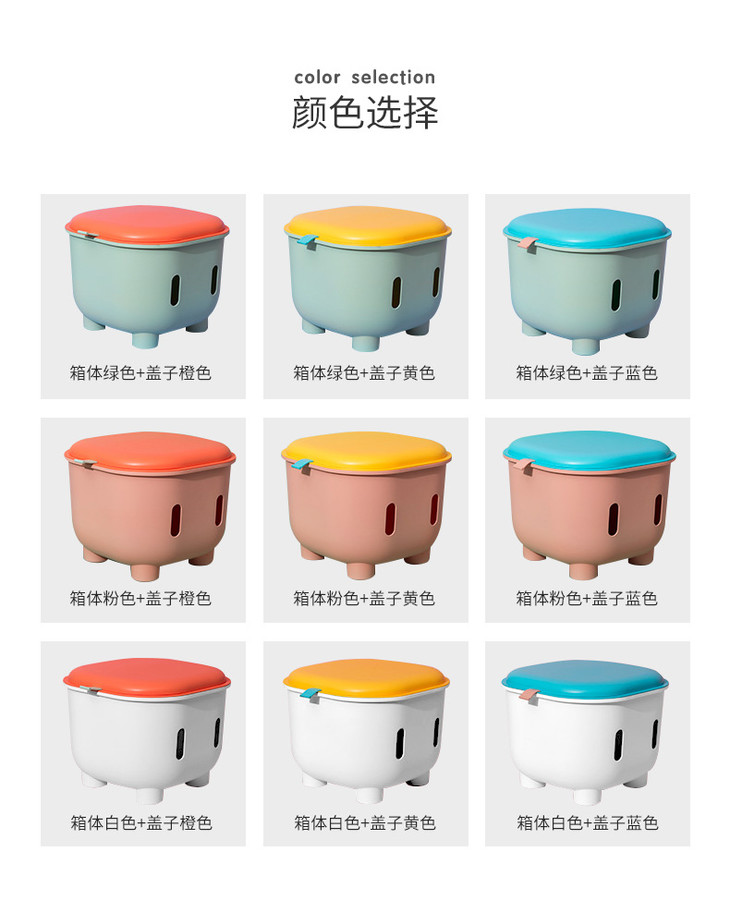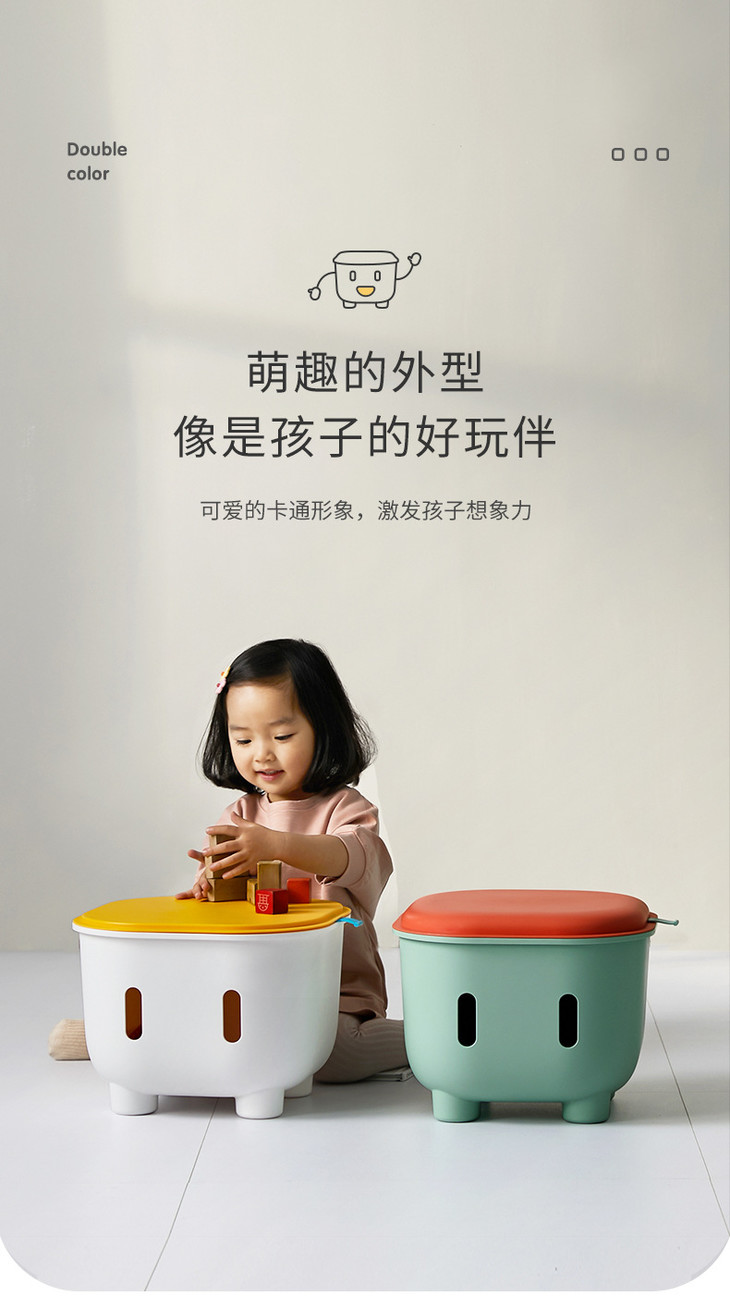 【家居百货】儿童储物凳收纳凳可坐 双拼色多功能宝宝玩具收纳凳