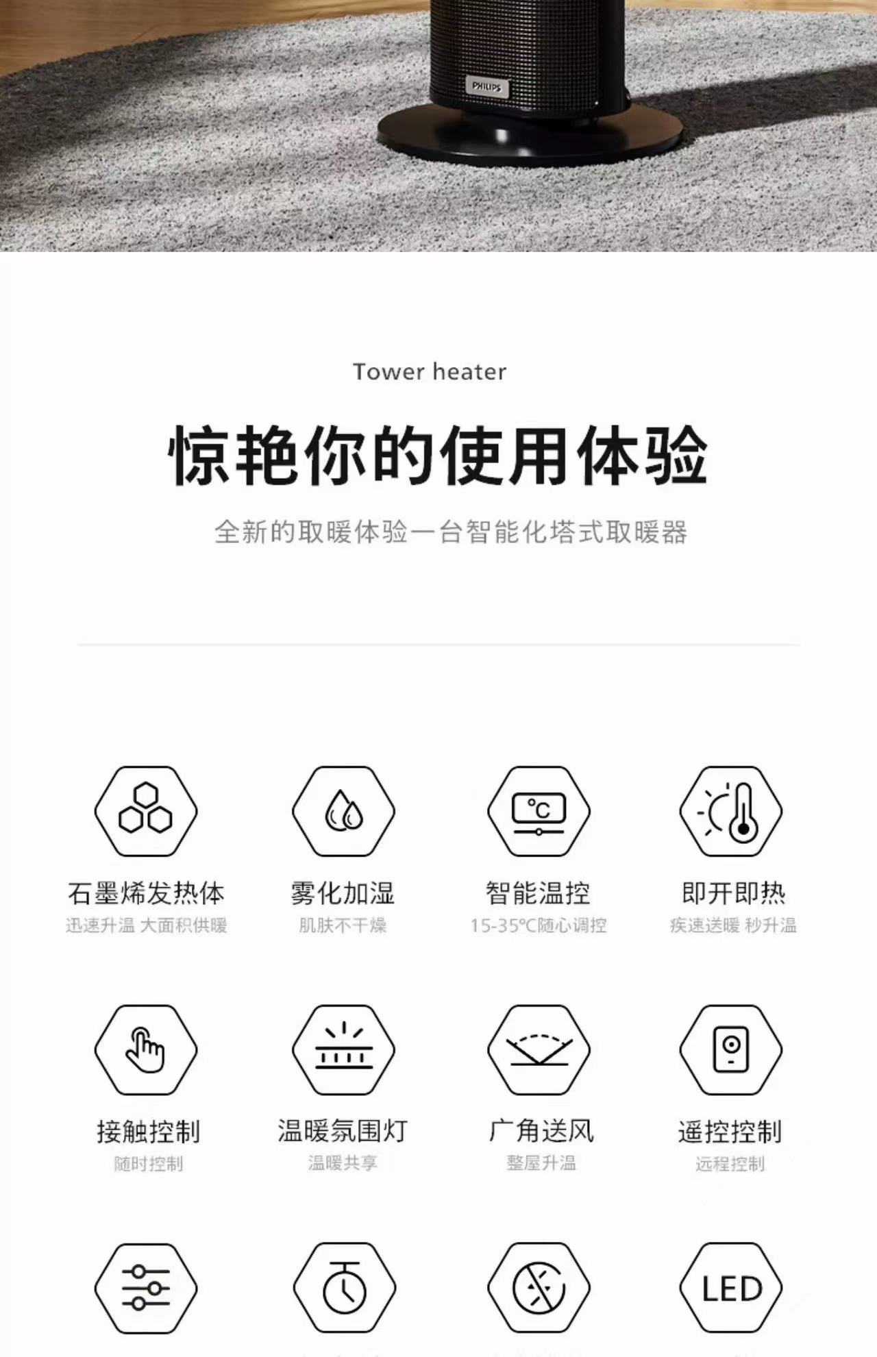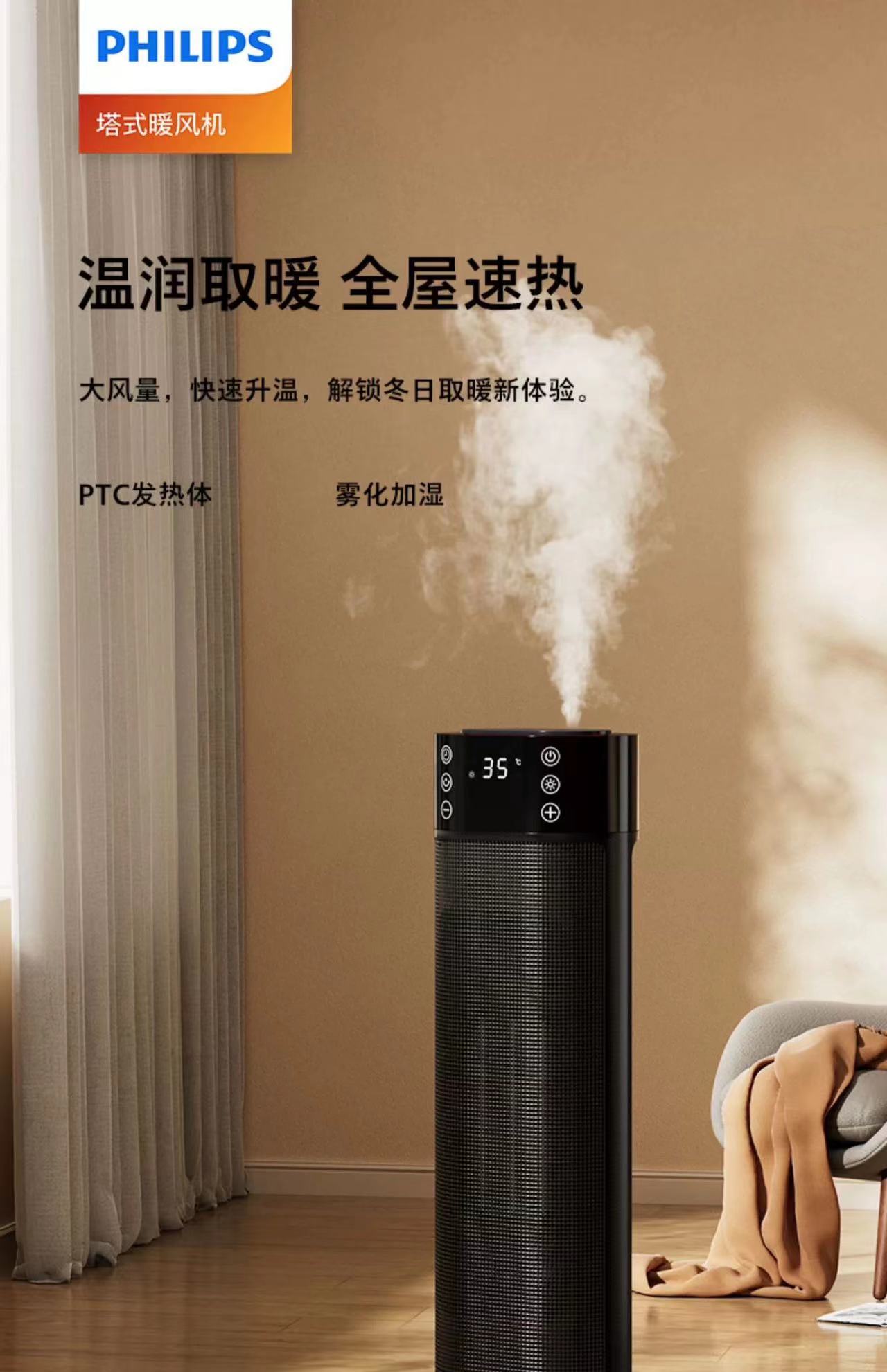 【春上新】10楼飞利浦石墨烯家用智能速热电暖器AHR3144FD 零售价799元活动价699元