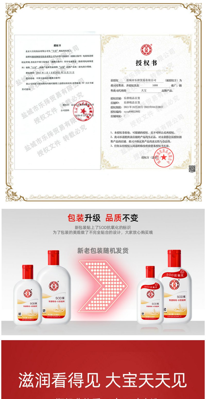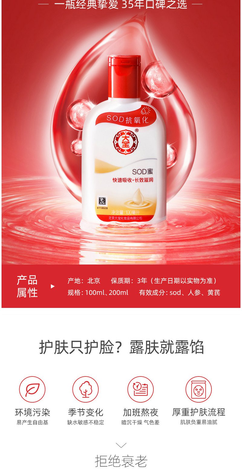 大宝SOD蜜100ml补水保湿露面霜滋润补水保湿润肤身体乳亮白润肤乳保湿