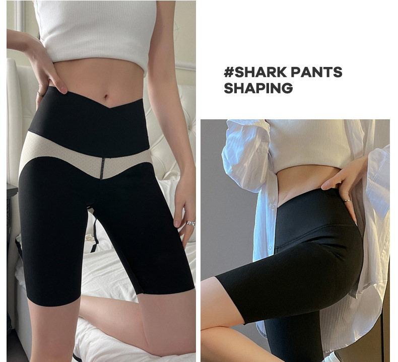 鲨鱼裤女外穿五分交叉打底骑行裤收腹提臀夏季薄款芭比瑜伽短裤