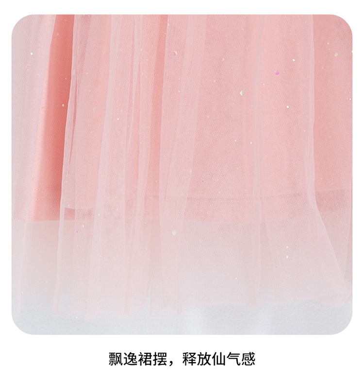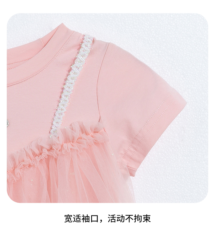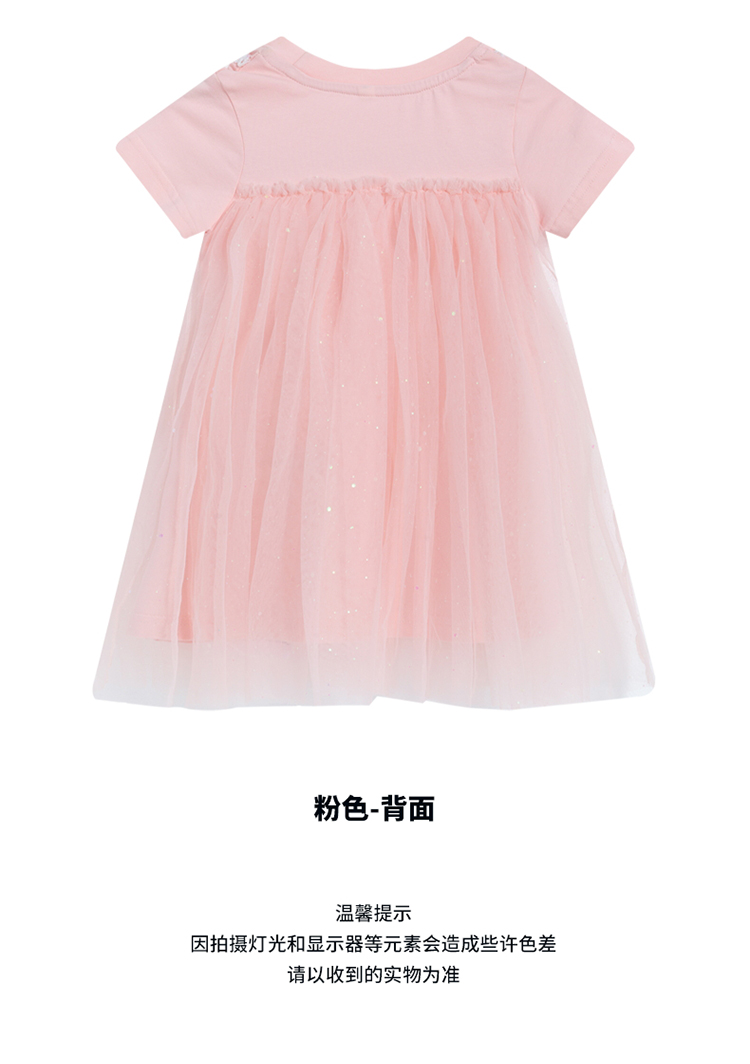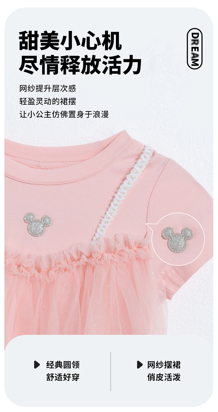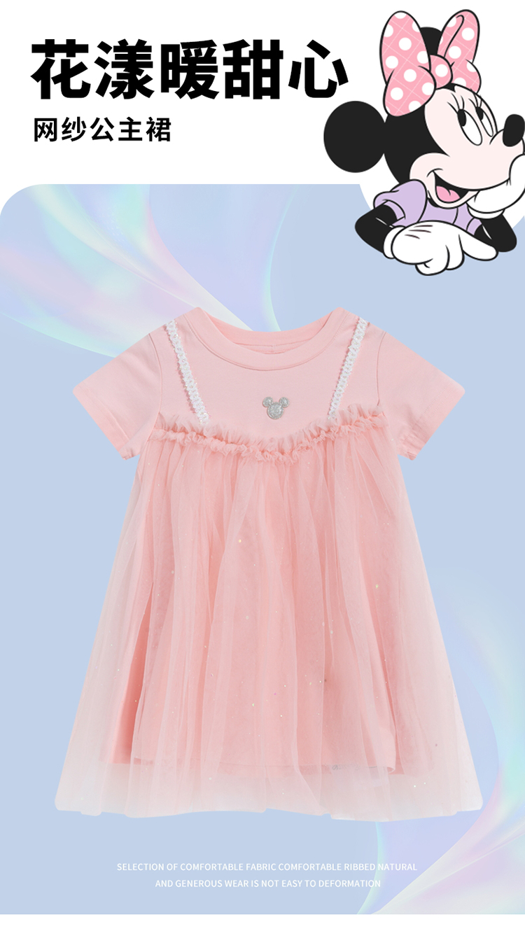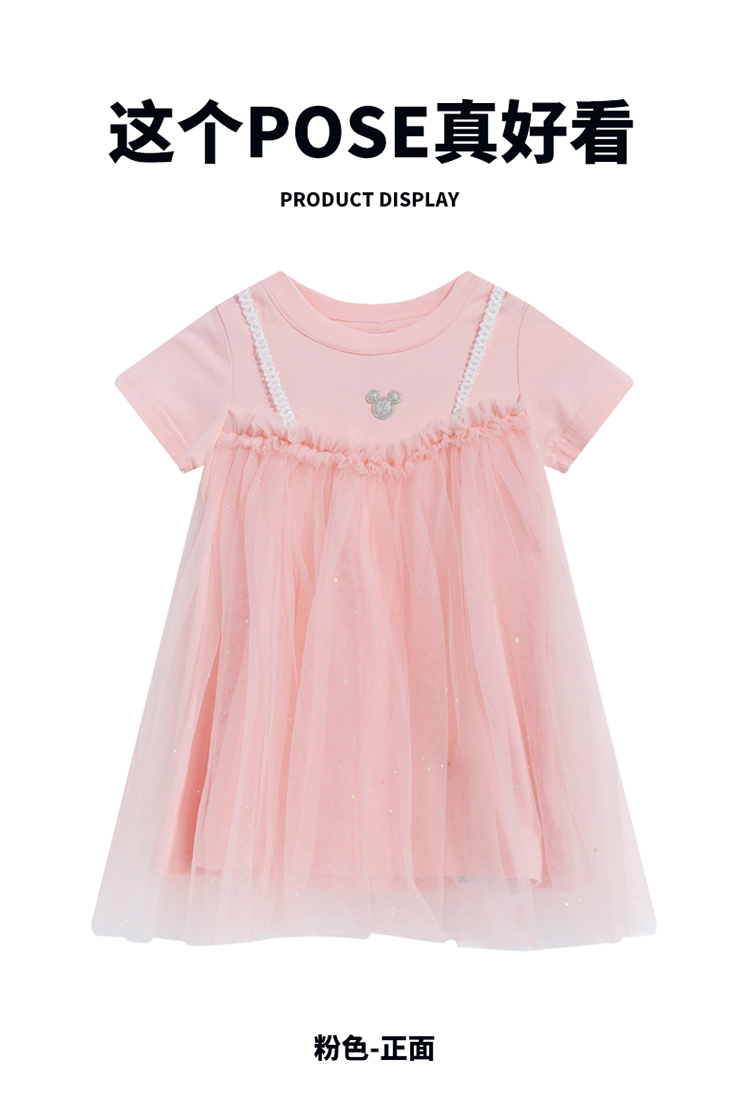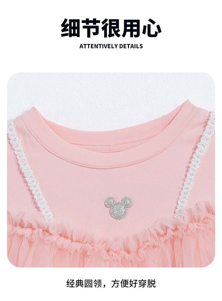 迪士尼【圆领网纱公主裙】夏季儿童裙子女童短袖连衣裙粉色米妮裙礼服裙232DQ0270