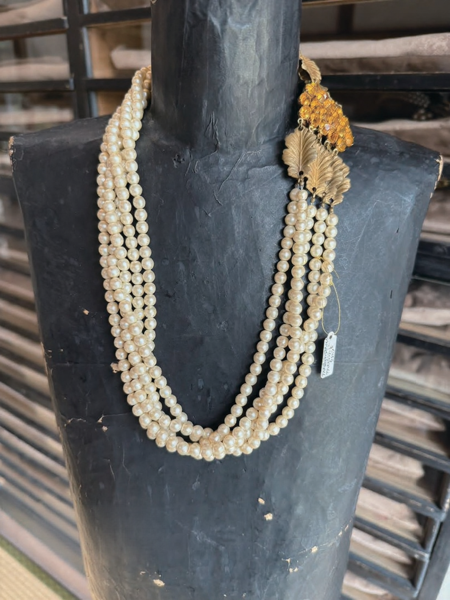 在途4周到|Monshiro-vintage系列-珍珠 树叶 复古 项链[日本设计师]