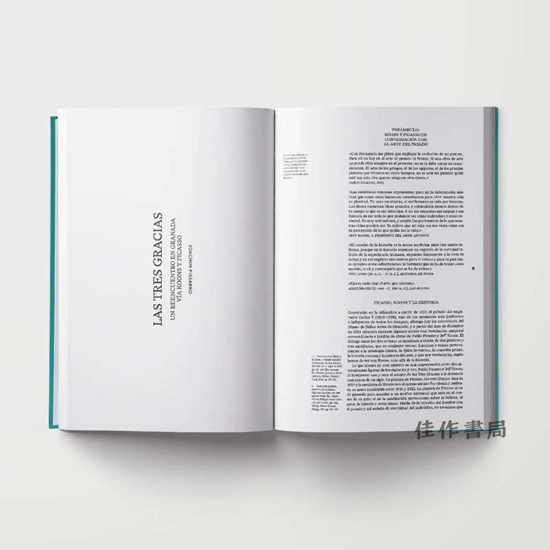 This book accompanies a painstaking and thought-provoking exhibition at Granada's Museo de Bellas Artes, Spain's oldest provincial art museum, bringing together carefully selected works by Pablo Picasso and Jeff Koons. The museum's historic Circular Court and Room I within the Alhambra complex shows the artists’ distinct approaches to classical motifs – Picasso's paintings rooted in Spanish tradition and Koons' polished steel or glass interpretations. The selected works create a dynamic dialogue between past and present artistic practices. The well-researched texts of detailed explanations for both artists and their selected works is a perfect companion to the curation.