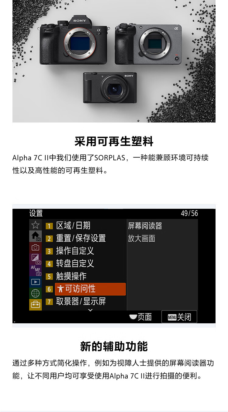 索尼(SONY)Alpha 7C II 新一代全画幅双影像小“7”银色 单机身 全画幅微单相机 创意滤镜 AI智能芯片