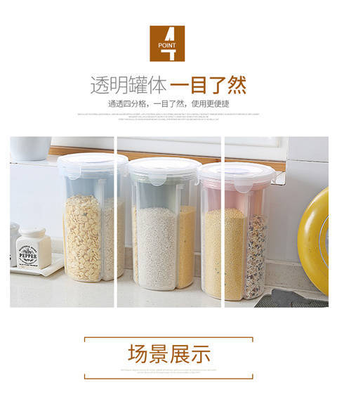【节省空间 大号储物罐】1个顶4个 厨房分格五谷杂粮储物罐 收纳罐