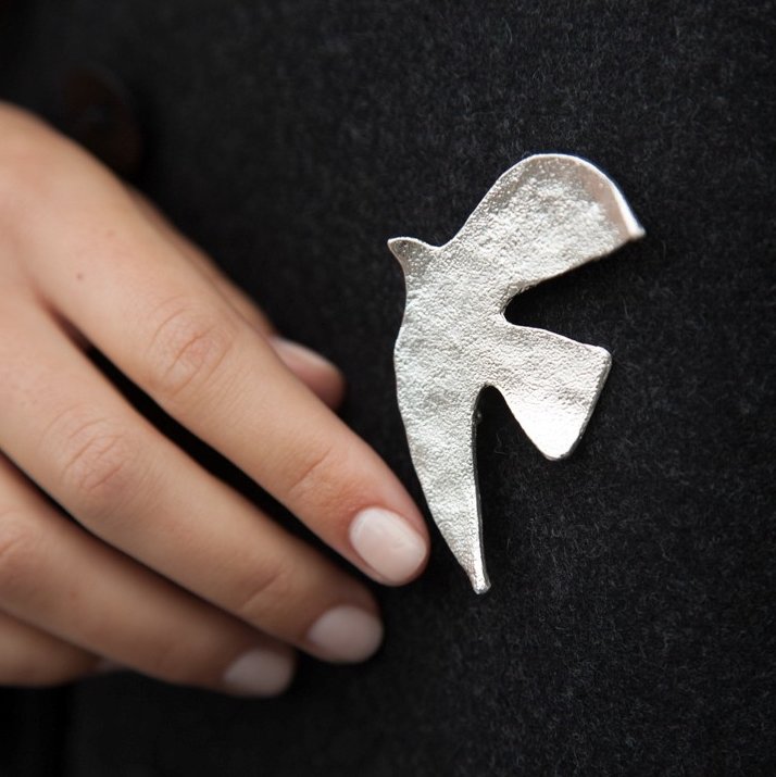 北京仓|Cécile Jeanne-Voyage-经典和平鸽 胸针(银色 中号)[法国设计师 ]