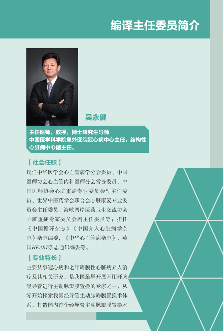 阜外医院冠心病中心主任,结构性心脏病中心副主任;主要从事冠心病和瓣膜性心脏病介入治疗及相关研究。心脏瓣膜病:擅长复杂心脏瓣膜病的微创介入治疗,是我国早期开展经导管主动脉瓣介入治疗(TAVR)的专家之一。冠心病:擅长处理各种疑难和复杂冠心病(左主干病变,CTO病变,分叉病变,急性心肌梗塞等),在冠心病合并糖尿病、慢性肾功能不全做了大量探索工作。