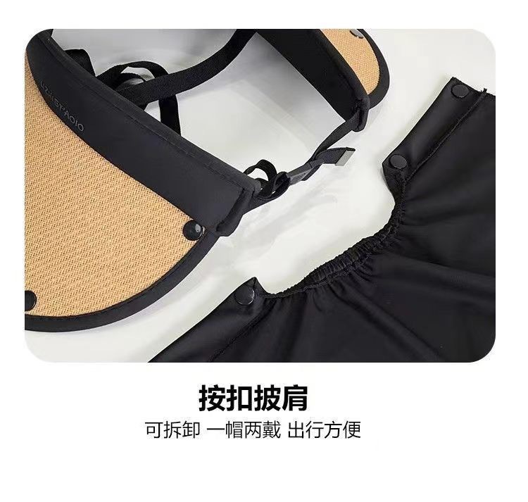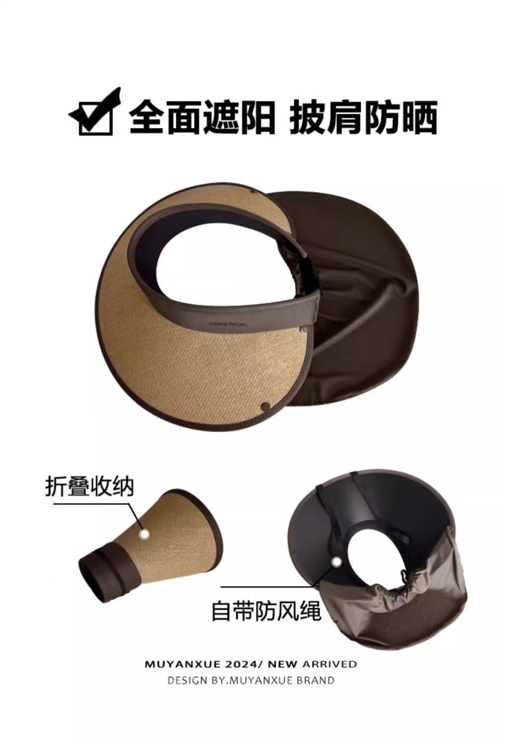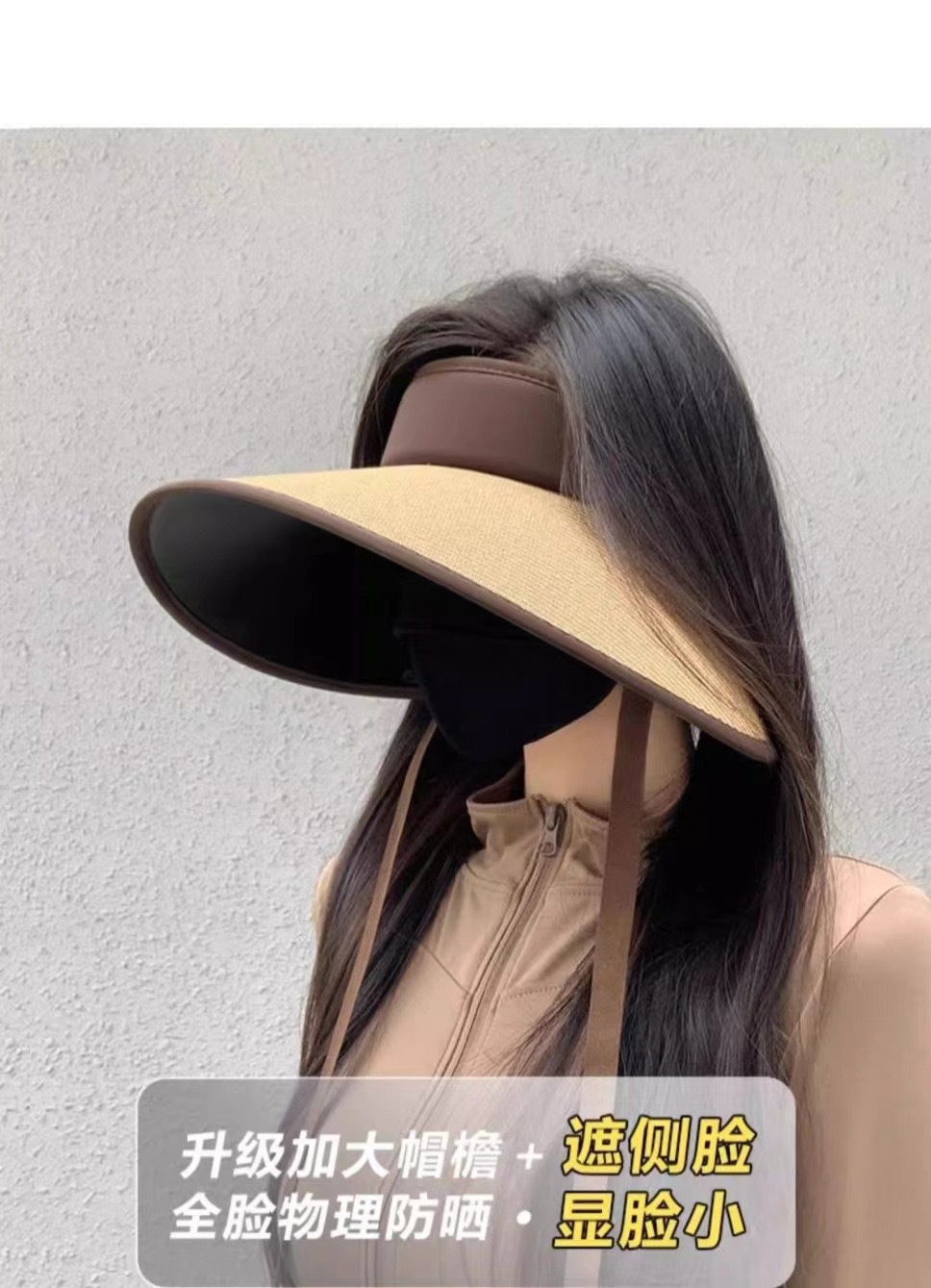 【堪比防晒伞❗️全脸防晒空顶帽】全脸遮光大面积防护,不遮视线视野更开阔❗️遮侧脸护后颈,物理防晒更安心,护披肩防紫外线骑车草编空顶太阳帽可折叠L