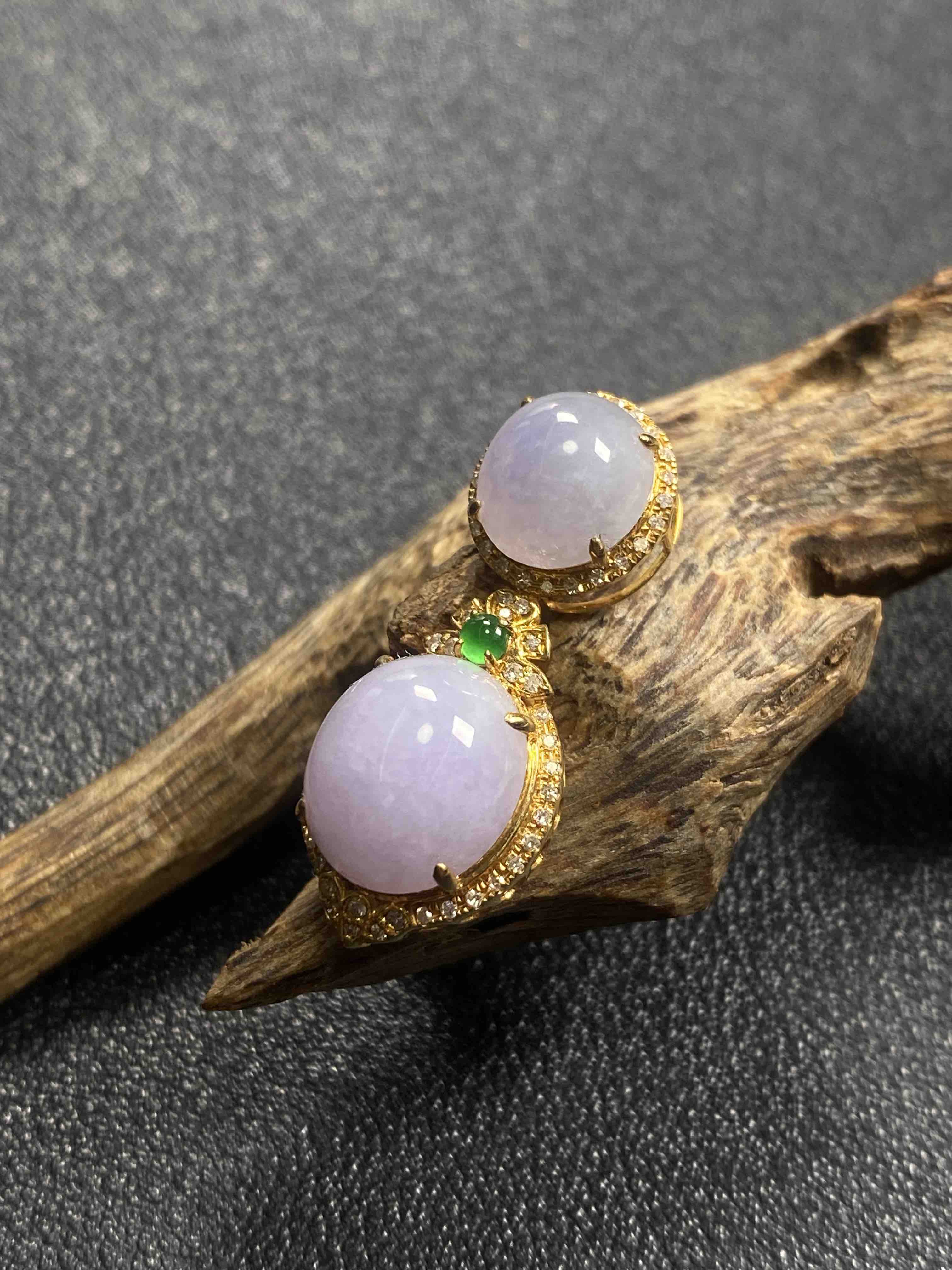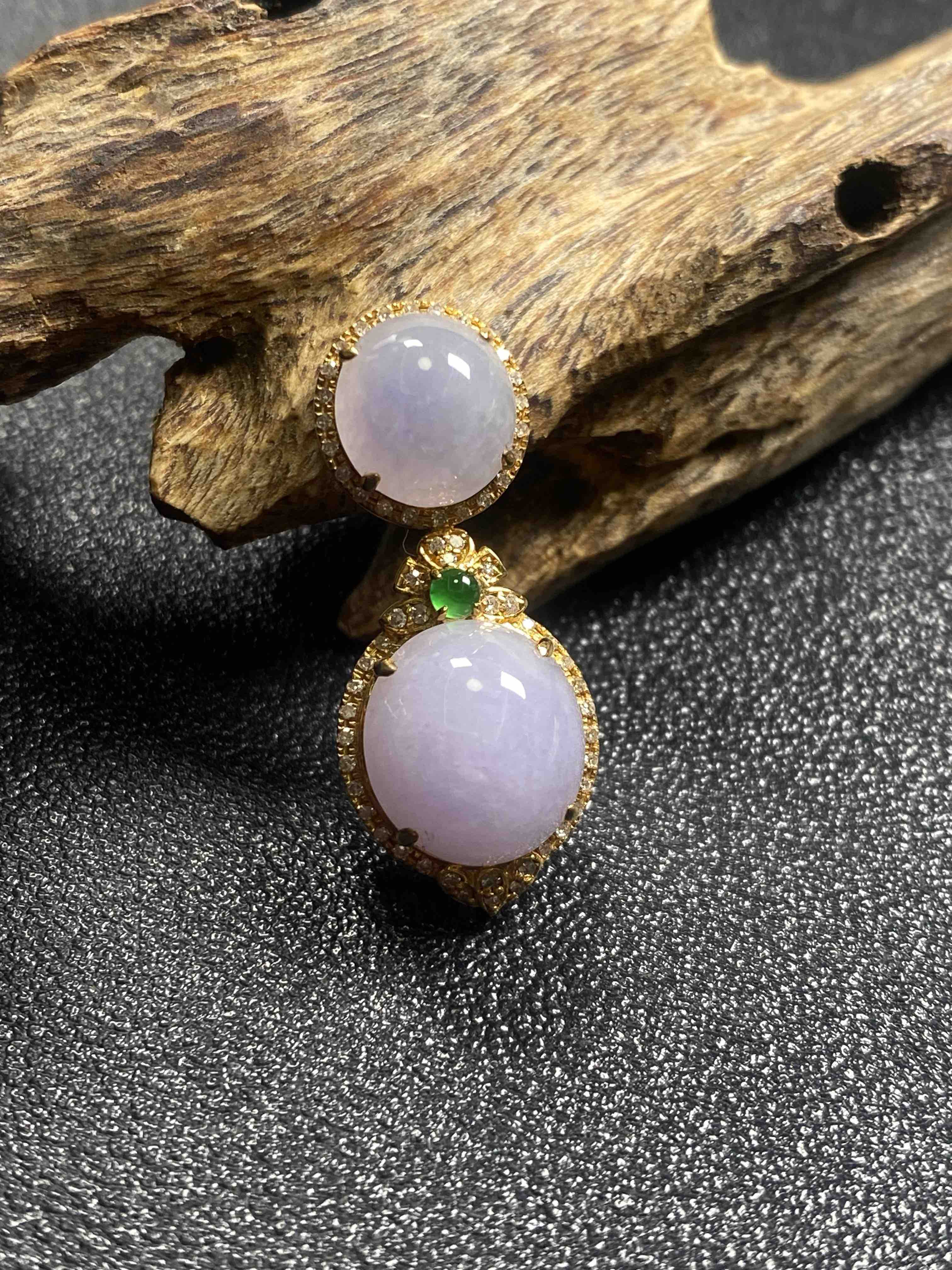 【FC0113】18K镶嵌翡翠紫罗兰蛋面二合一吊坠 色泽浓郁 颗颗完美 优雅内敛