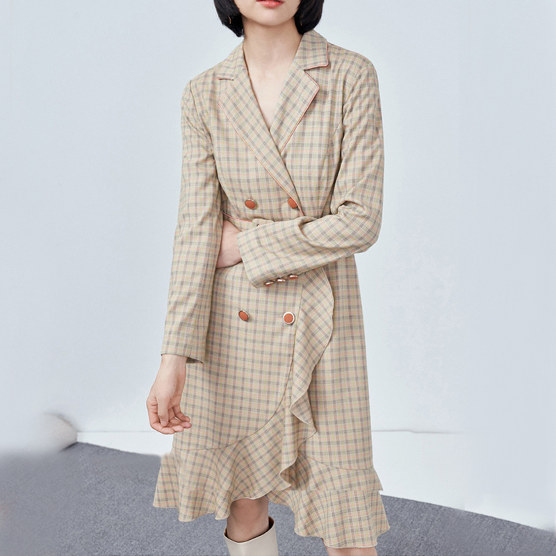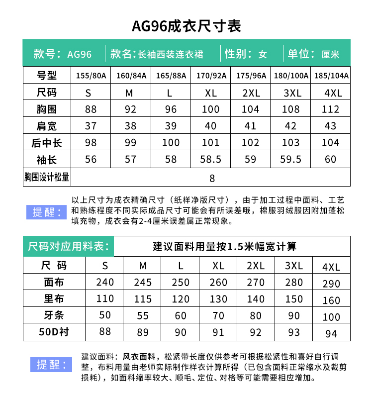 裁缝学苑AG96长袖荷叶边西装秋款连衣裙纸样 女装长裙服装裁剪图