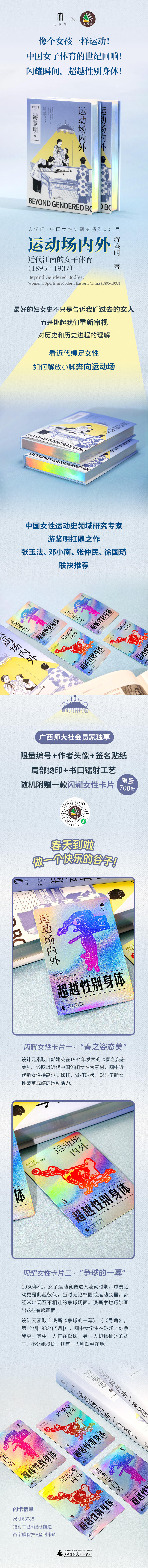 限量版《运动场内外:近代江南的女子体育(1895一1937)》书口镭射工艺+局部烫印+限量编号(1-1000)+作者头像、签名贴纸随机附赠一款闪耀女性卡片(限量700份,镭射工艺+银线描边)