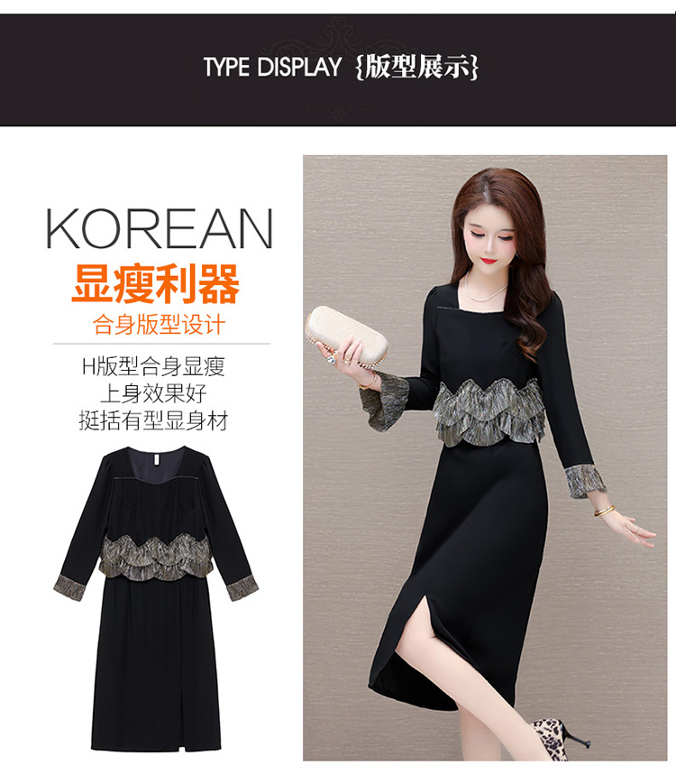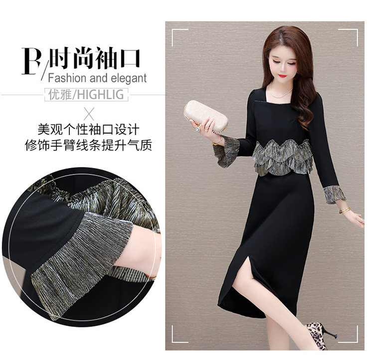 QYM F188-Y时髦连衣裙荷叶边拼结假两件包臀裙开衩裙 商品图4