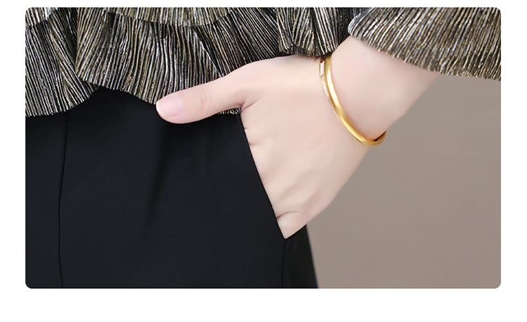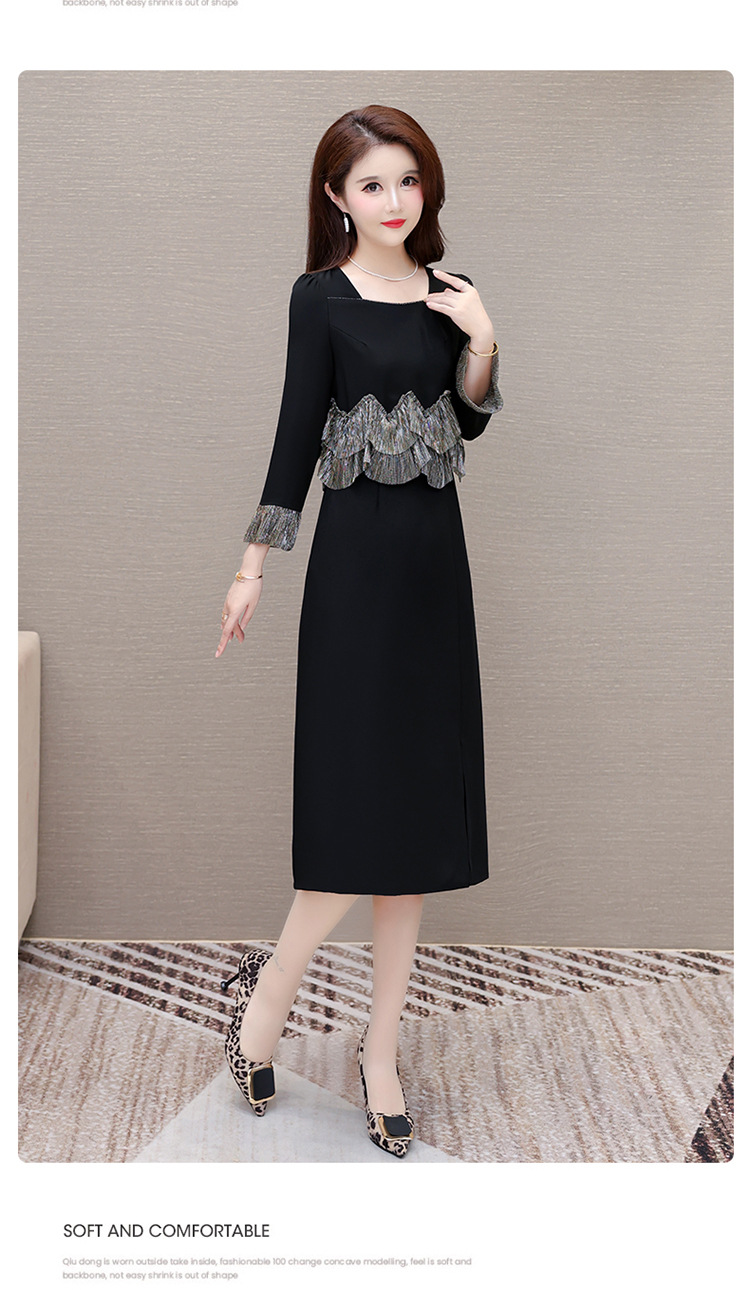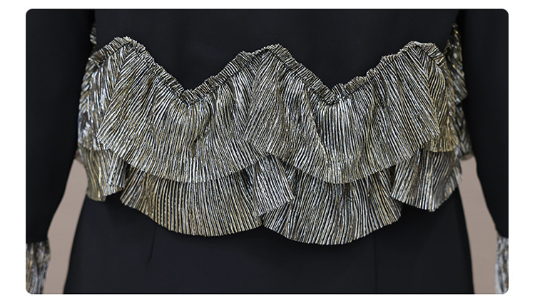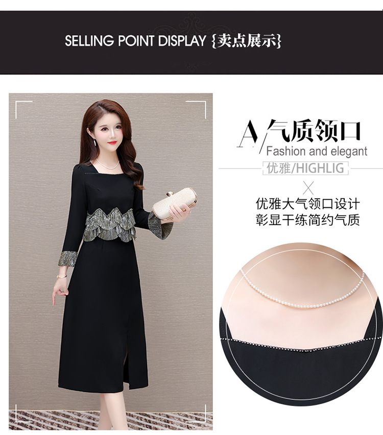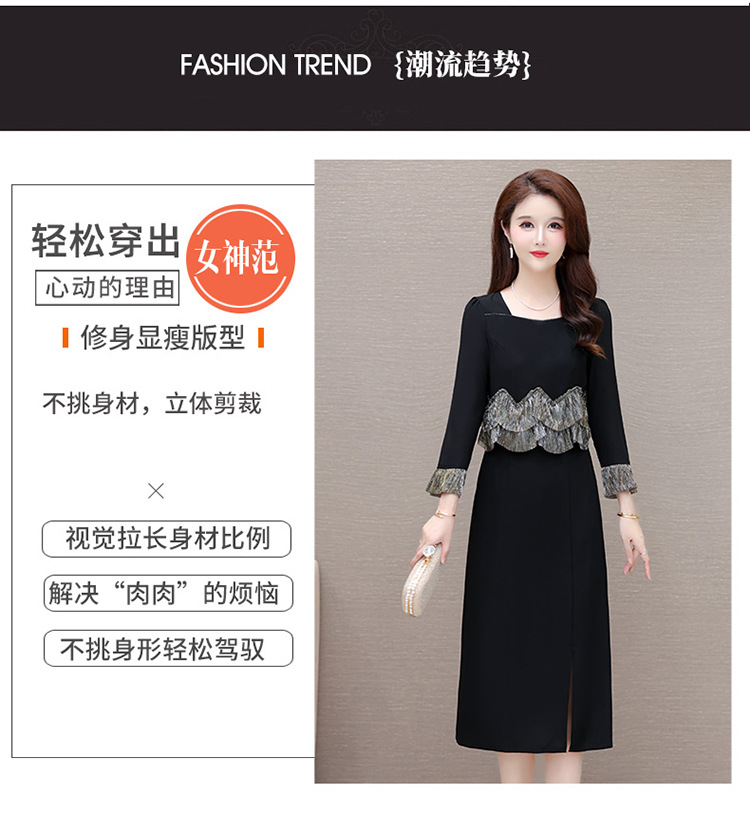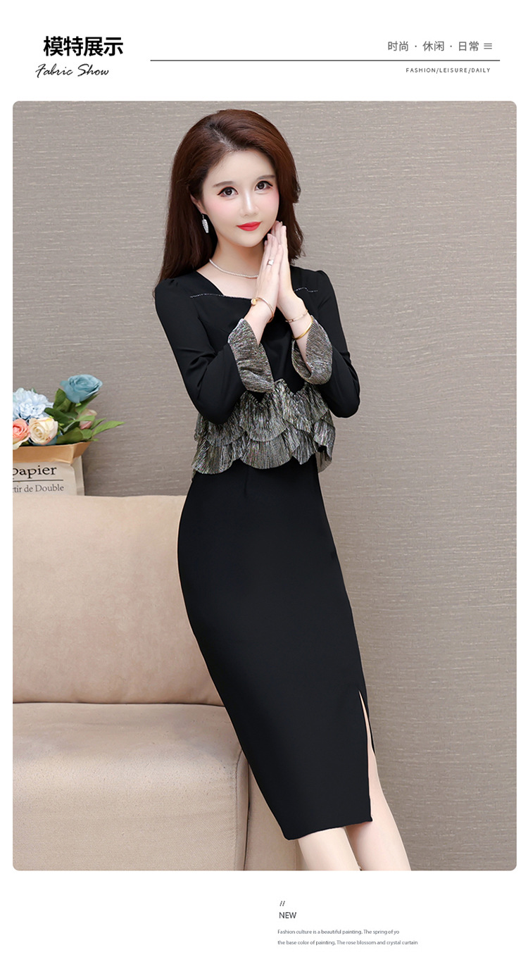 QYM F188-Y时髦连衣裙荷叶边拼结假两件包臀裙开衩裙 商品图3