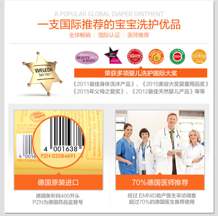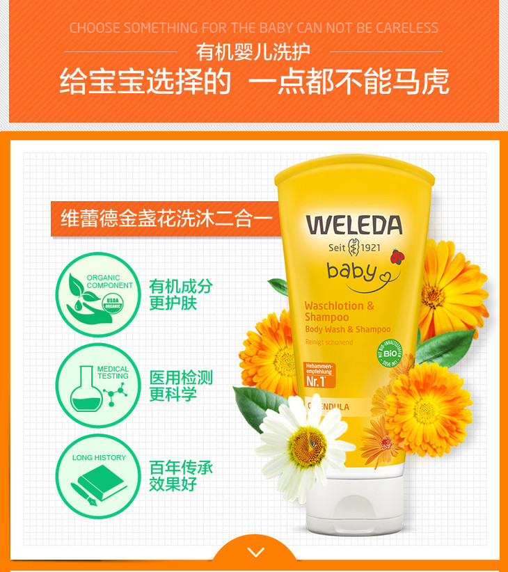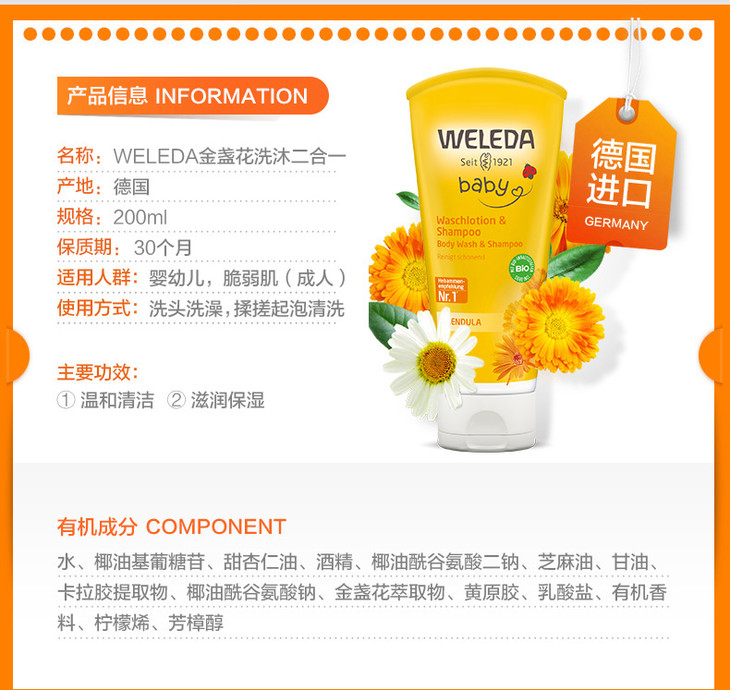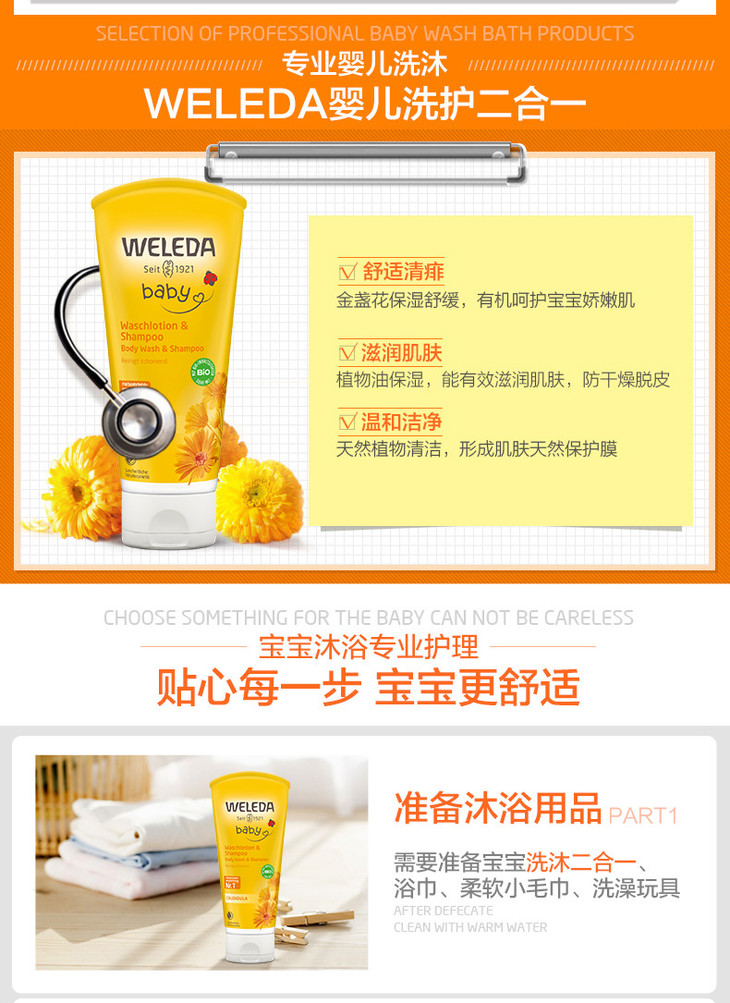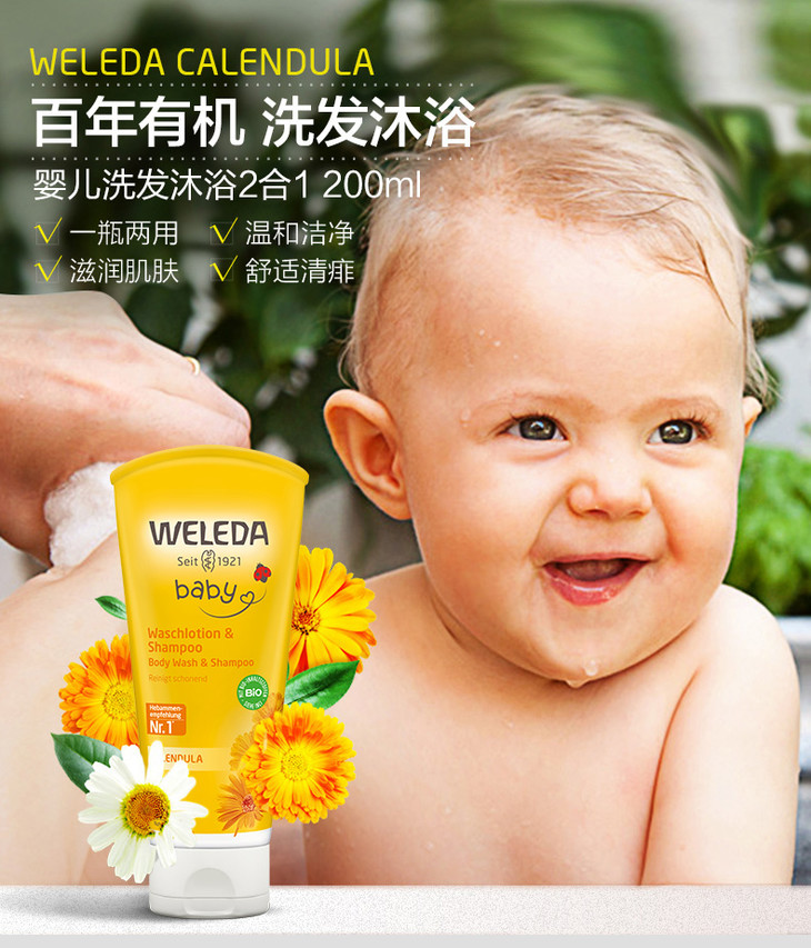 【菜鸟】Weleda维蕾德 金盏花婴儿洗发沐浴二合一乳液 无泪配方 200ml