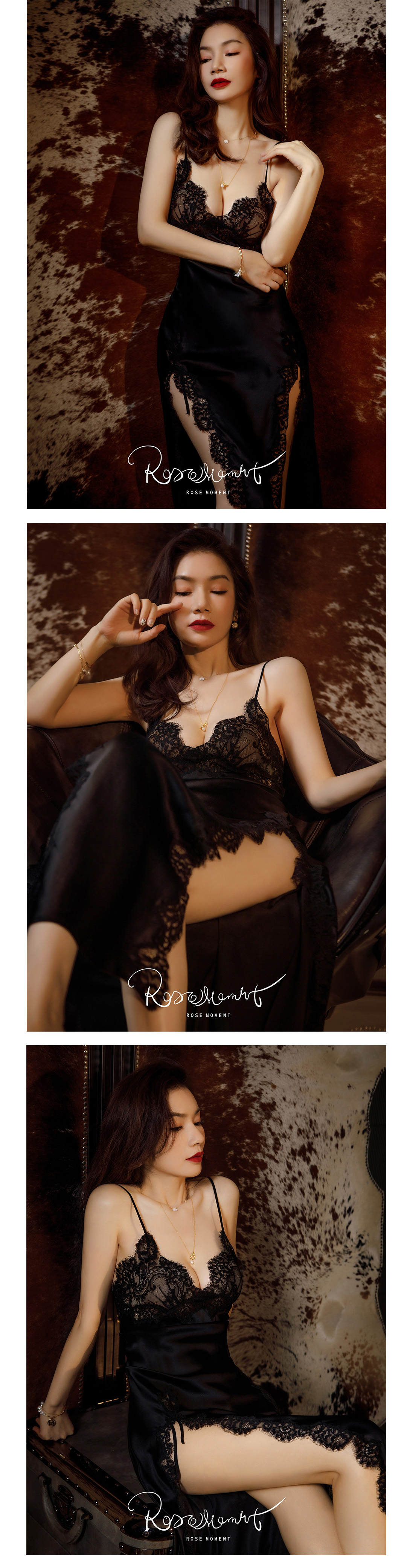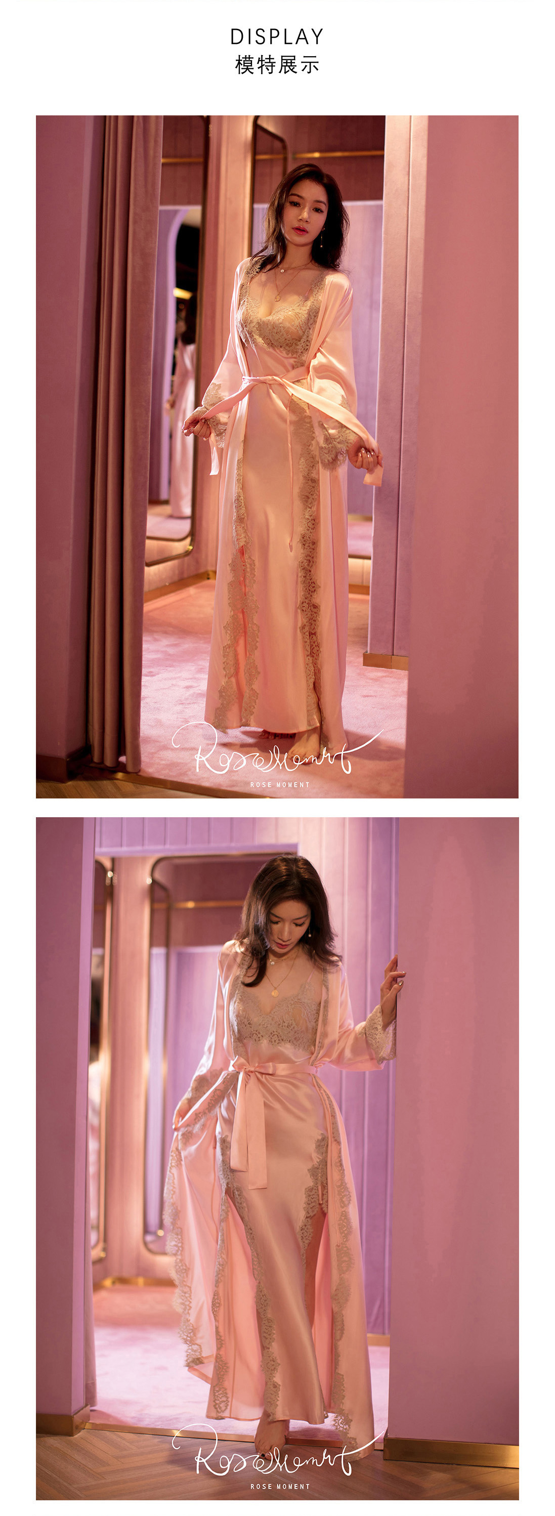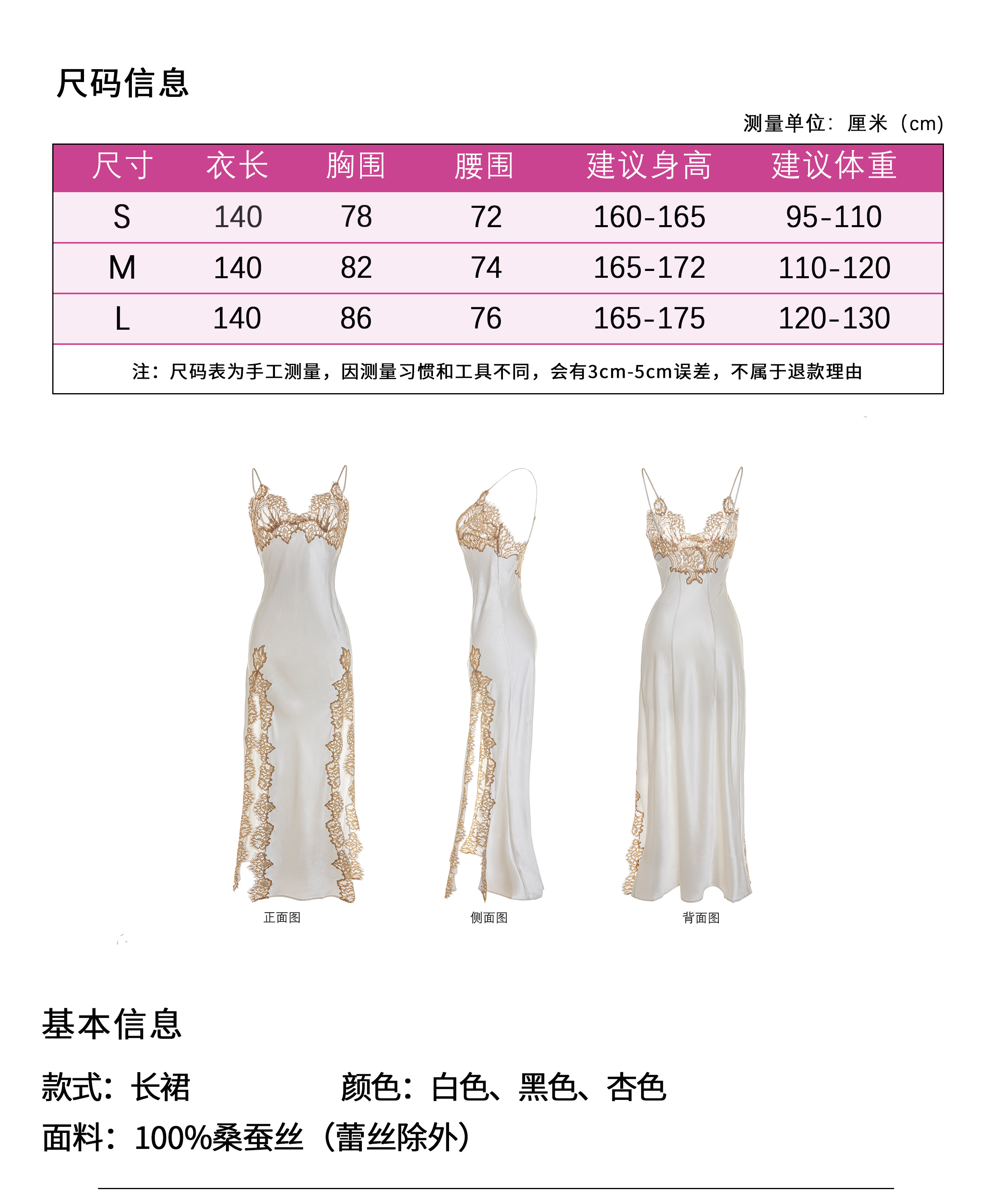 烂花绡露背真丝长裙睡袍轻盈微透 DD242