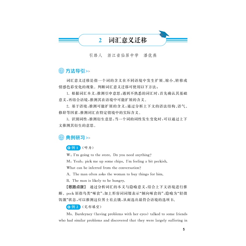 本书内容包括高中英语学习的各个方面,有分类有综合,逐渐滚动深化,重点在于对中学英语知识体系的再构造,从中提炼出英语语言的思想与学习的方法,使英语教师和学生都能体悟出英语的精髓,真正掌握英语语言学习的方法,提高语言能力。每讲内容从实例出发,印证相关的思想,并给出详细的剖析,力求体现抽象的思想与具体的应用的结合,这样的编写方法对于学生提升英语语言能力具有较强的实效性。后面的“小试身手”是学生的自我实践,检验自己对相关思想方法的掌握程度。