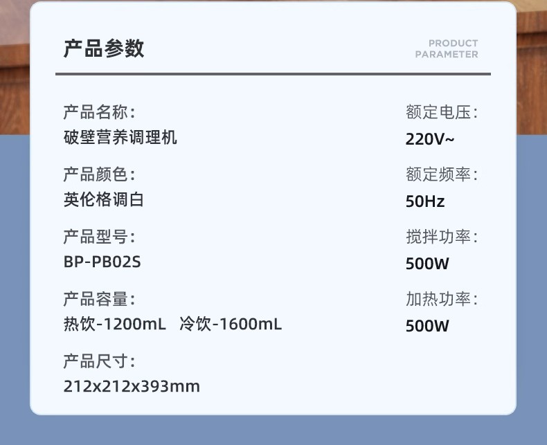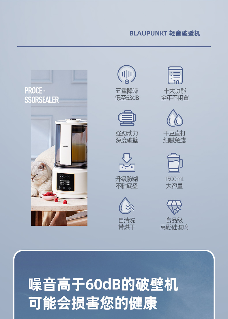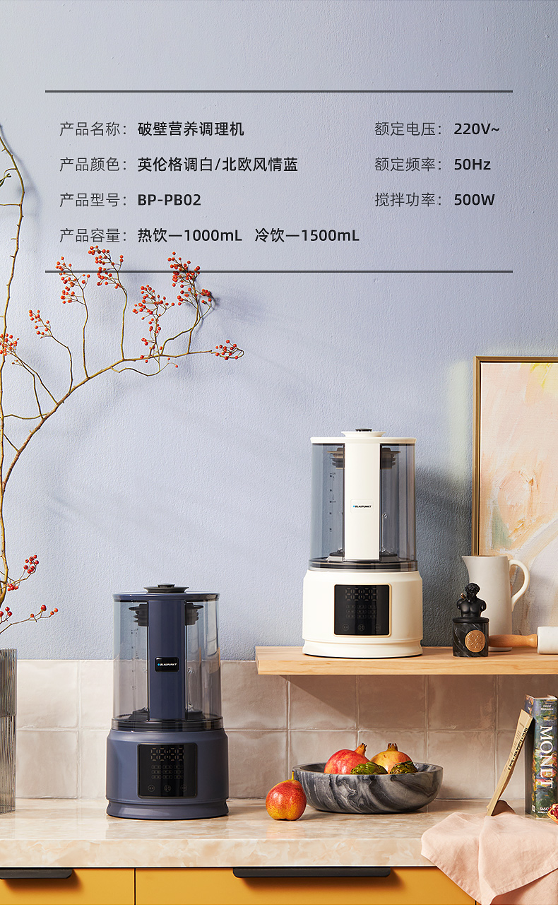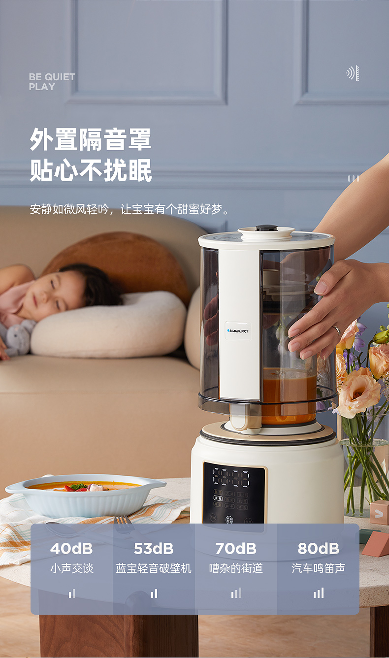 德国蓝宝轻音破壁机家用加热全自动小型豆浆机非静音多功能料理机BP-PB02/B02S