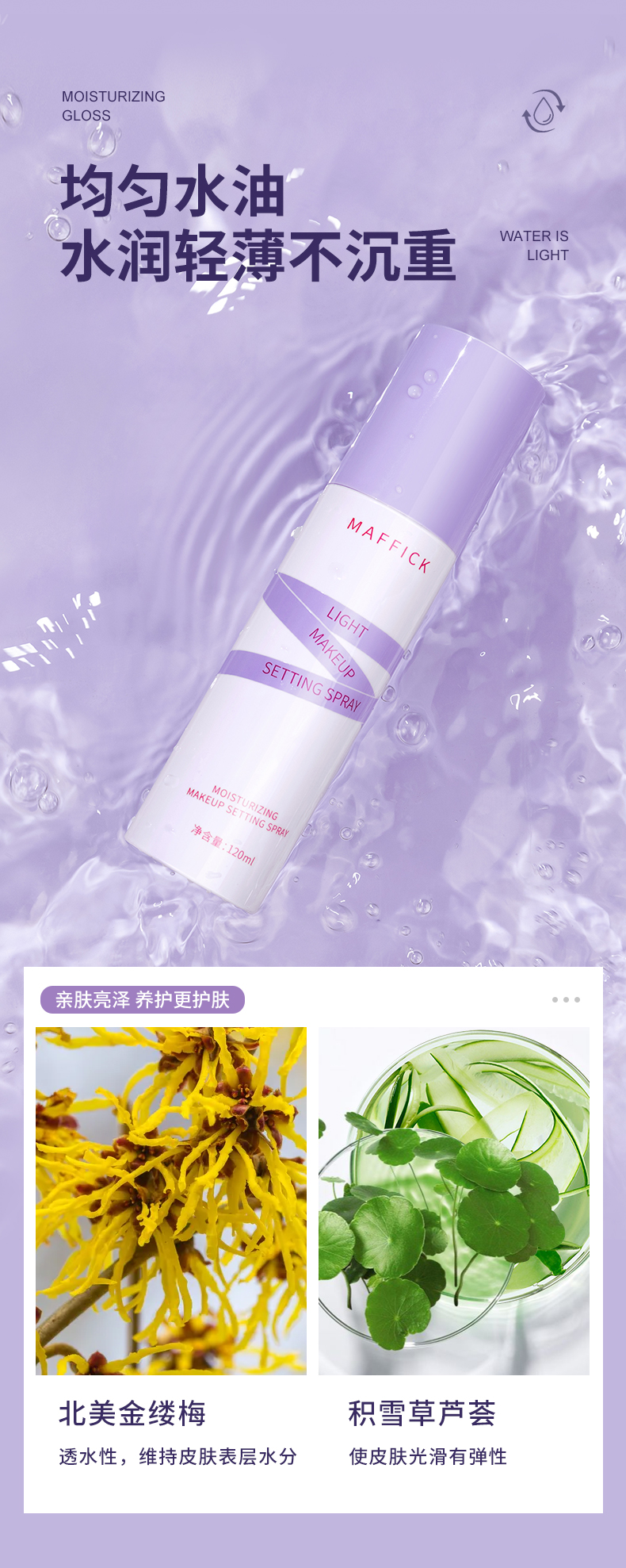 【防水防油】MAFFICK轻盈保湿定妆喷雾保湿定妆两用夏季必备防掉妆神器24小时不脱妆