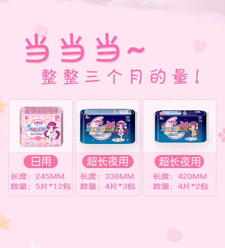 七度空间(SPACE7) 少女超薄纯棉卫生巾 日用夜用套装组合7包80片/17包80片(新老包装随发货)