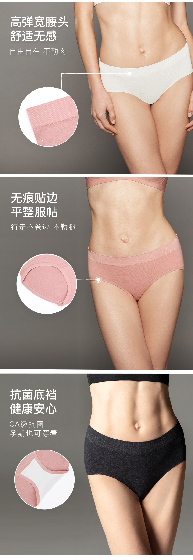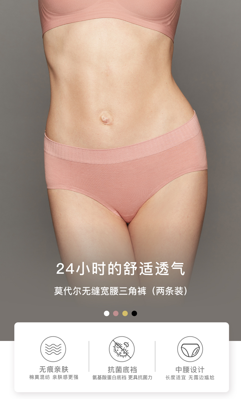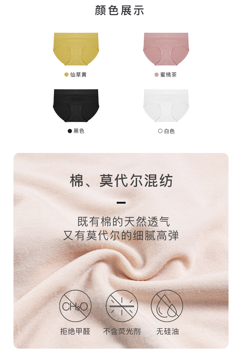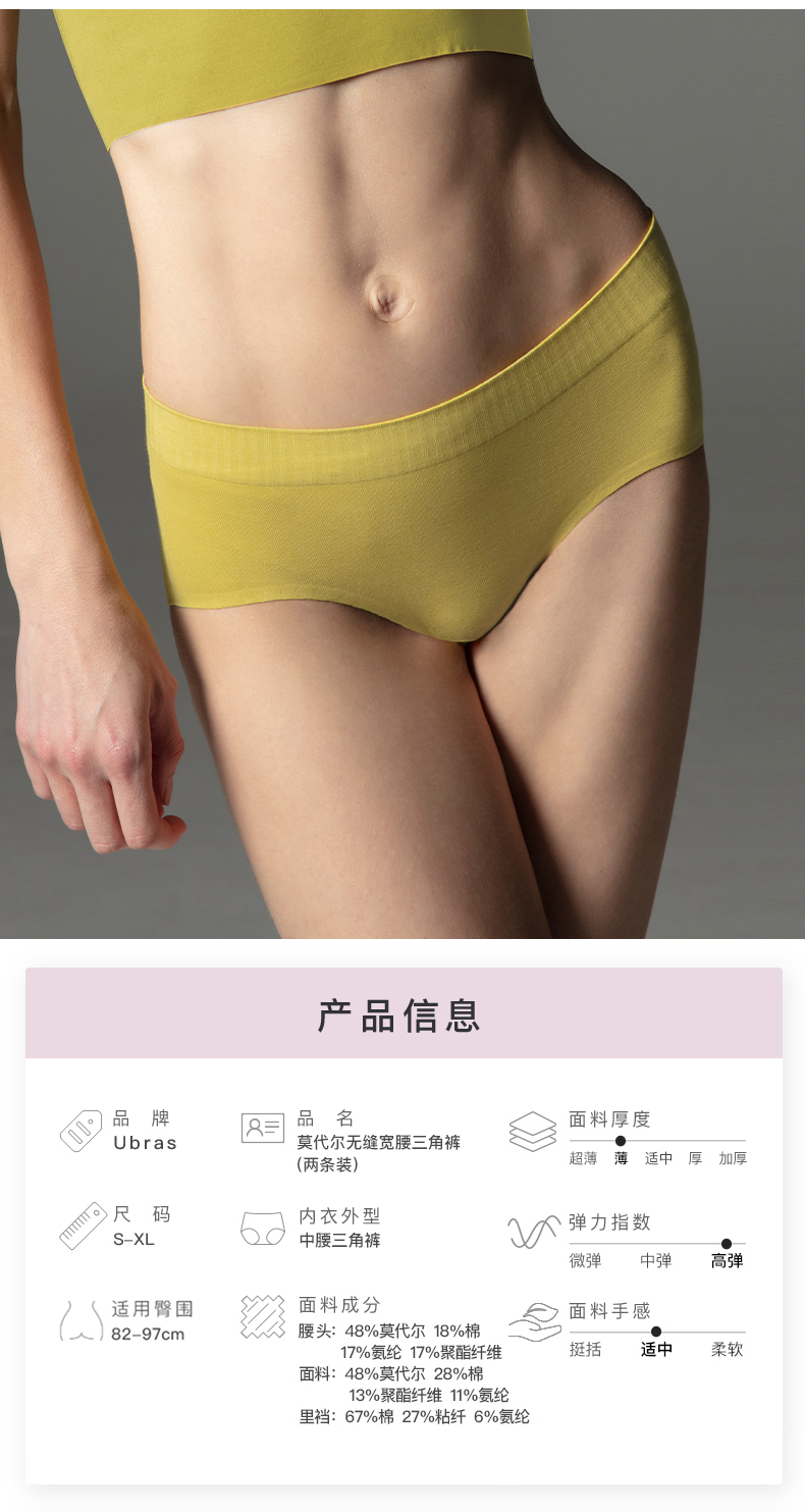 Ubras莫代尔无缝宽腰三角裤(两条装)内裤 女舒适透气女士内裤