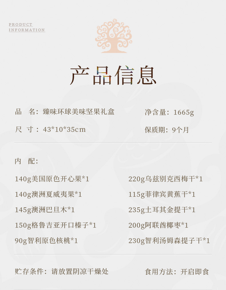 臻味环球美味礼盒1.665kg坚果干果零食大礼包组合混合装年货开心
