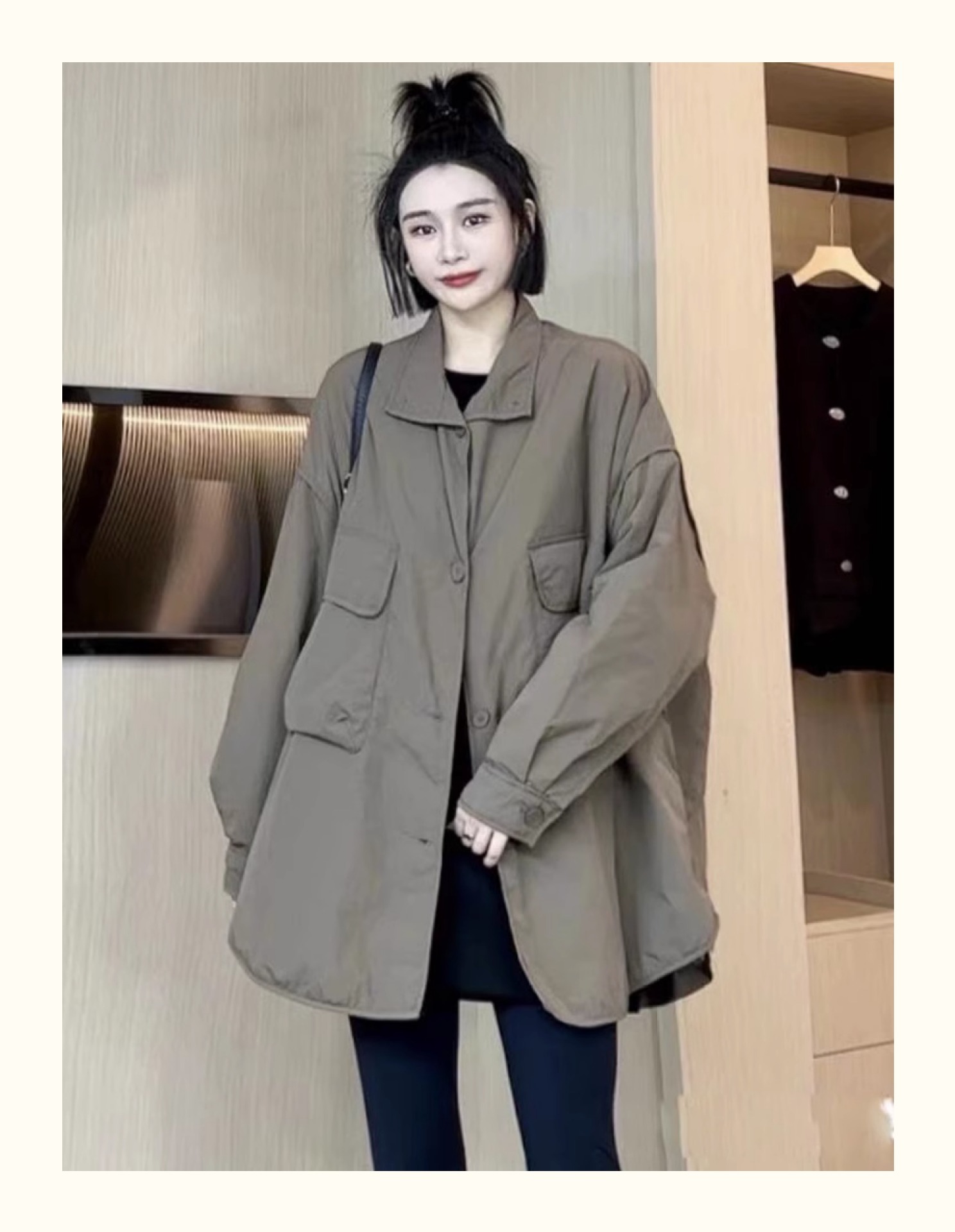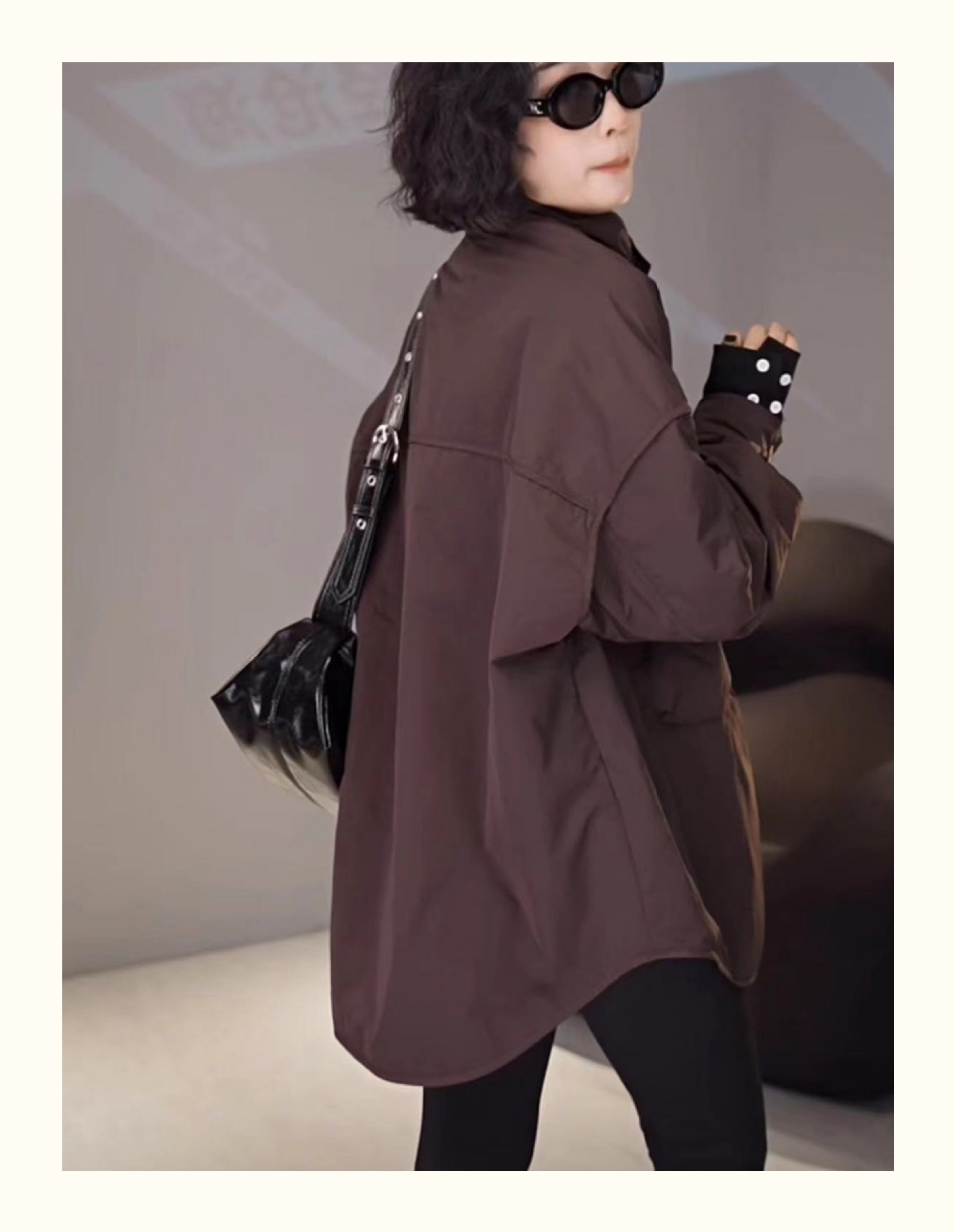 雀说美式复古豹纹翻领撞色外套女新款设计感小个子休闲夹克AL9070