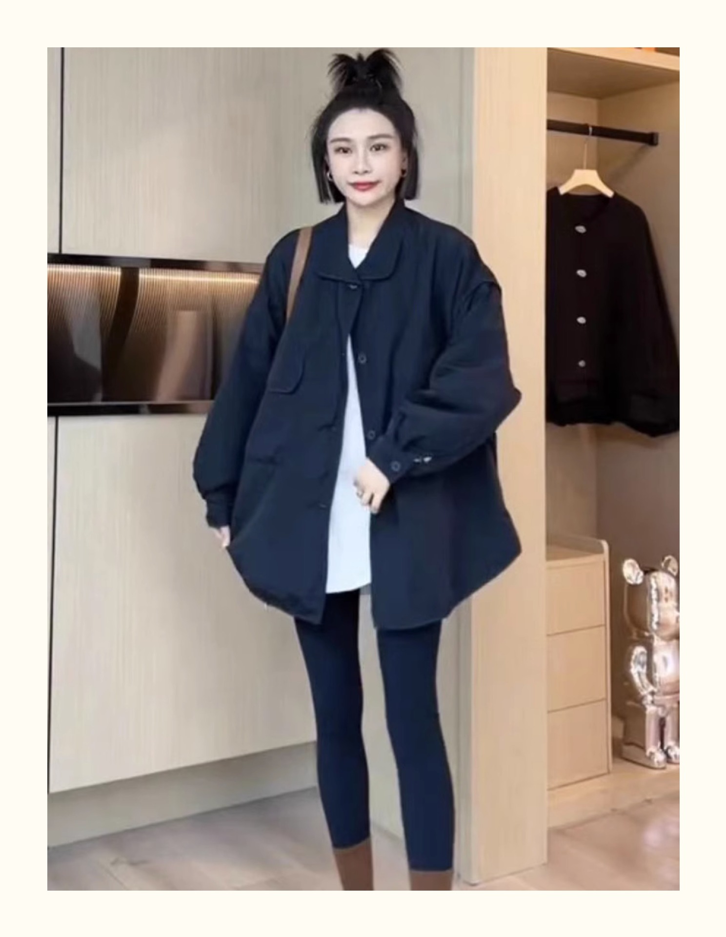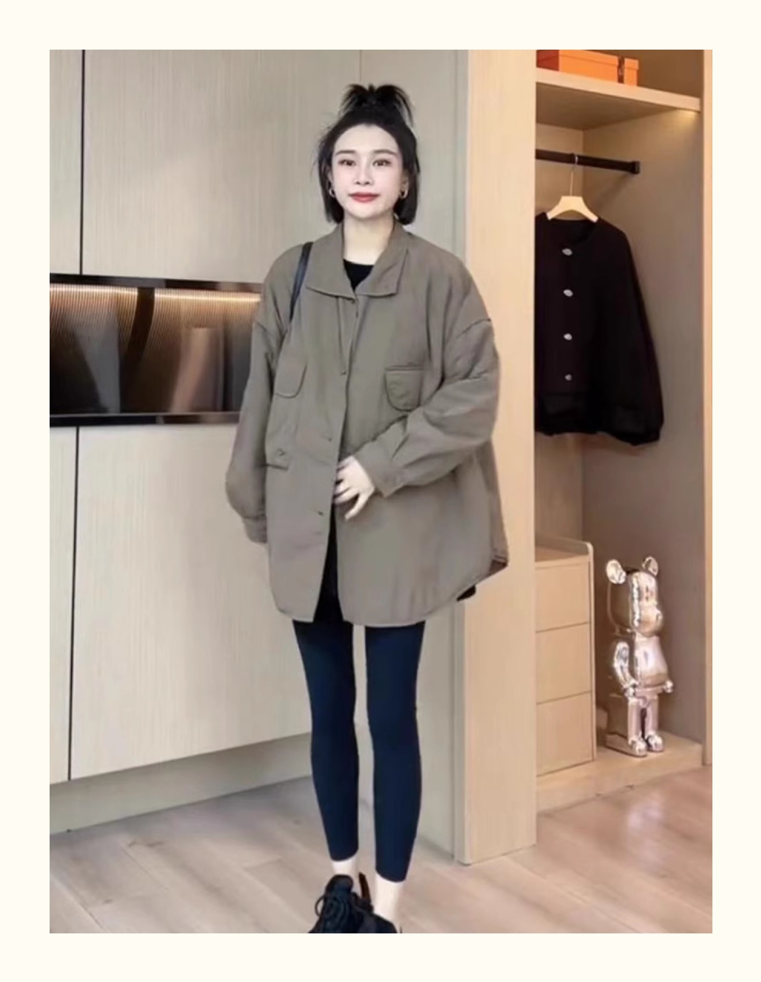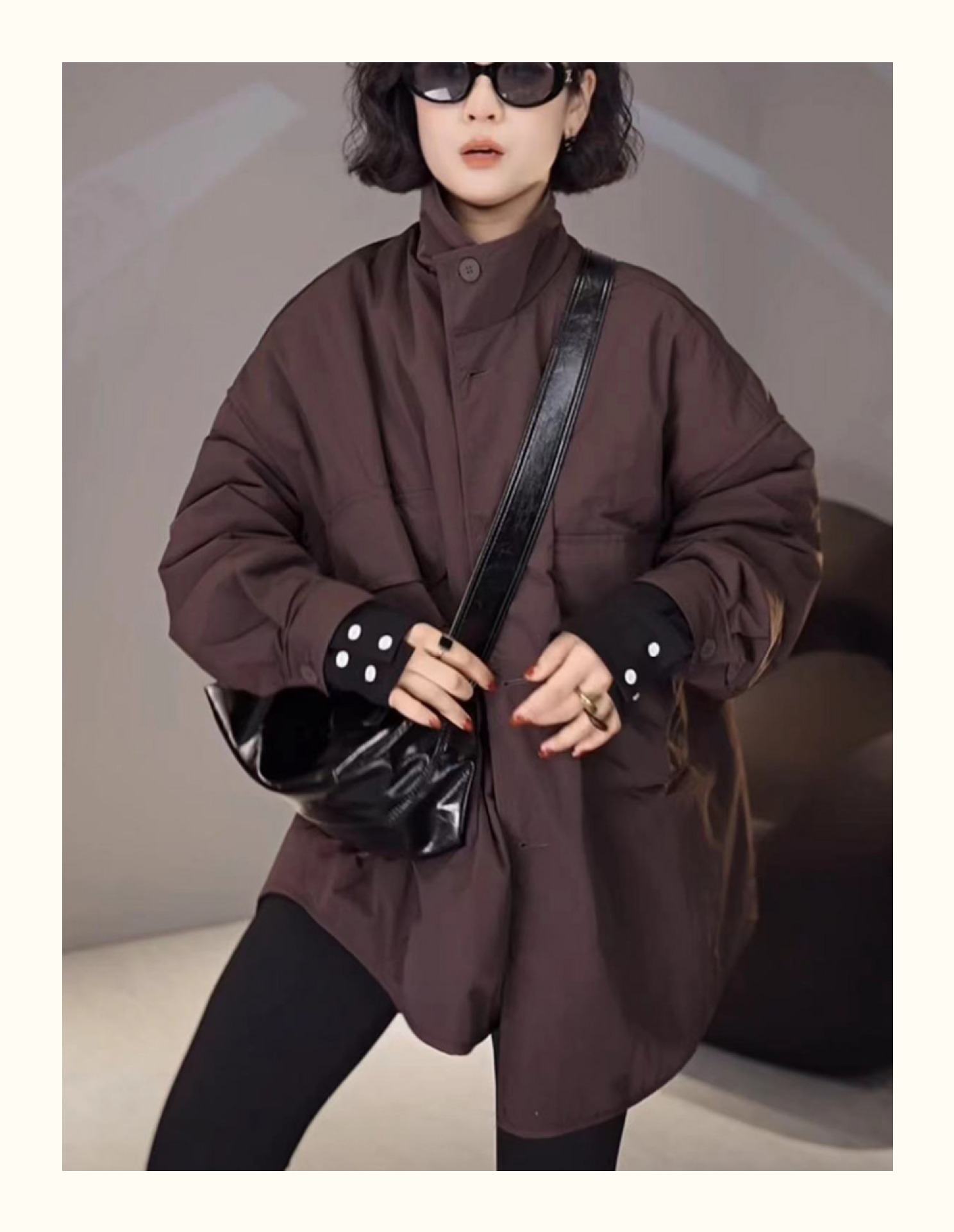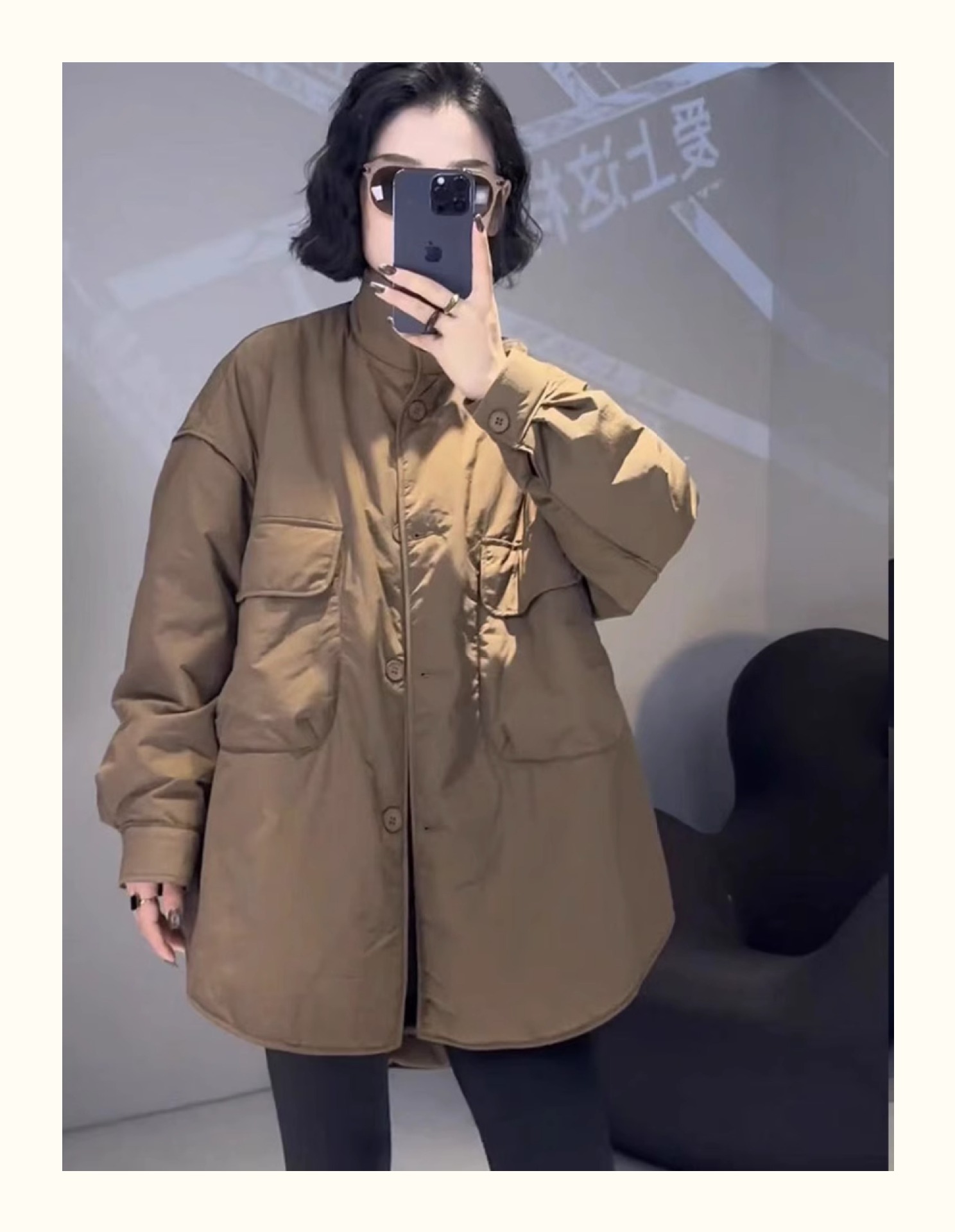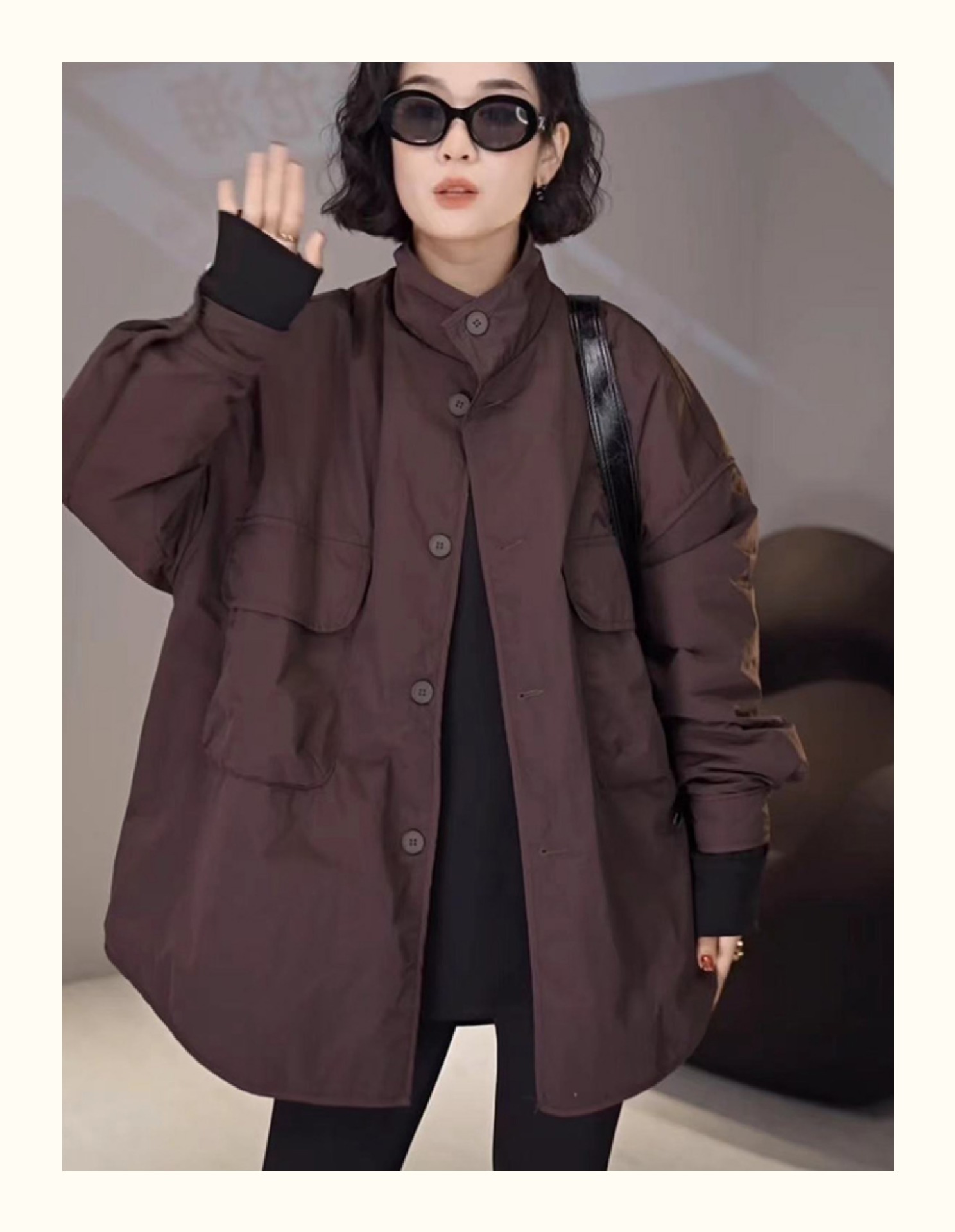 雀说宽松大口袋棉服新款休闲中长款开衫翻领棉衣外套AL3635