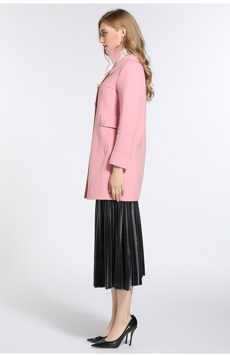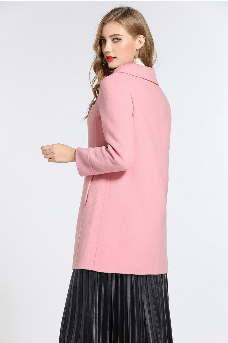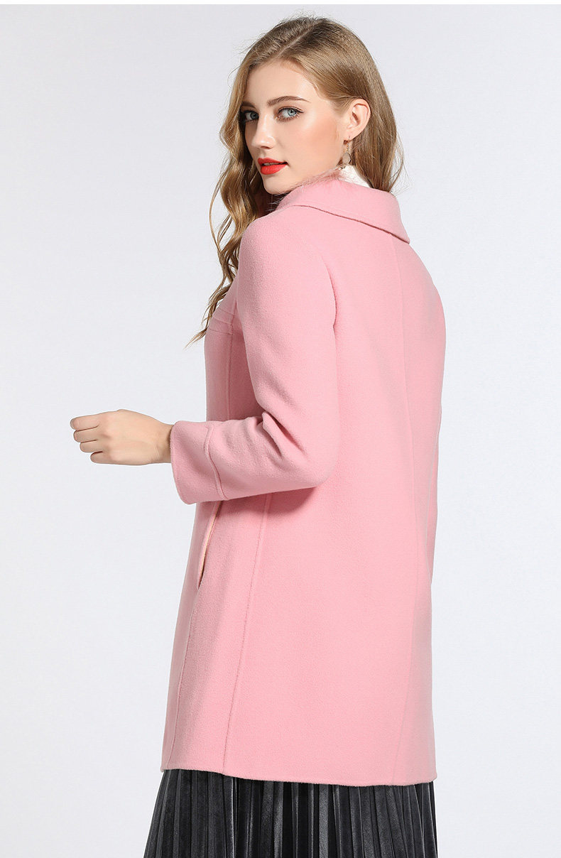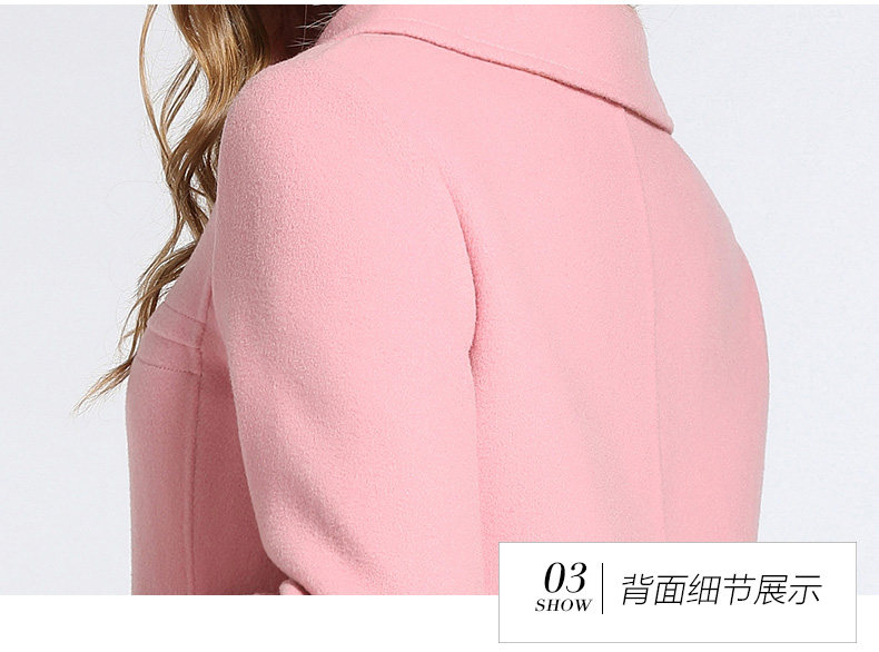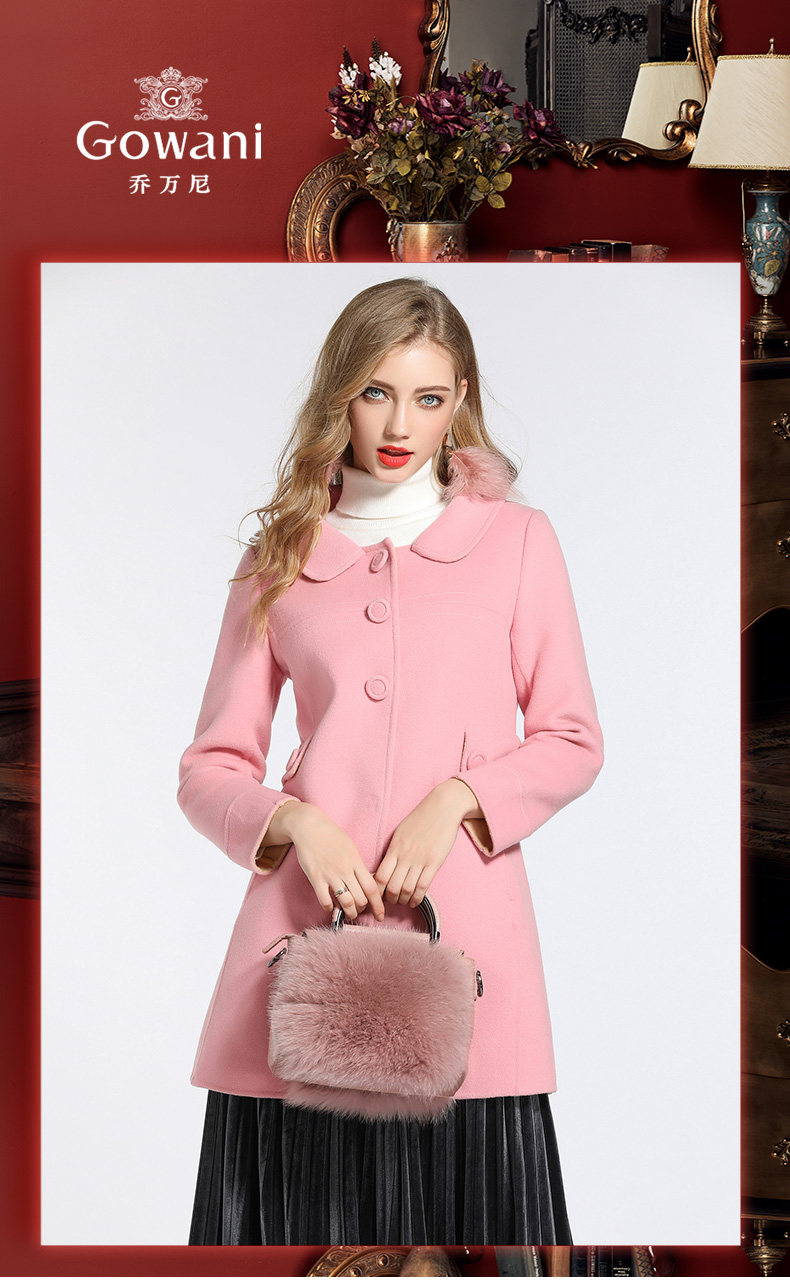 乔万尼冬季毛呢外套女粉色高腰修身淑女羊毛双面呢大衣E144A838