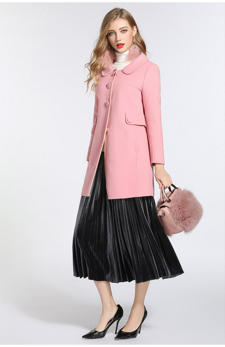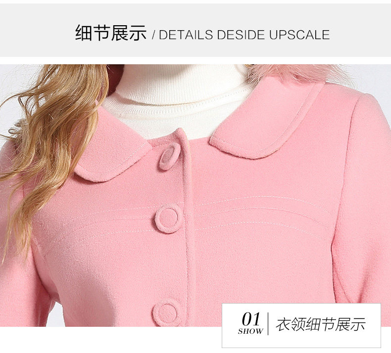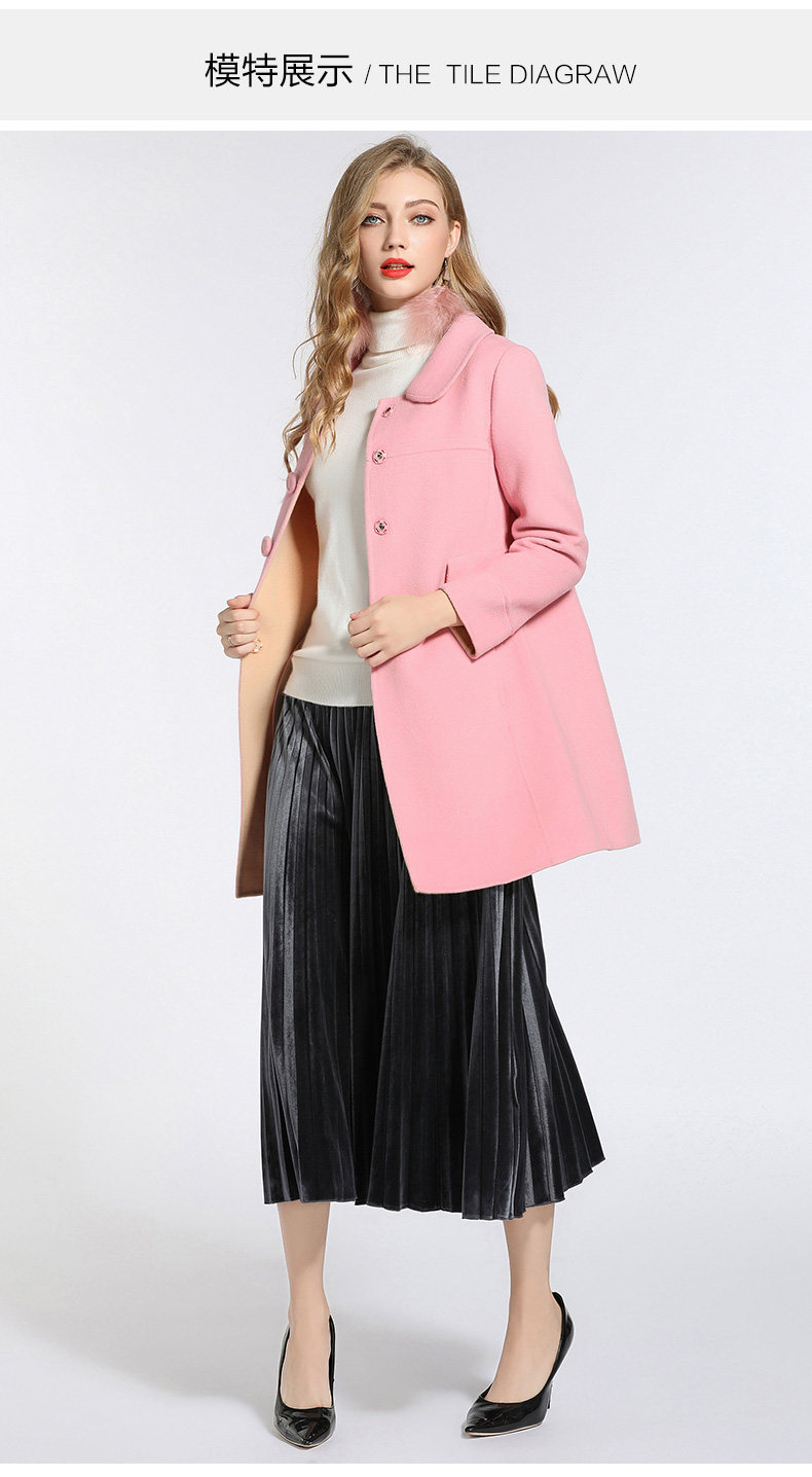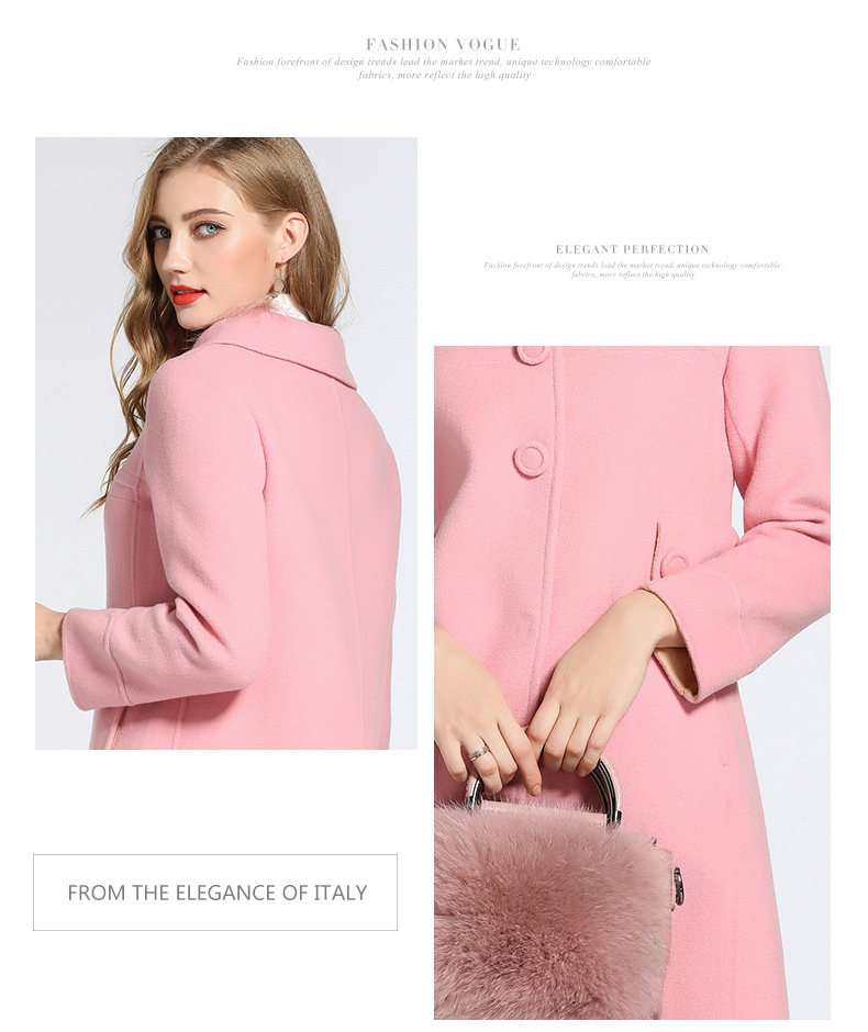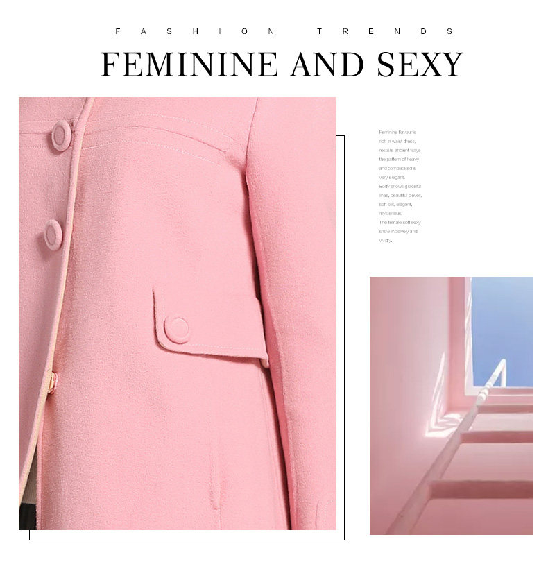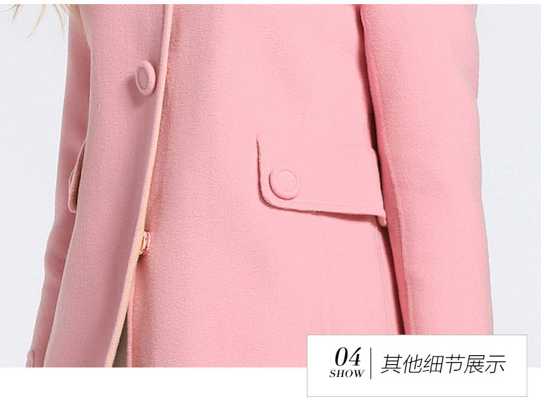 乔万尼冬季毛呢外套女粉色高腰修身淑女羊毛双面呢大衣E144A838