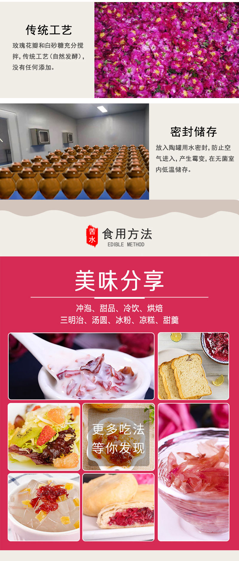 苦水牌秘制玫瑰酱300g甘肃玫瑰原产地核心产区手工采摘白糖与鲜花瓣自然发酵