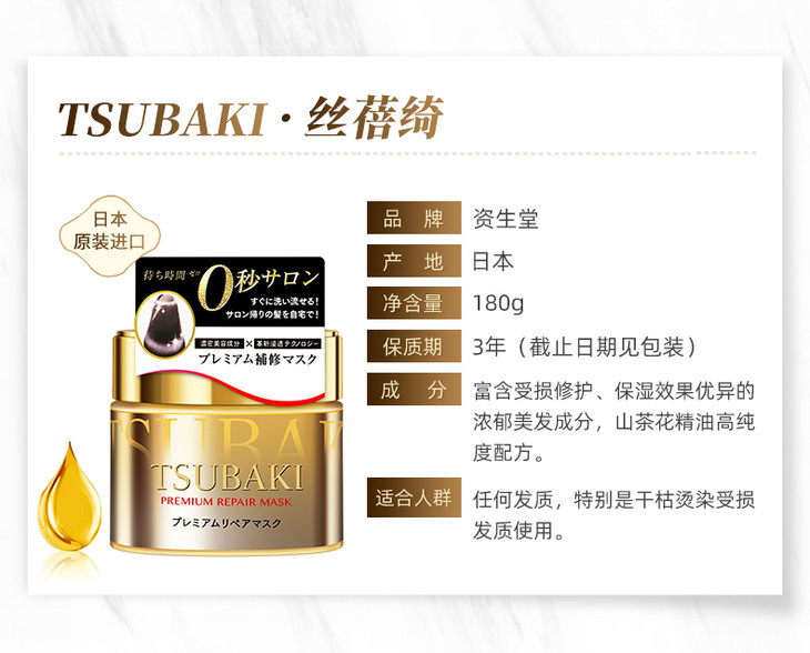 资生堂SHISEIDO丝蓓绮臻护多效修护发膜180g护发素