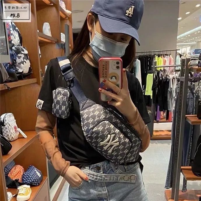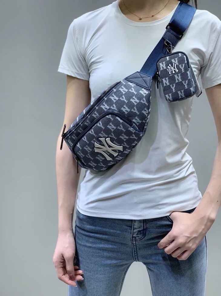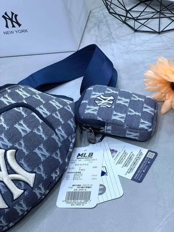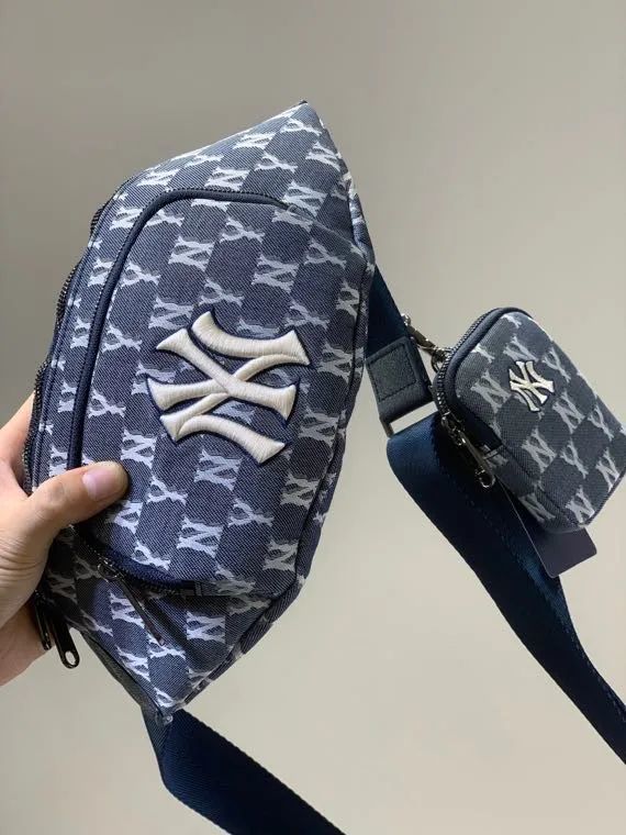 NY洋基队满印LOGO款牛仔布腰包胸包