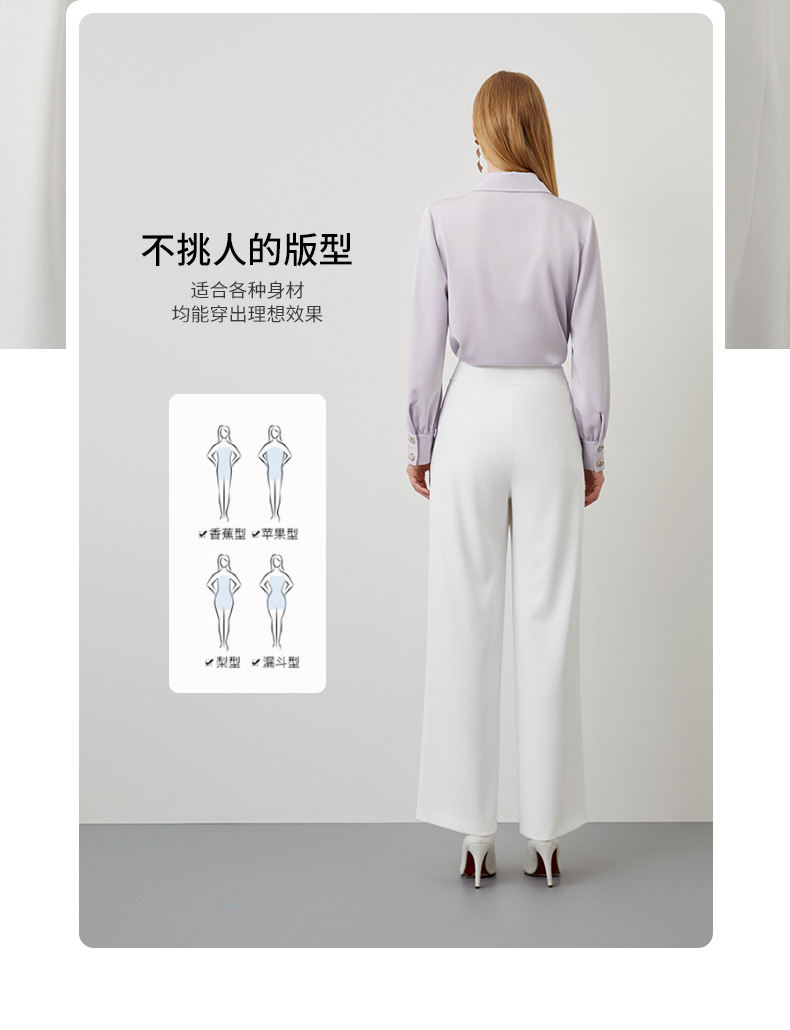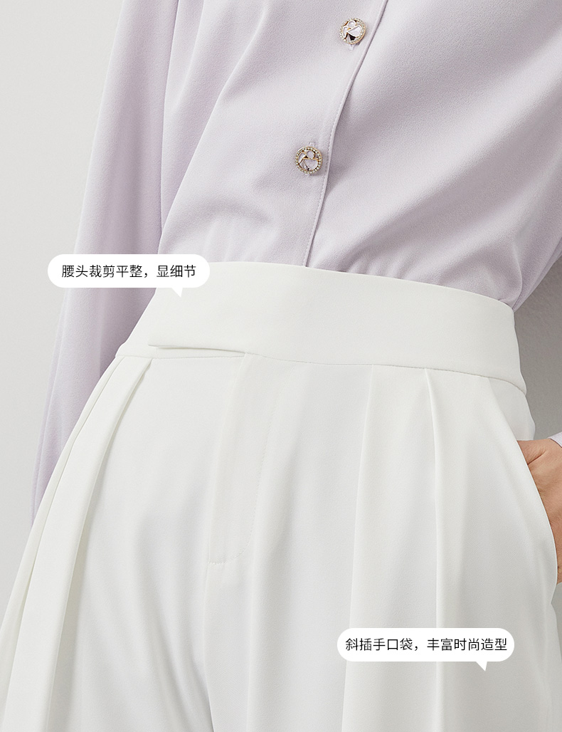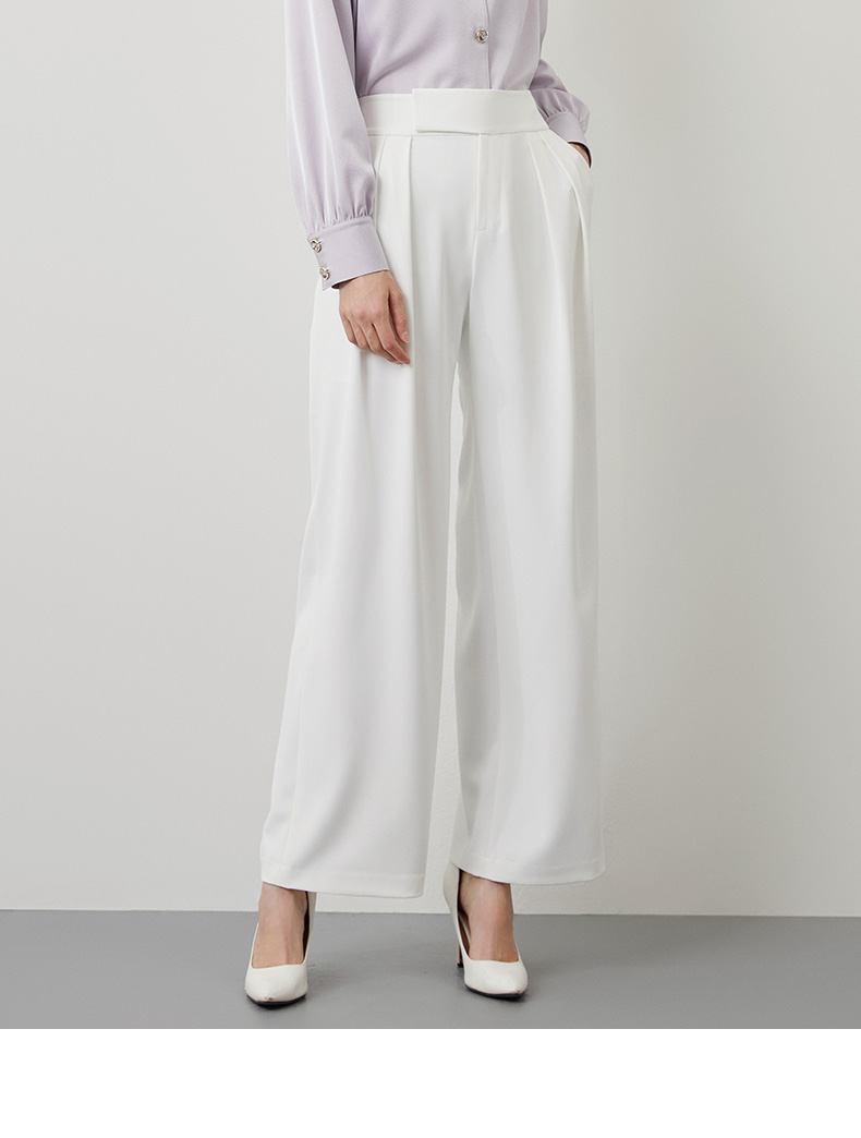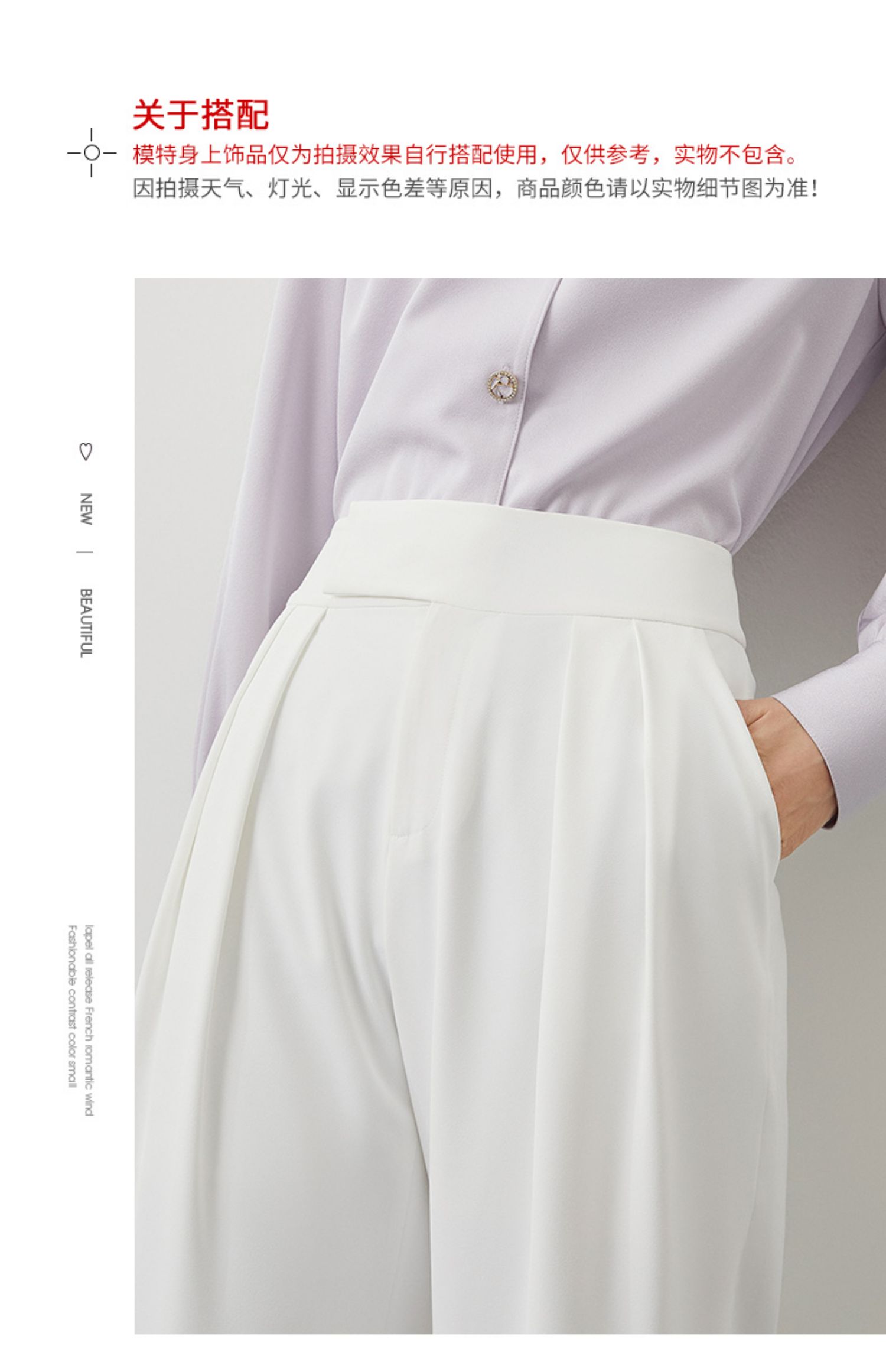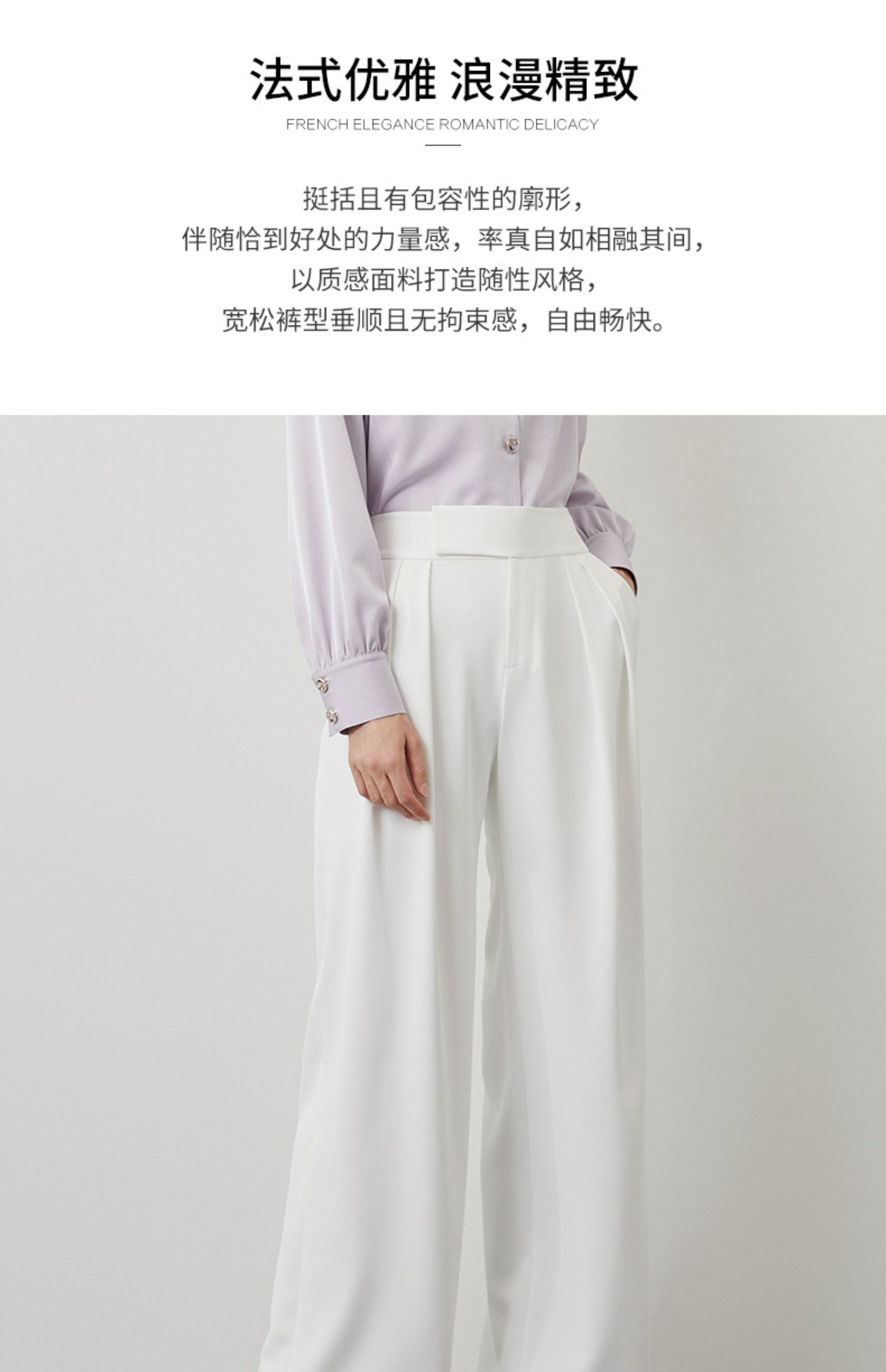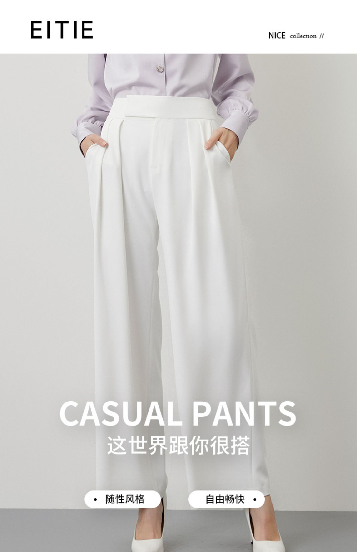 EITIE爱特爱秋季新款高腰宽松白色通勤简约垂坠显瘦阔腿裤女C2205008