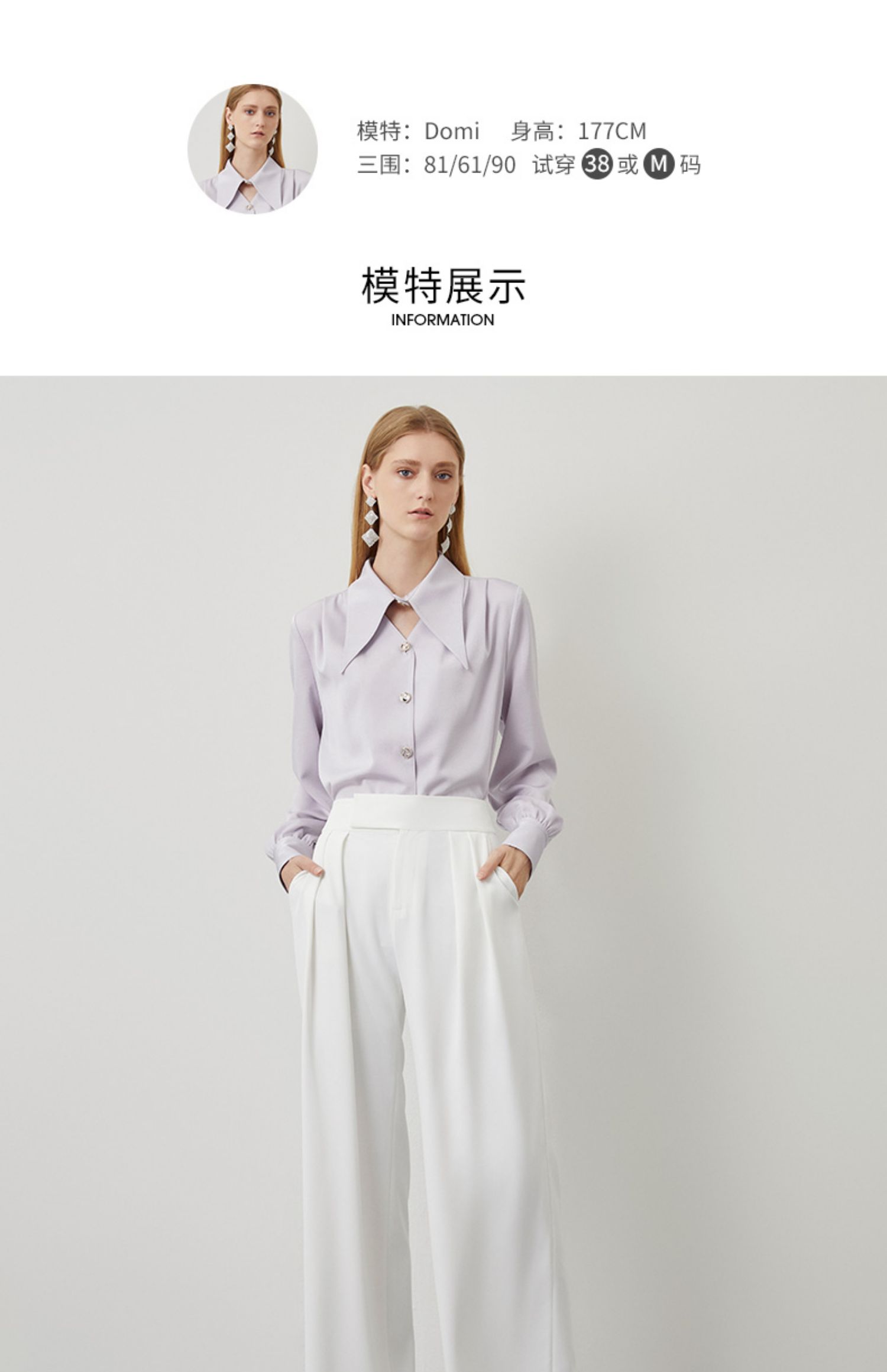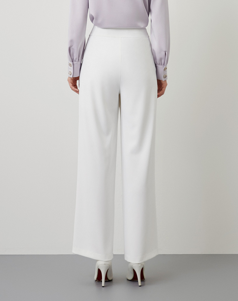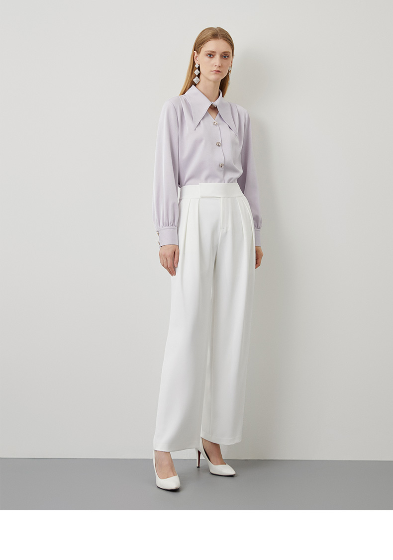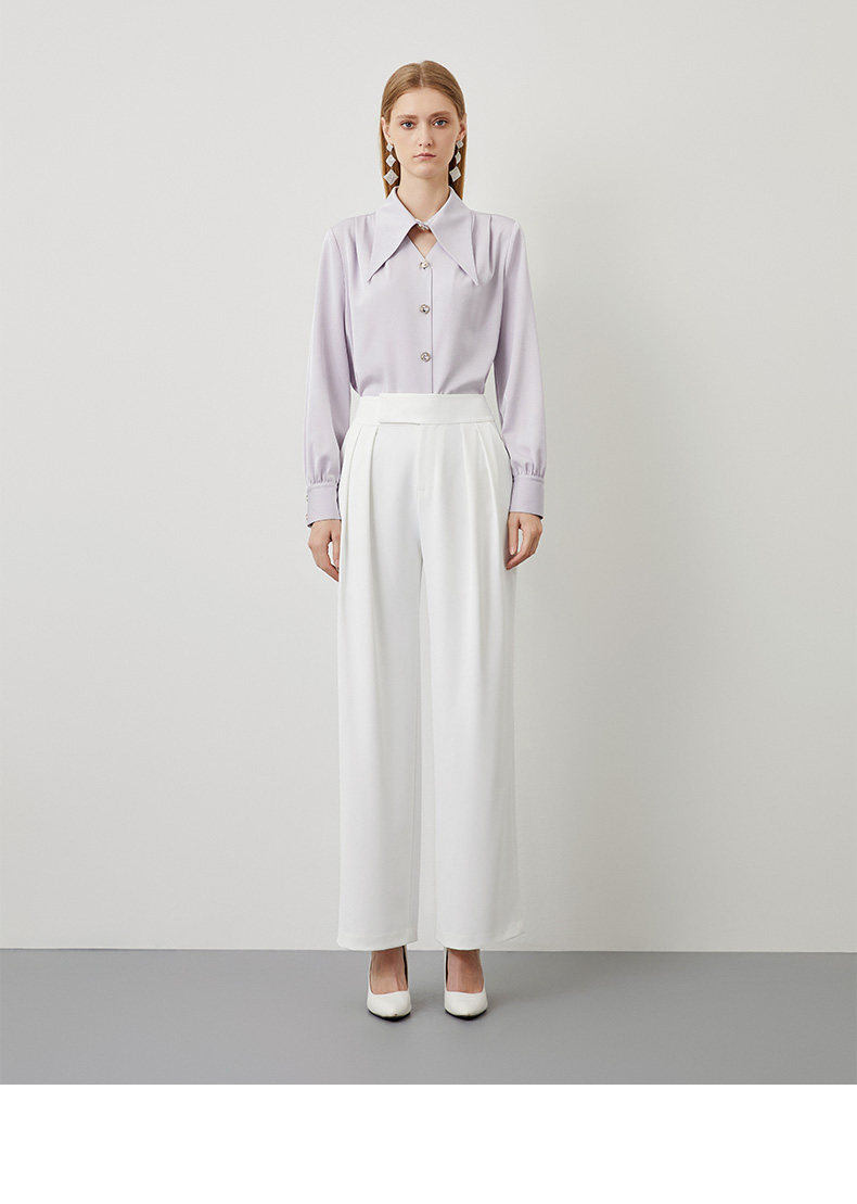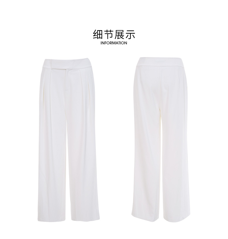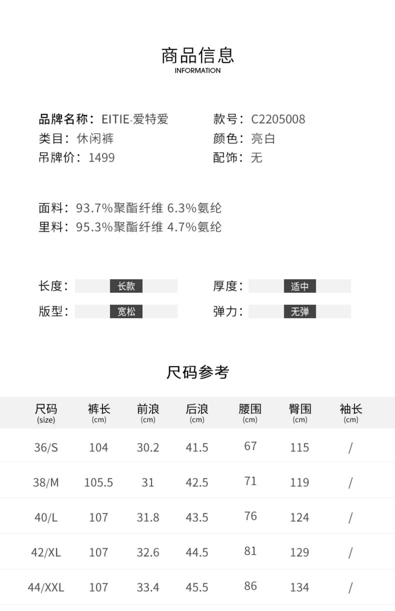EITIE爱特爱秋季新款高腰宽松白色通勤简约垂坠显瘦阔腿裤女C2205008