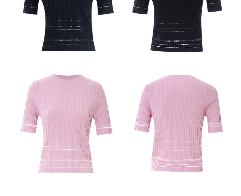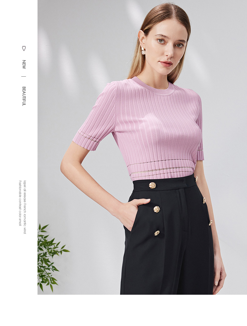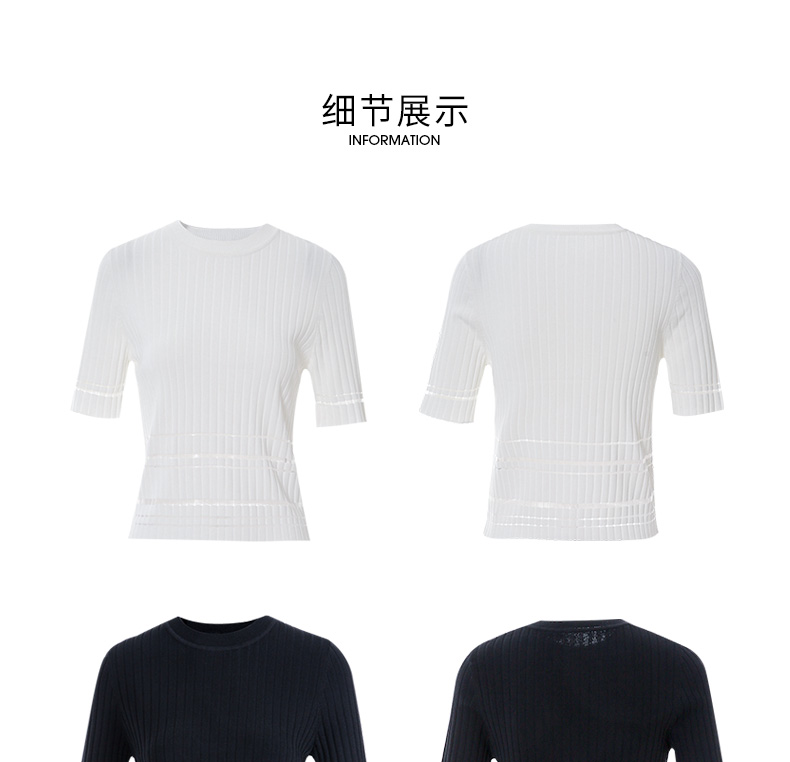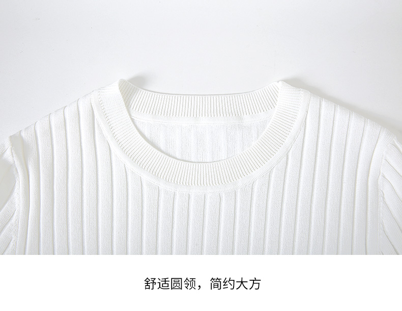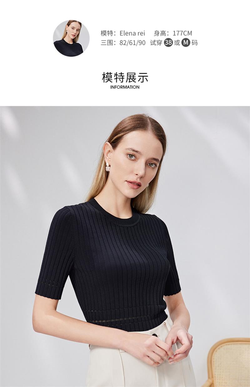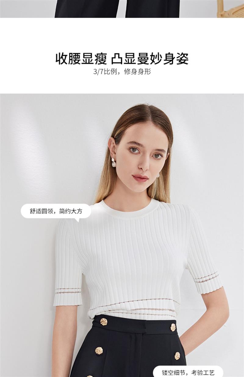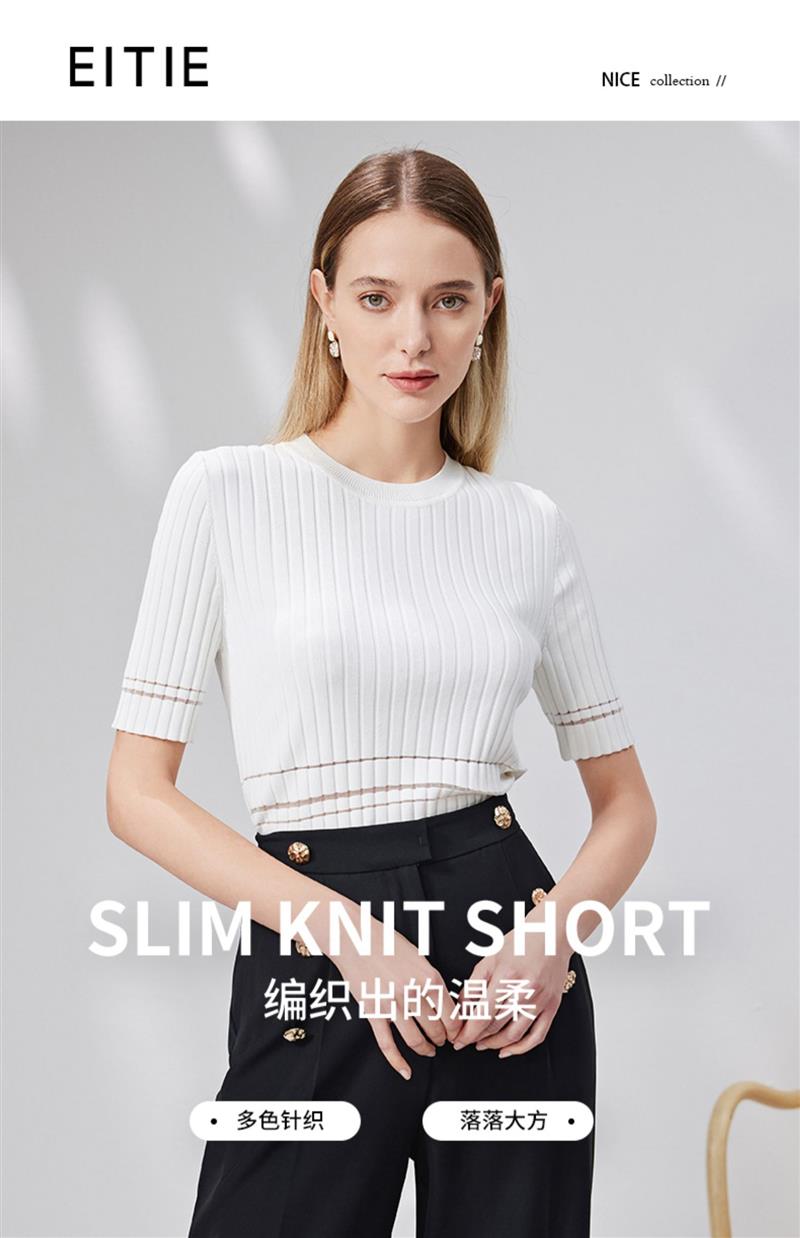 EITIE爱特爱简约基础修身显瘦纯色圆领半袖针织衫舒适夏新款B2301118