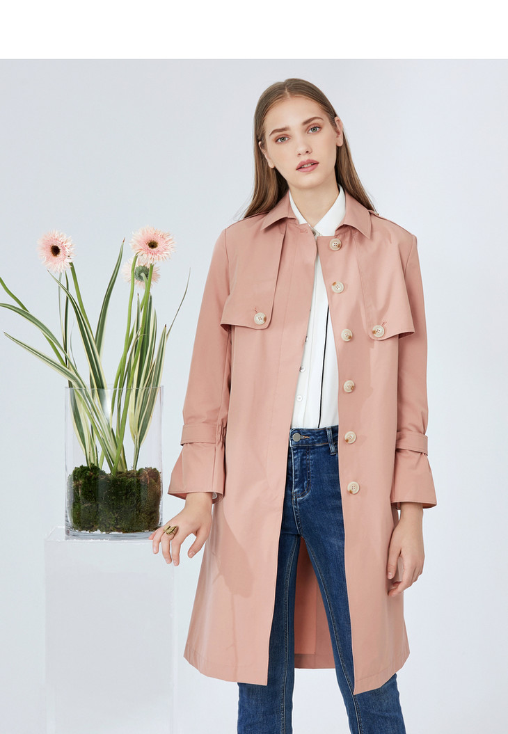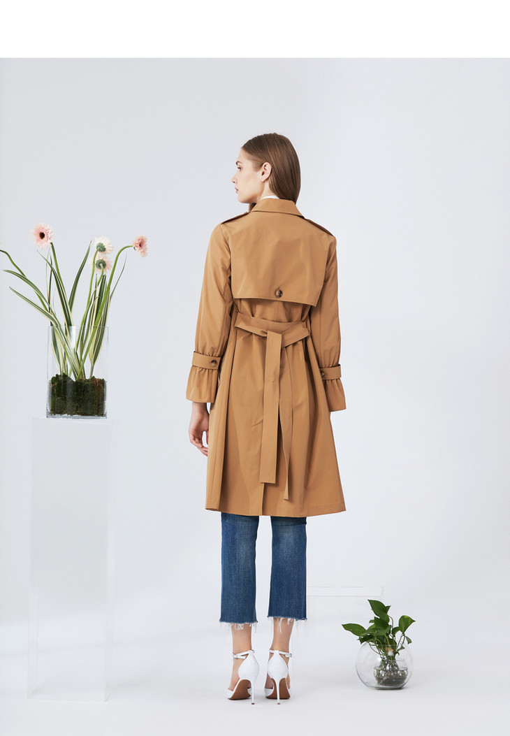 EITIE爱特爱秋季新款中性帅气复古经典收腰风衣外套女中长款6104804