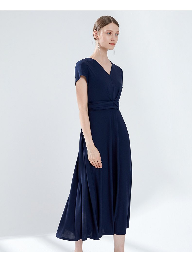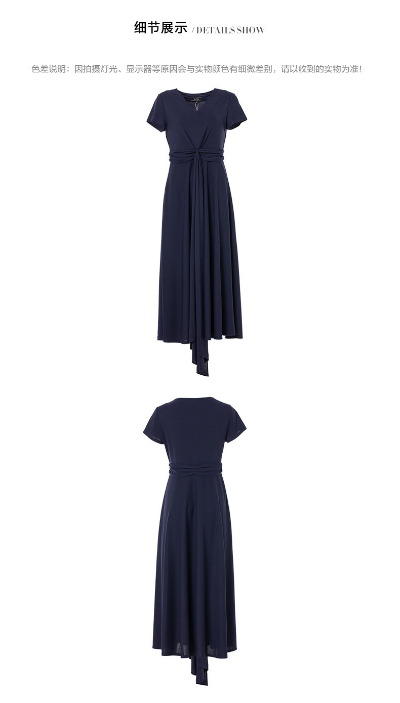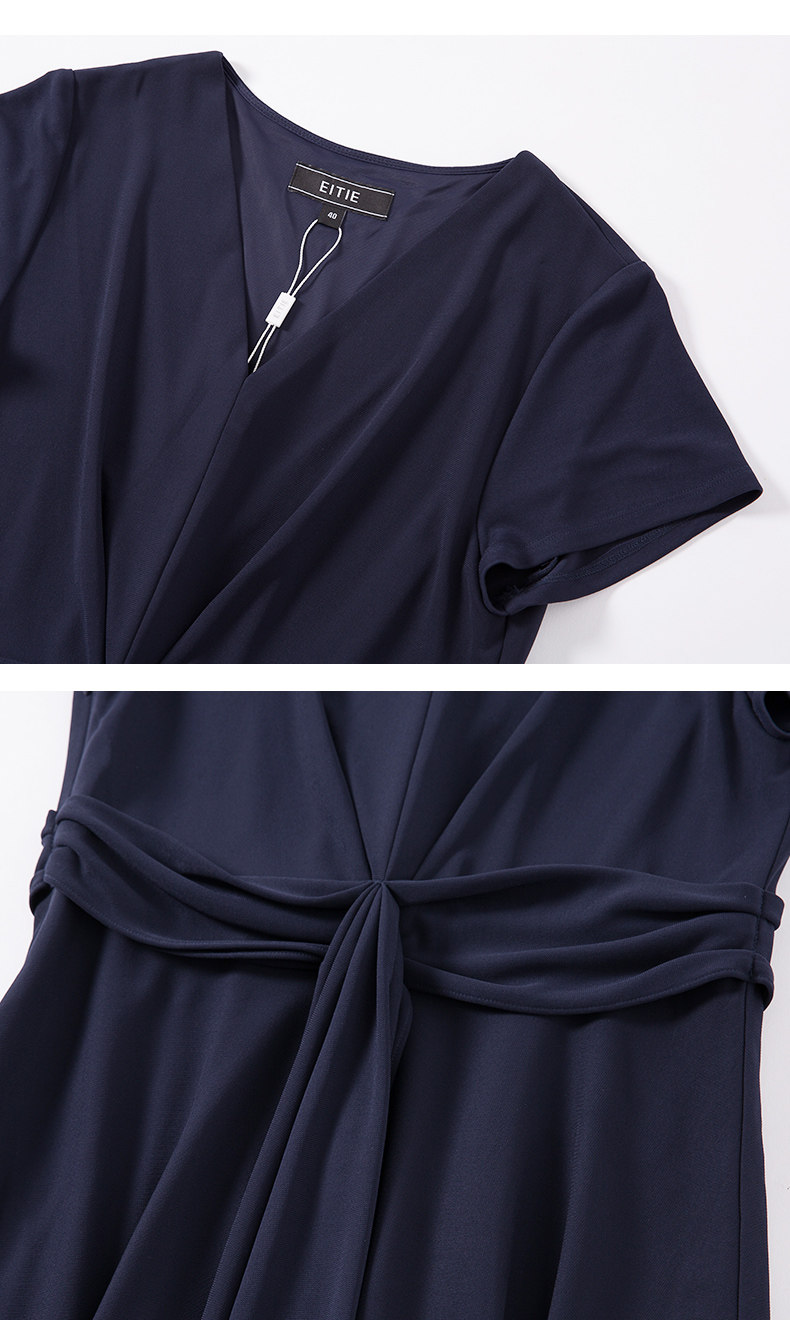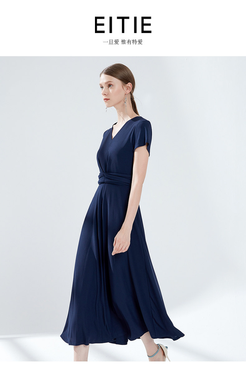 EITIE爱特爱女装夏季新品V领时尚气质收腰垂坠褶皱长款连衣裙5907690