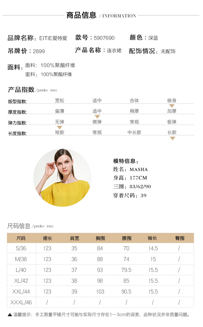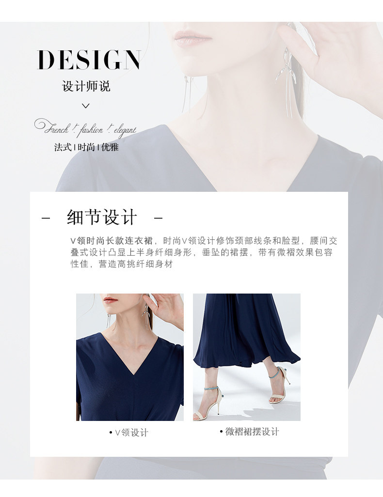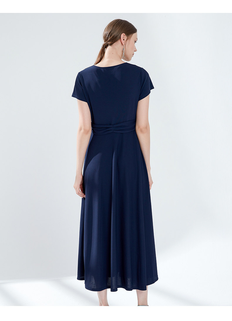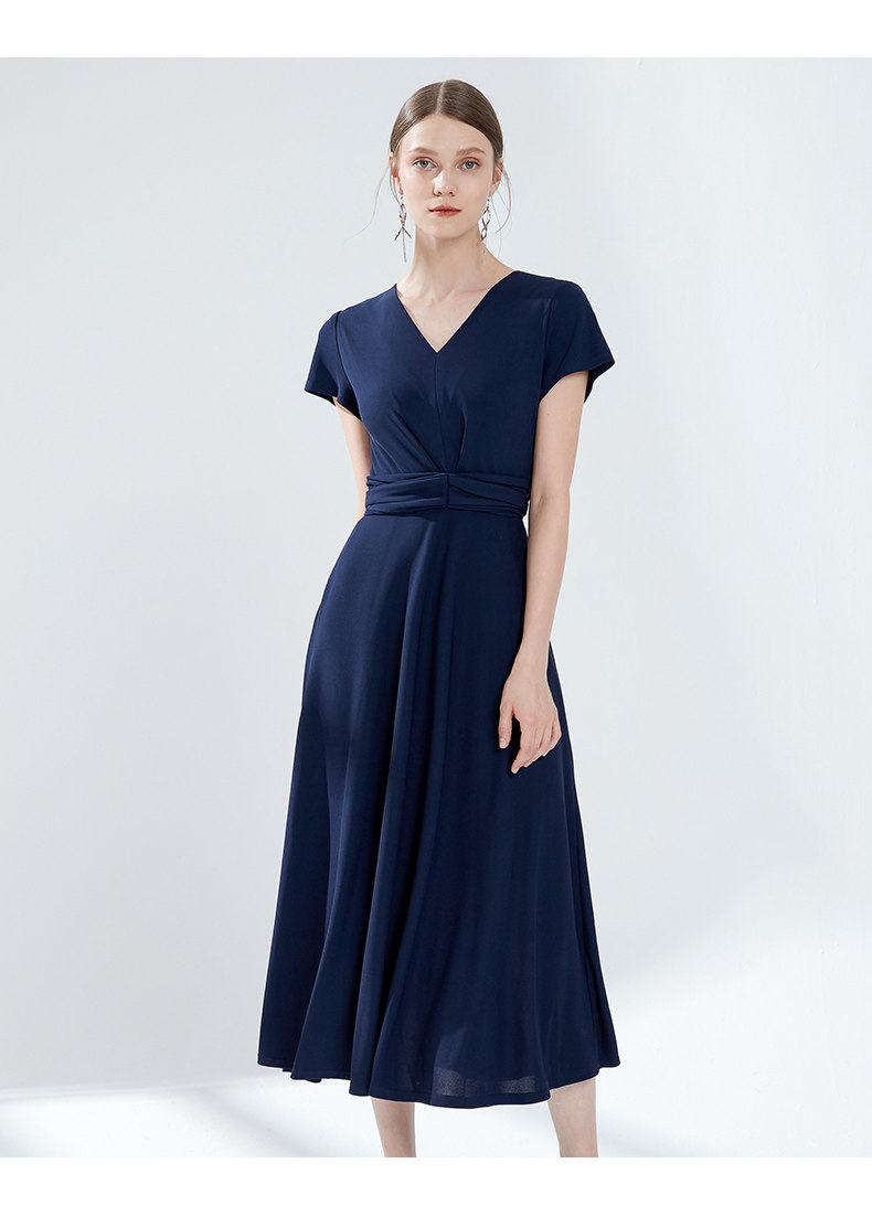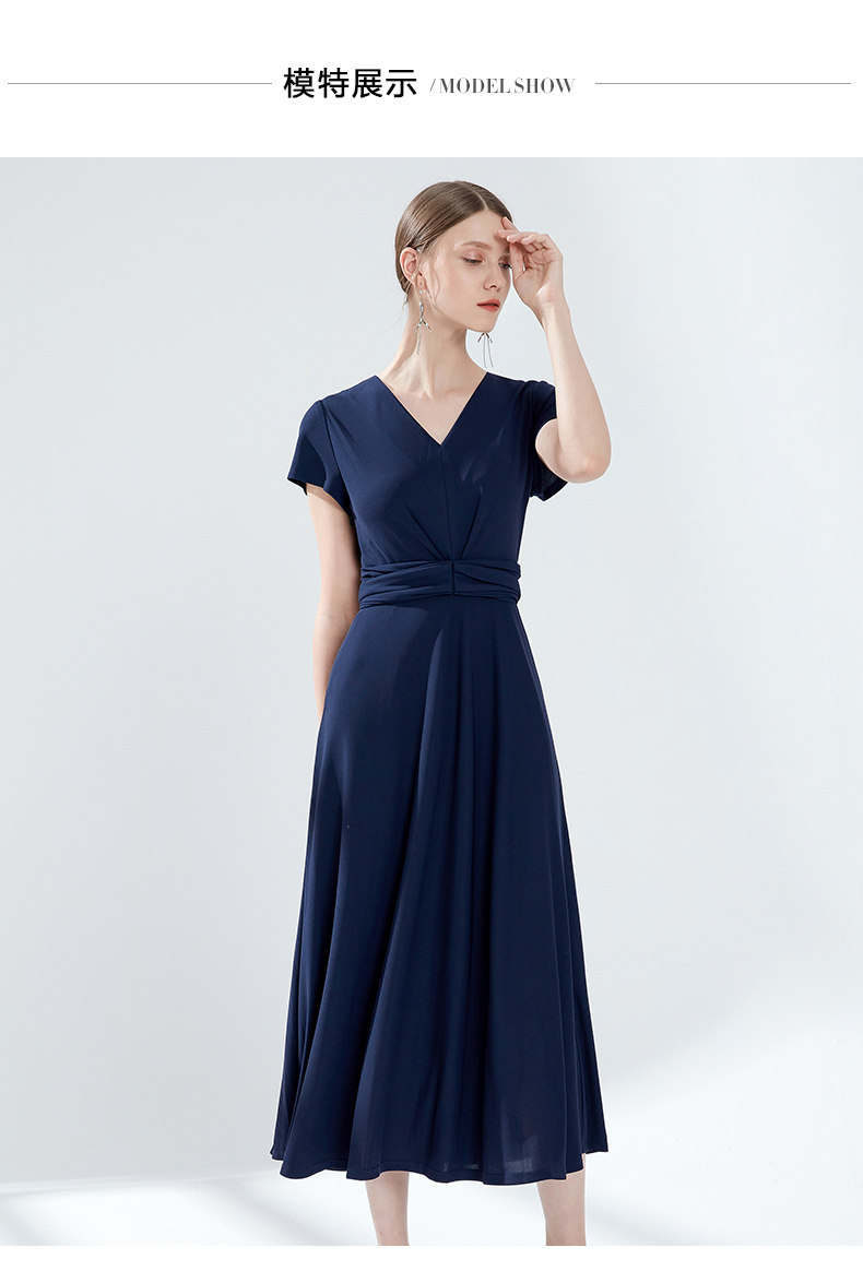 EITIE爱特爱女装夏季新品V领时尚气质收腰垂坠褶皱长款连衣裙5907690