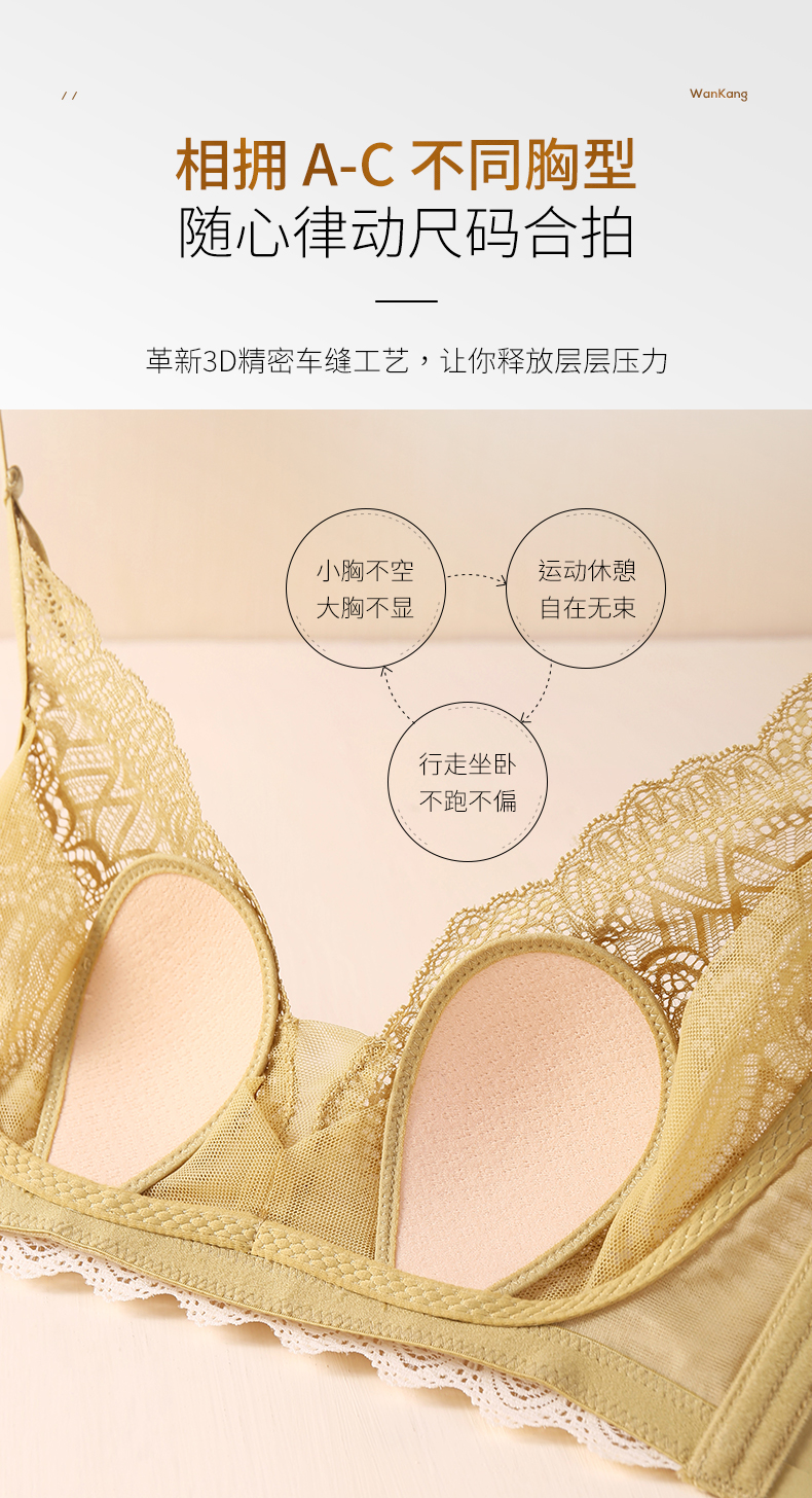 【首推】万康专利款蕾丝背心文胸女士内衣兔子耳朵内杯超薄款夏天文胸聚