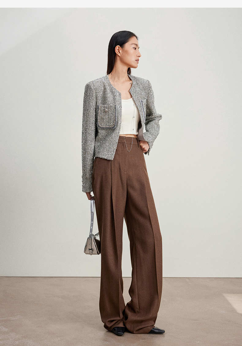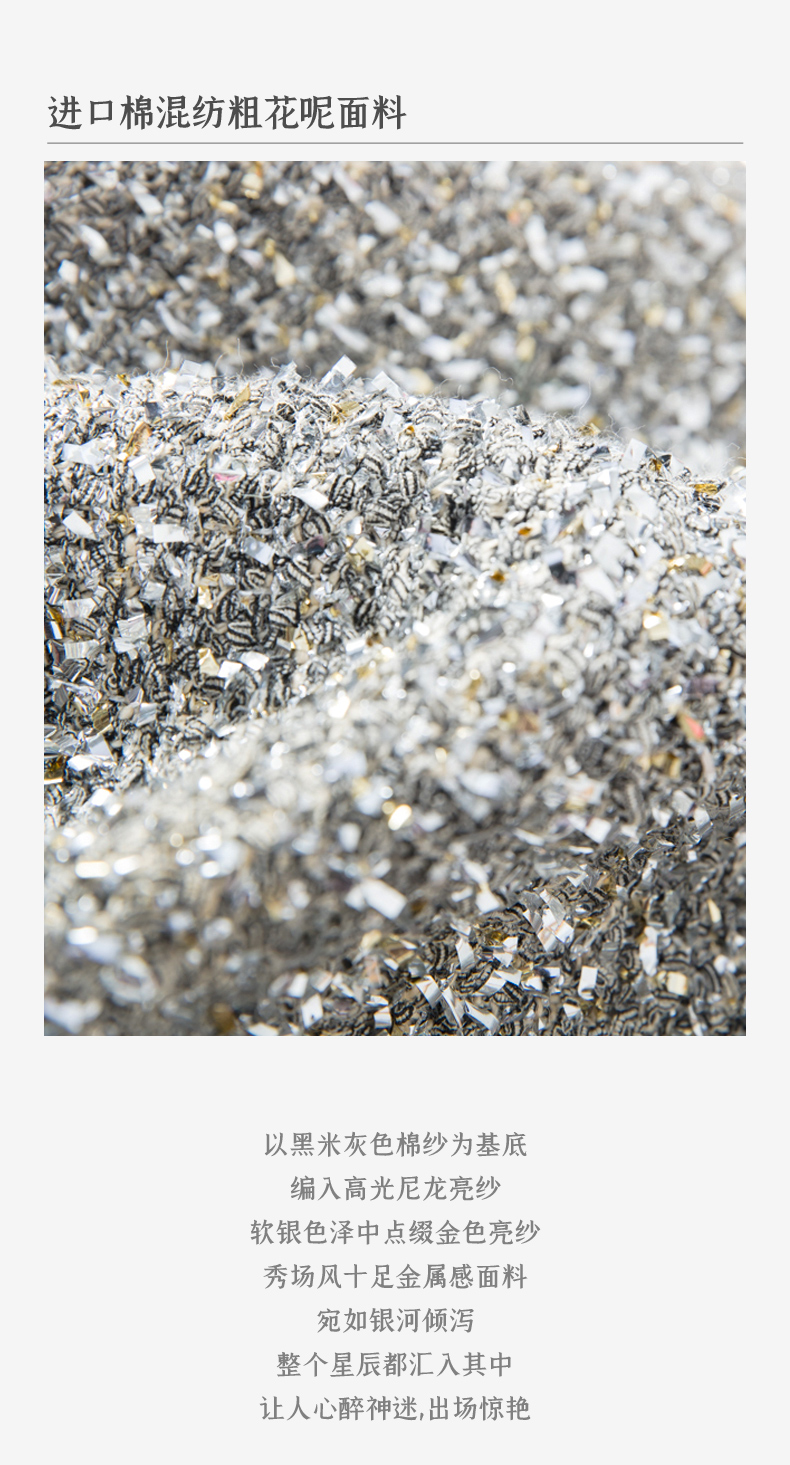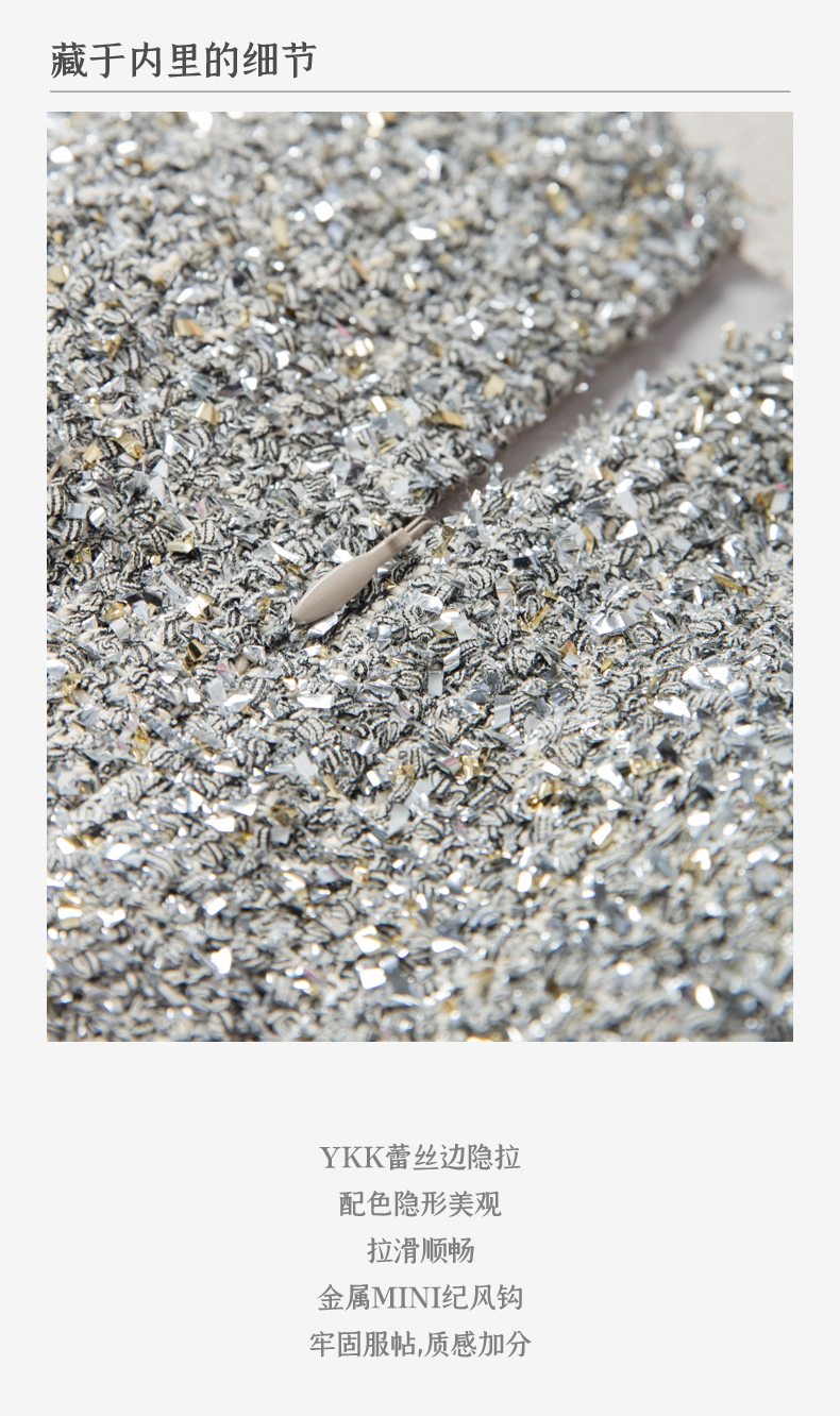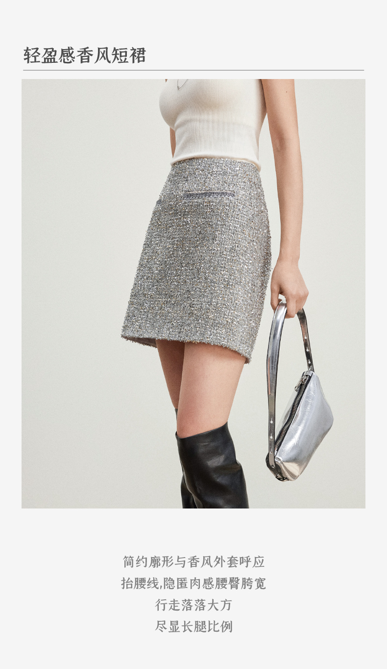 西嘉C+IMPRESS/西嘉高定亮片纱光泽感套装女织带小香风外套A字半身裙WT2401053