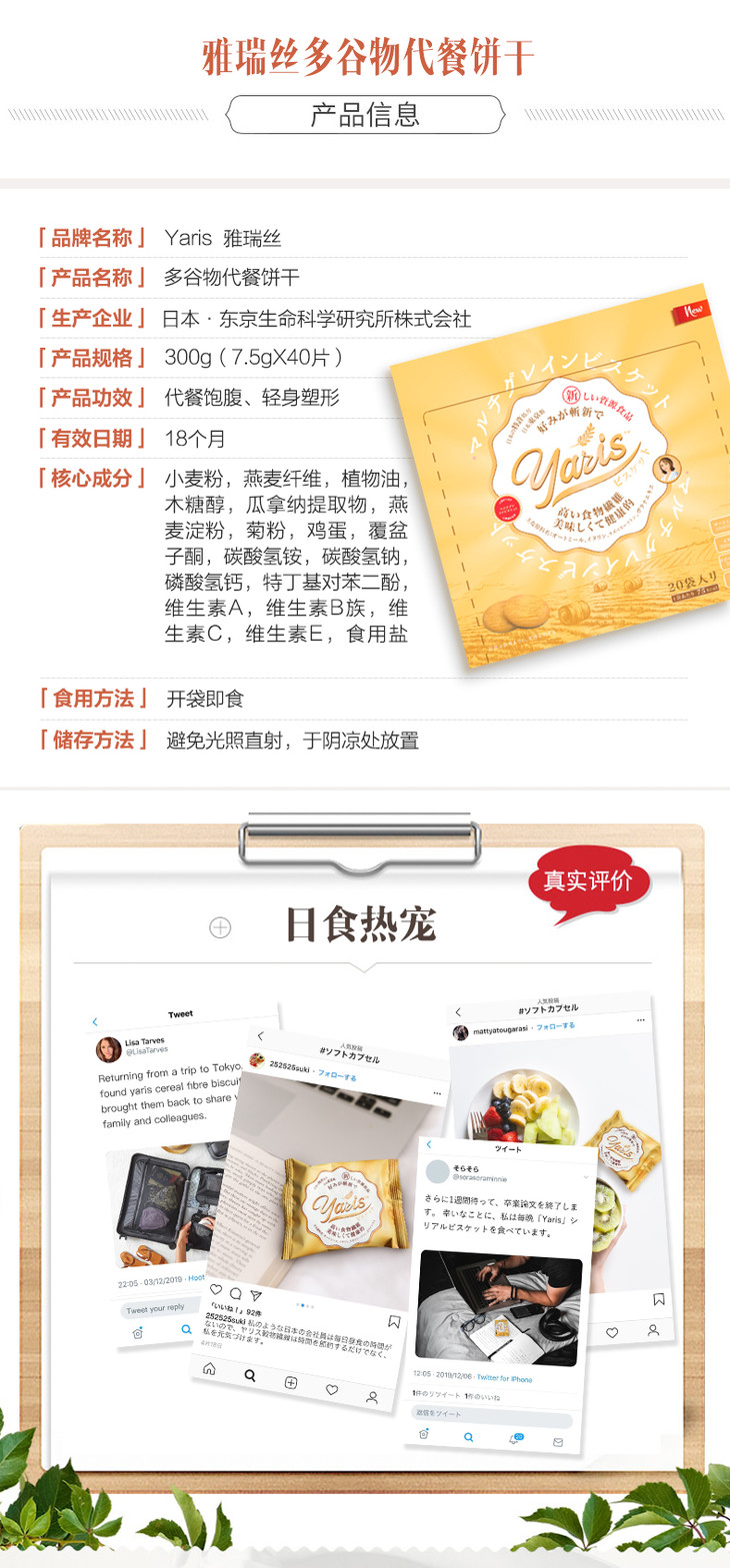 【日本超人气饼干吃多了也不怕胖】日本Yaris高纤维谷物代餐饼干长达5小时高饱腹感热量低至半个苹果科学配比全营养无蔗糖