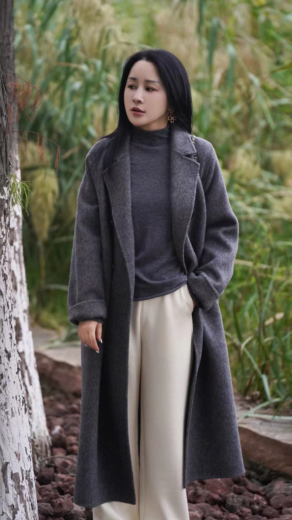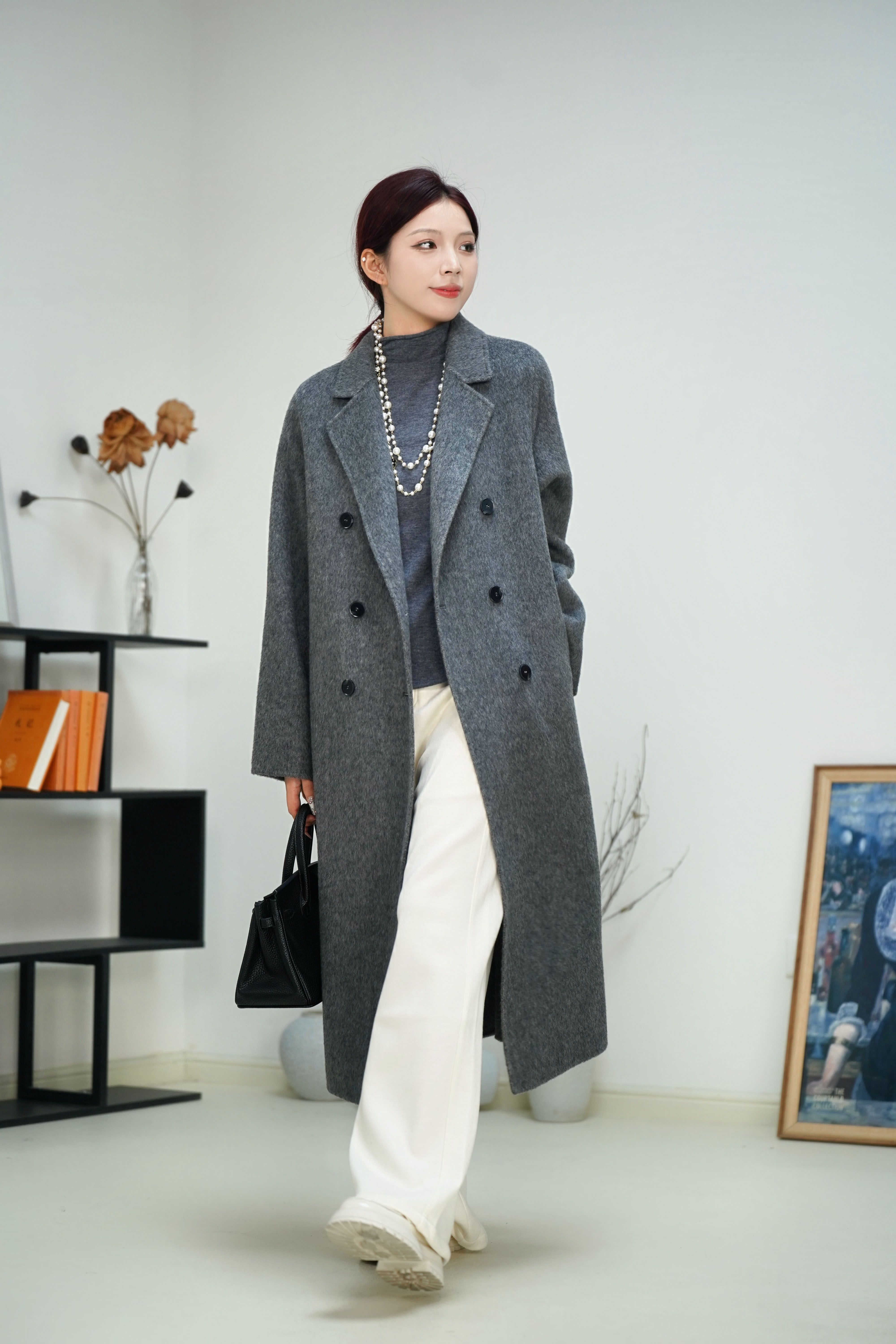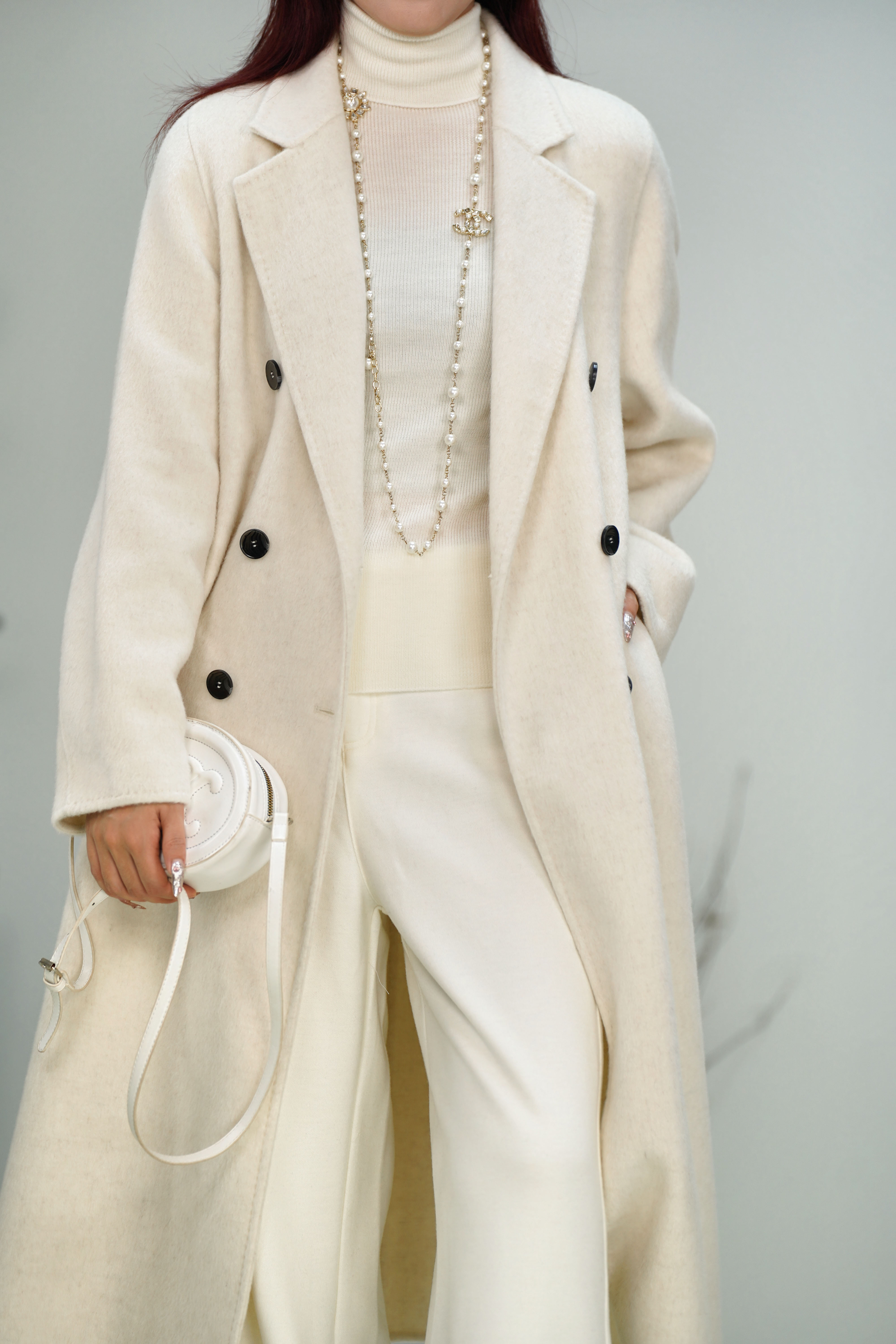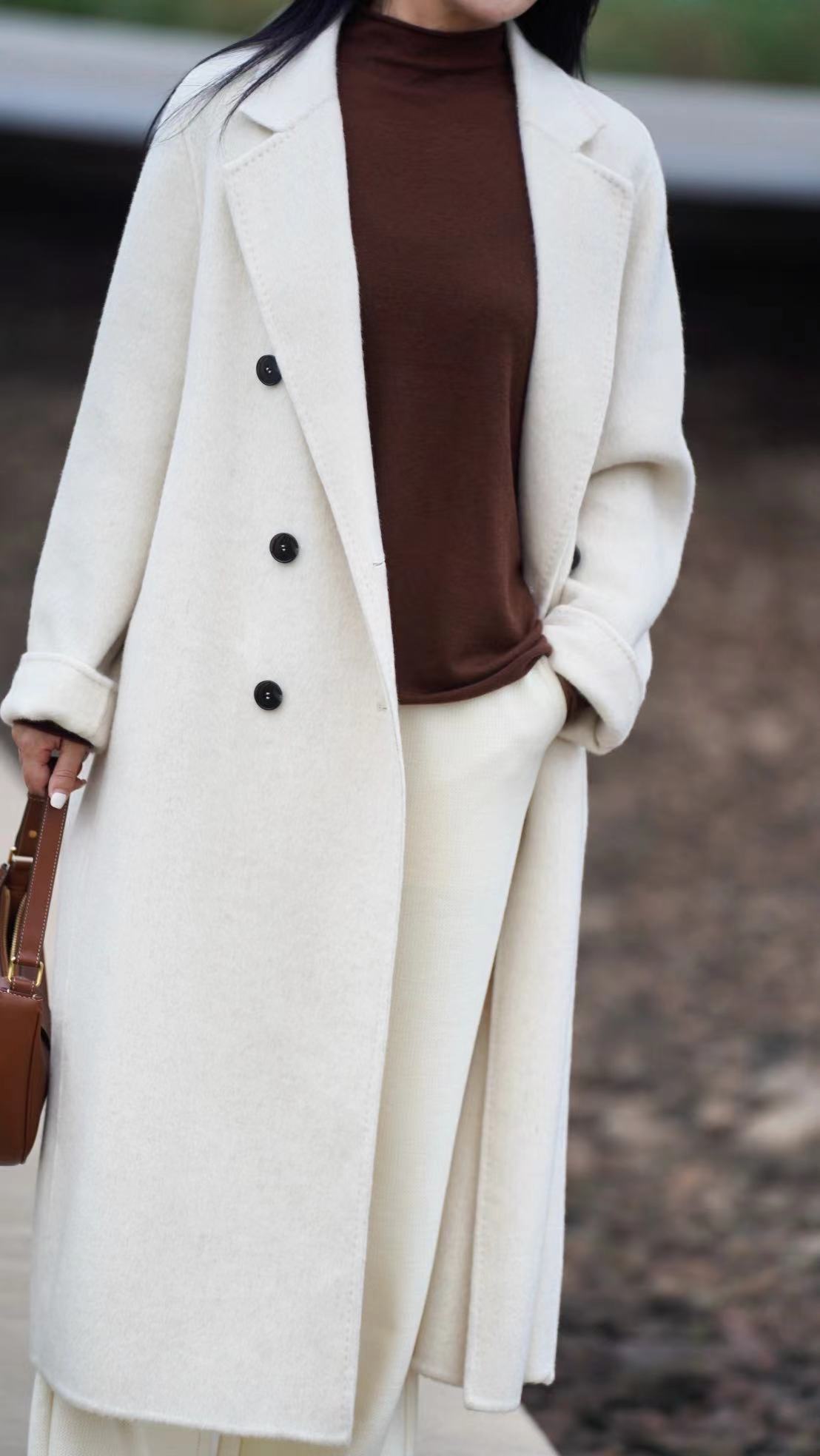 米白色 臣禾【十牦牛绒双面呢大衣】 10%牦牛绒90%绵羊毛 JZ244080180