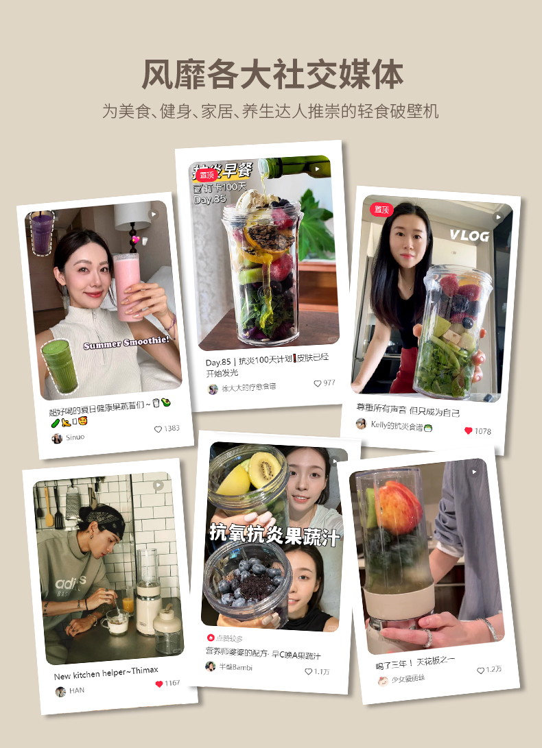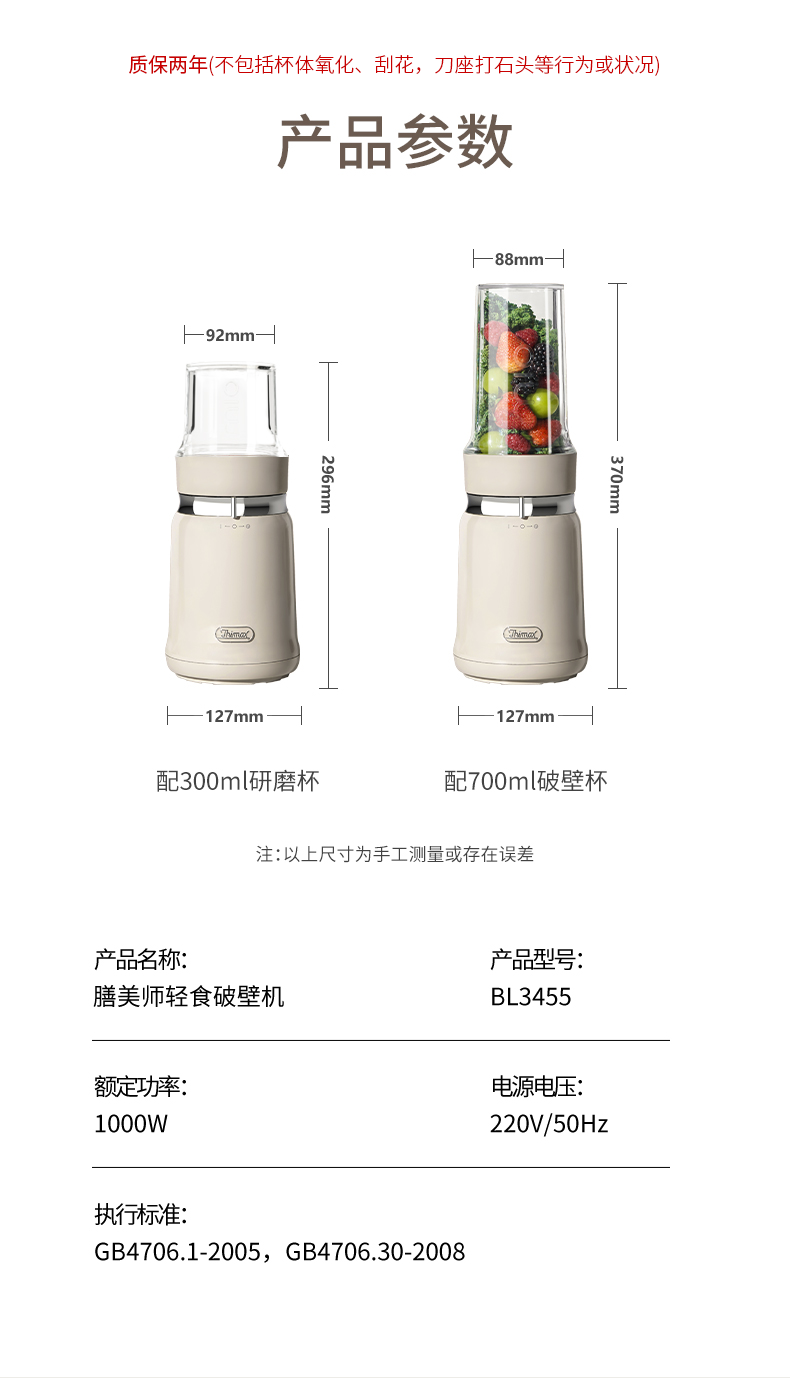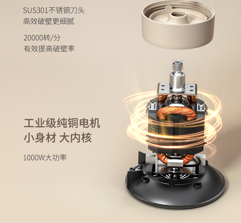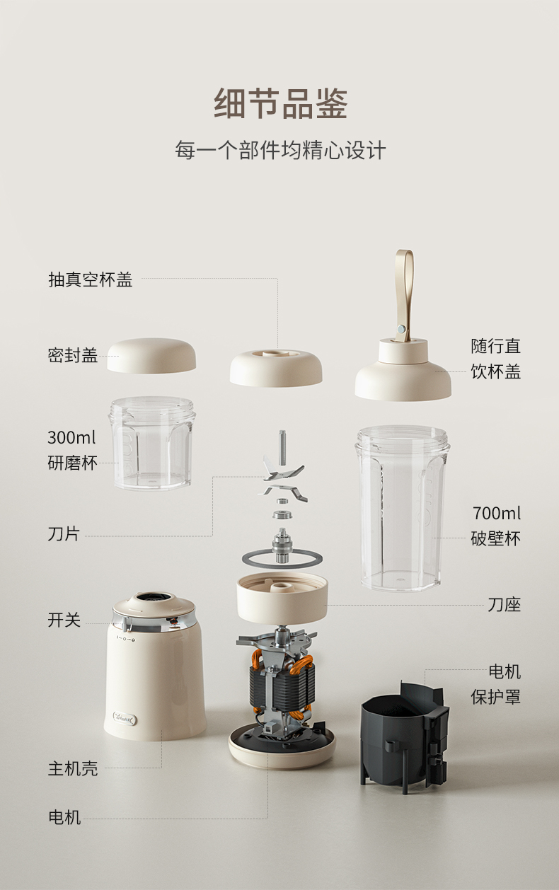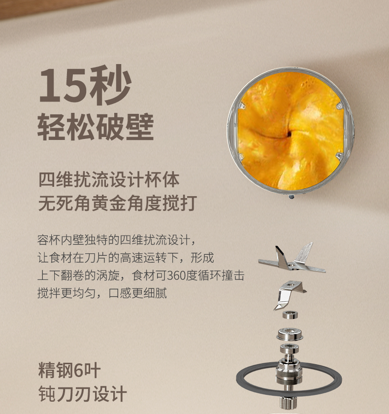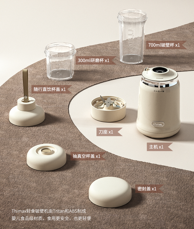 膳美师轻音破壁机 | 复古米 家用多功能蔬果榨汁机 全自动免滤低音 辅食机 磨粉